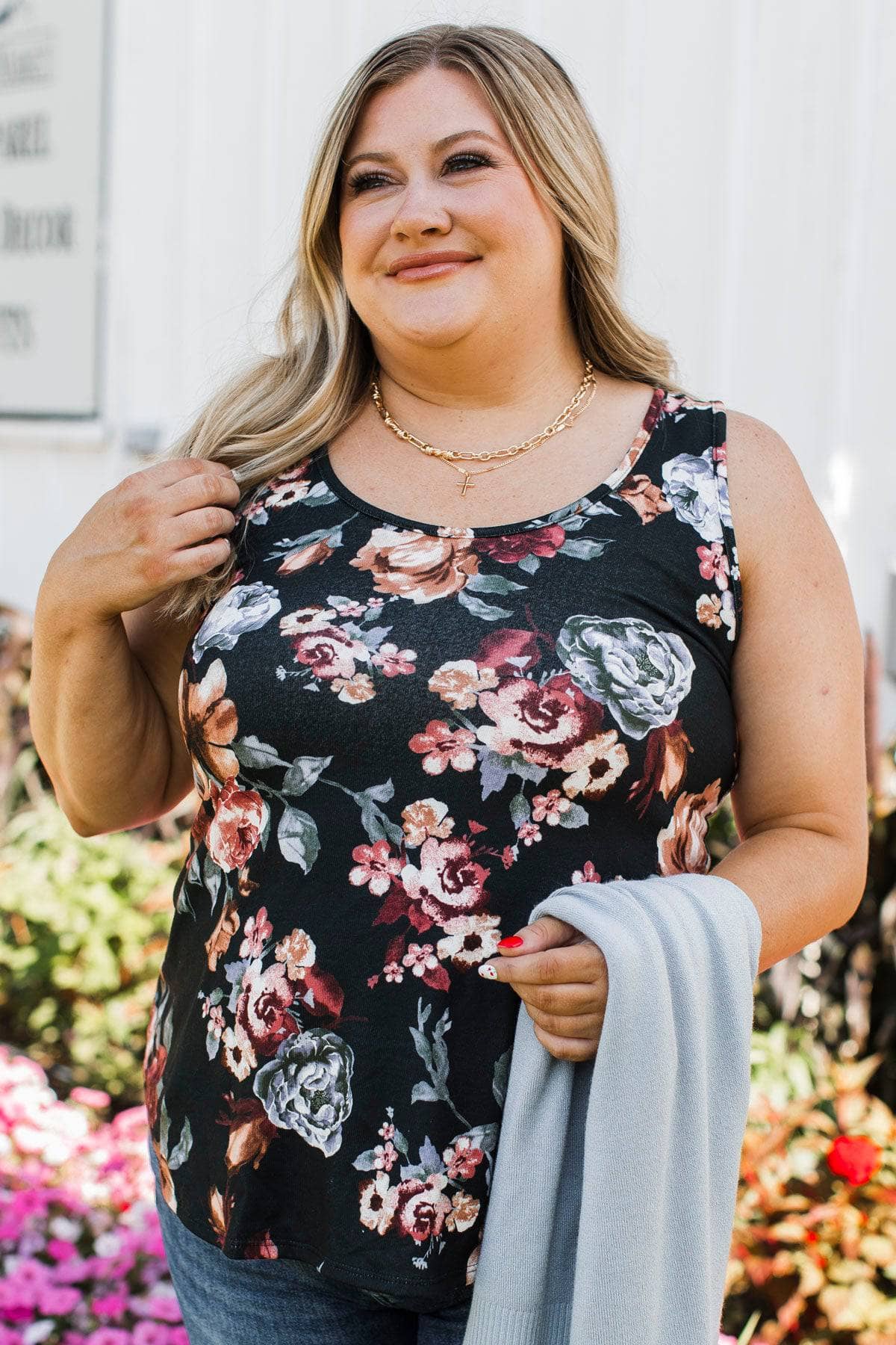 Good Stuff Floral Tank Top- Black