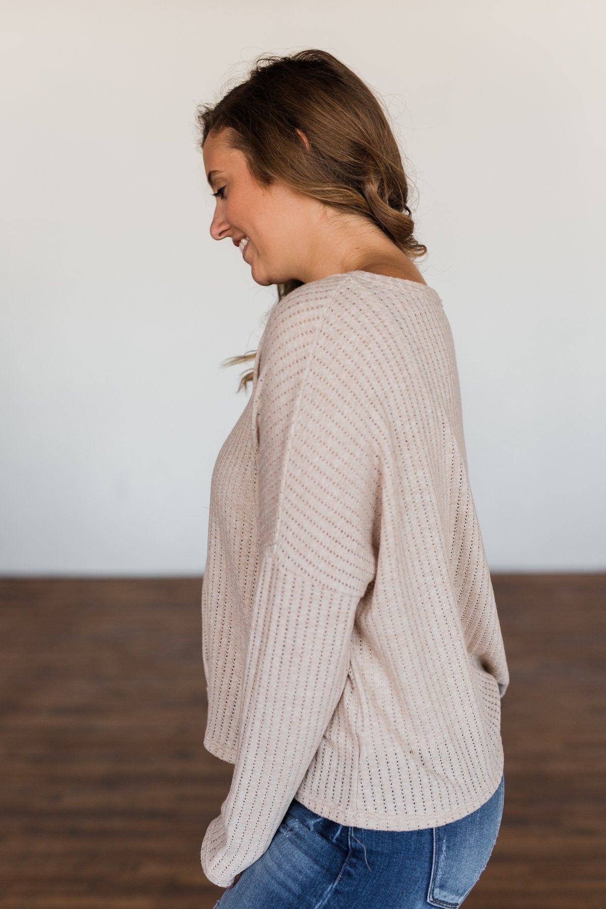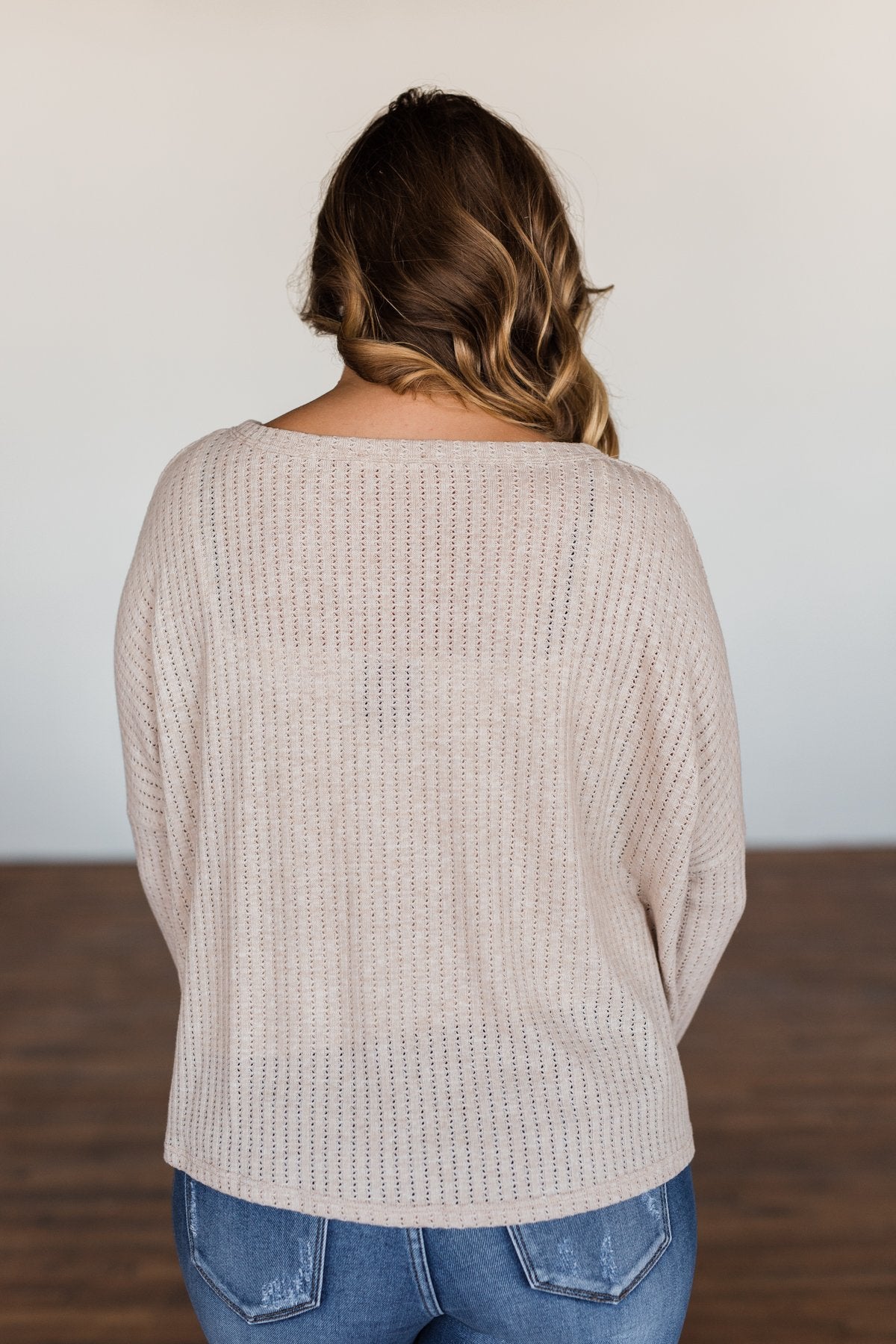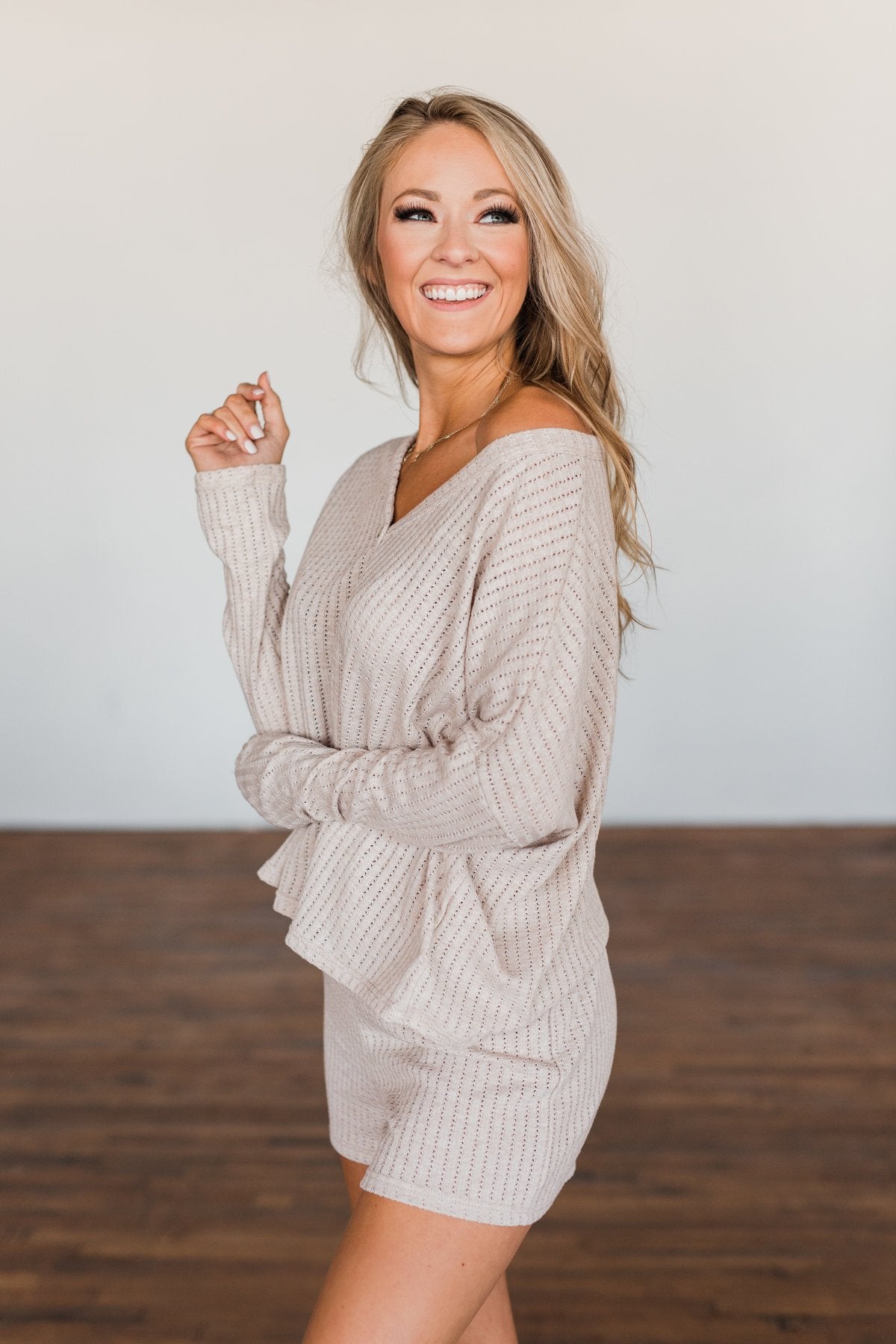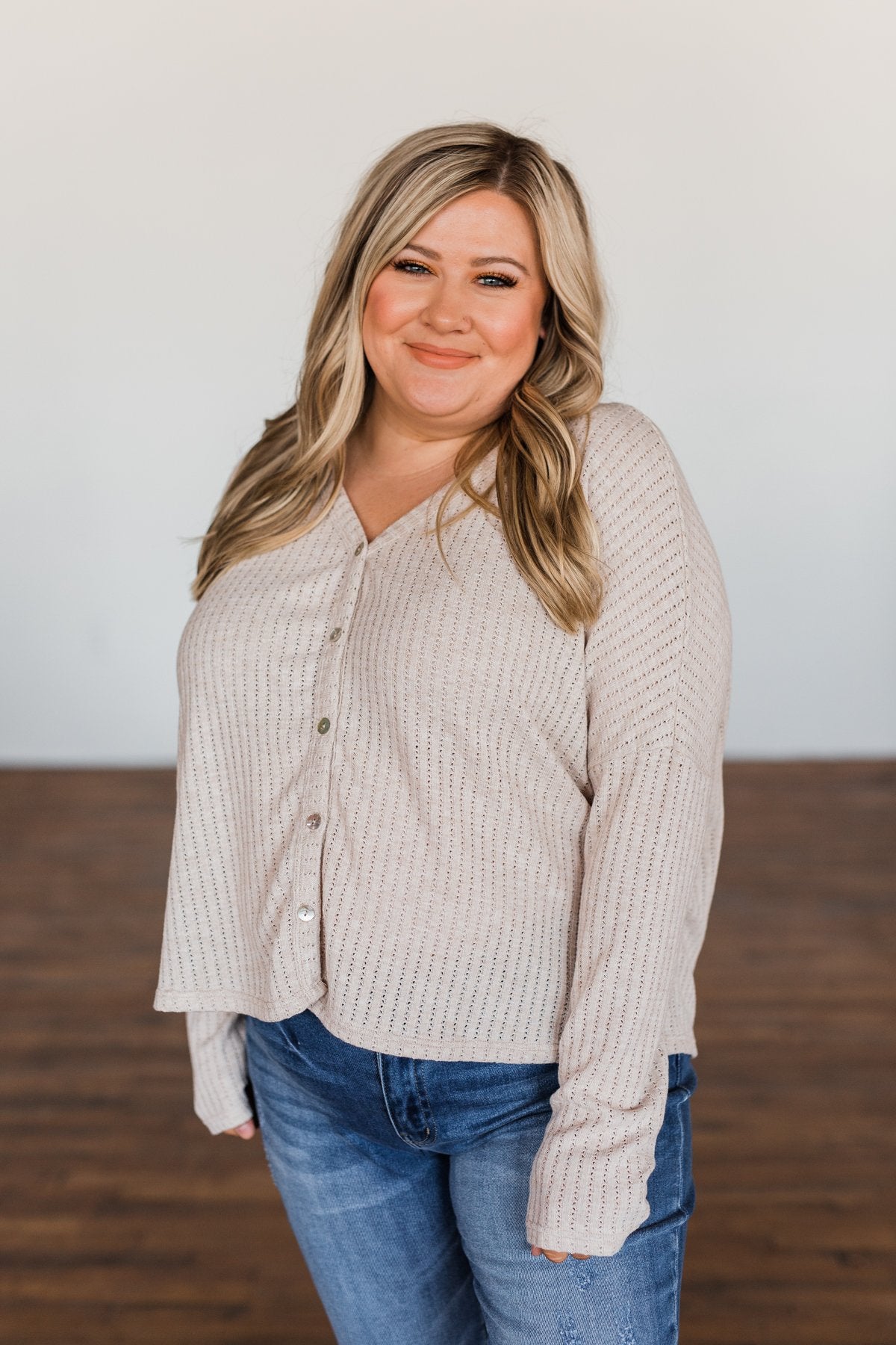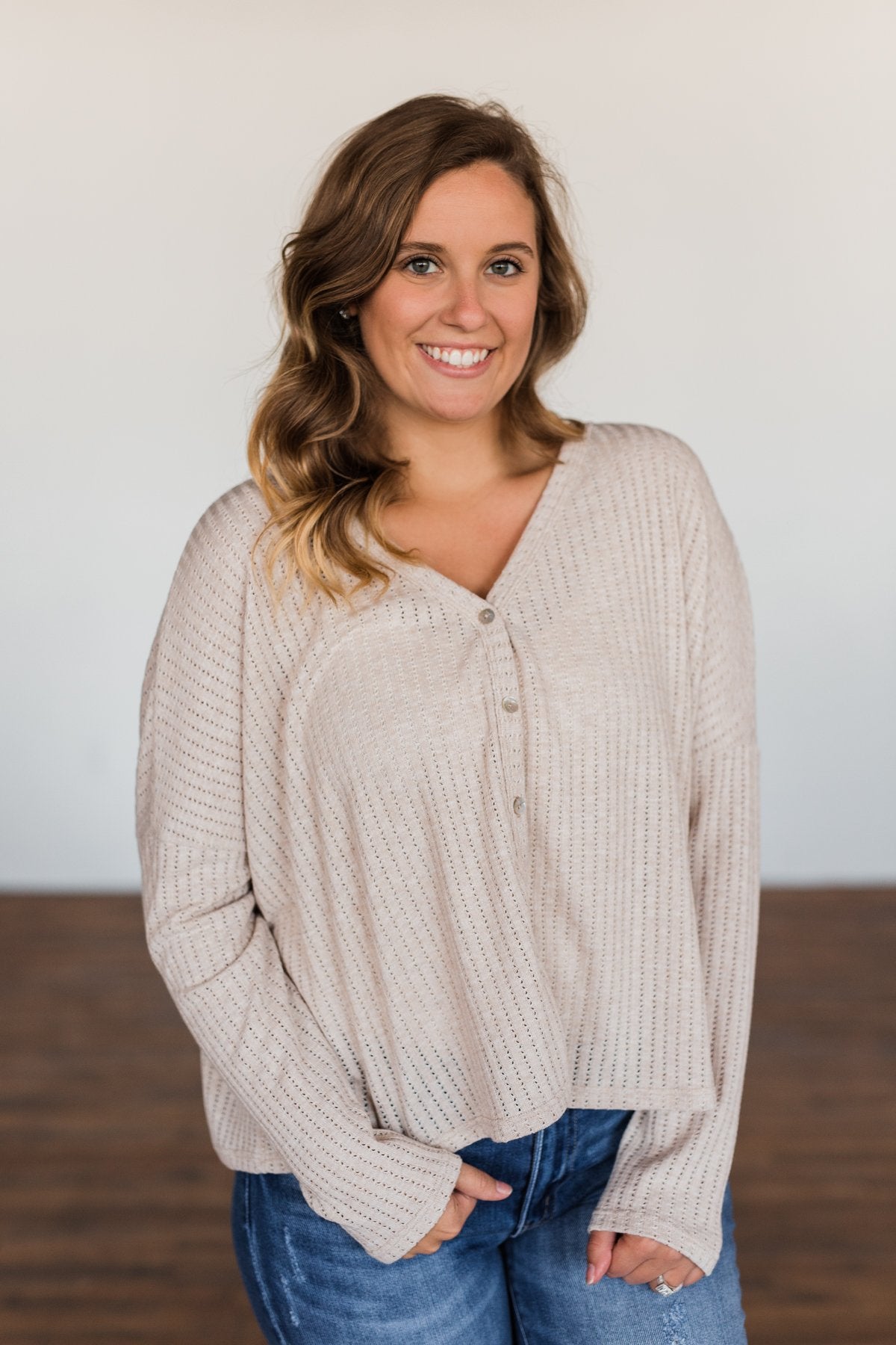 Spend your day in style without sacrificing comfort with dolman sleeve, knit button top! This versatile top can easily be paired with high waisted shorts and sandals for an adorable outfit on those warmer Autumn days or paired with the matching bottoms for the comfiest lounge outfit! The soft, lightweight knit material makes this top an easy choice for all day wear.