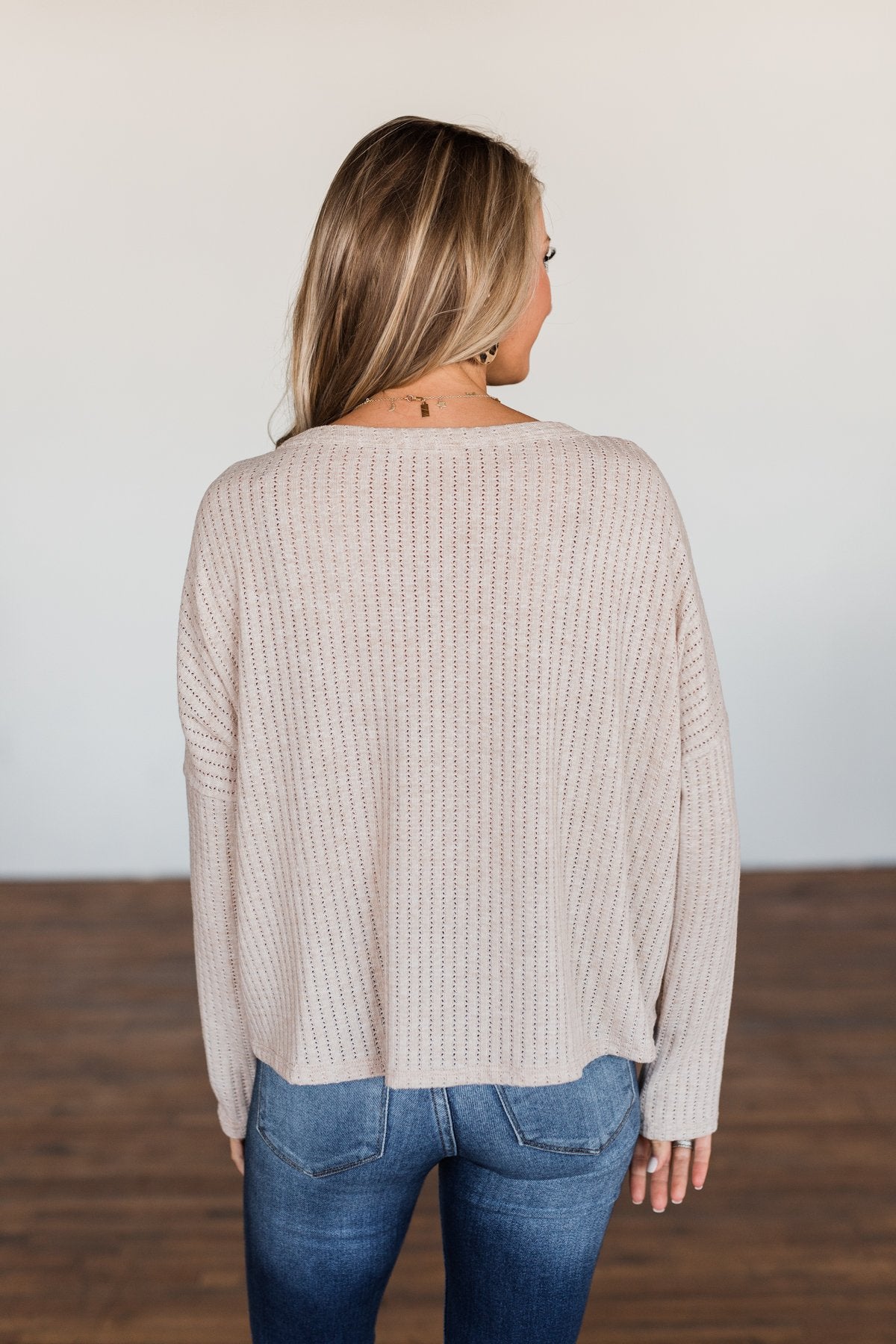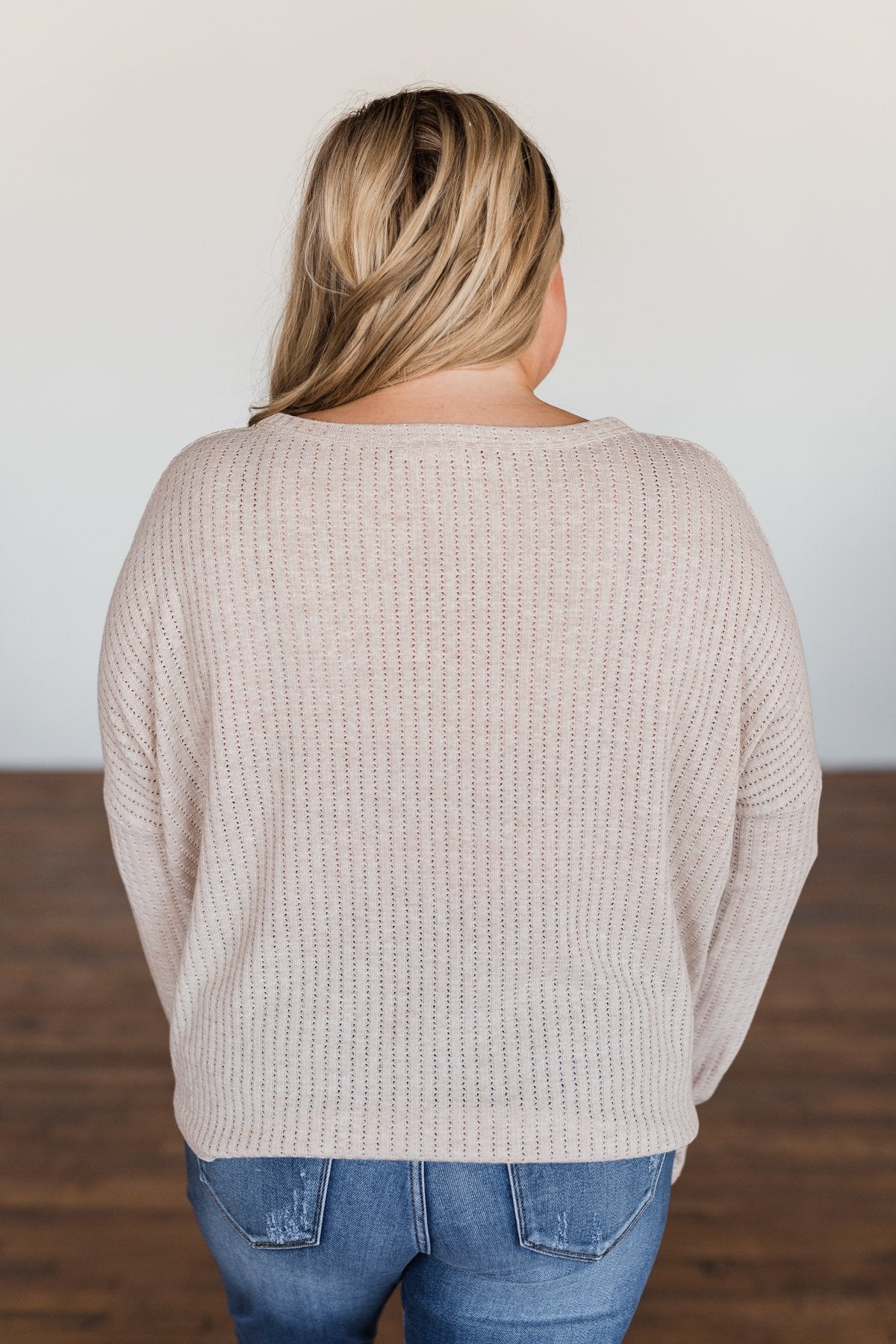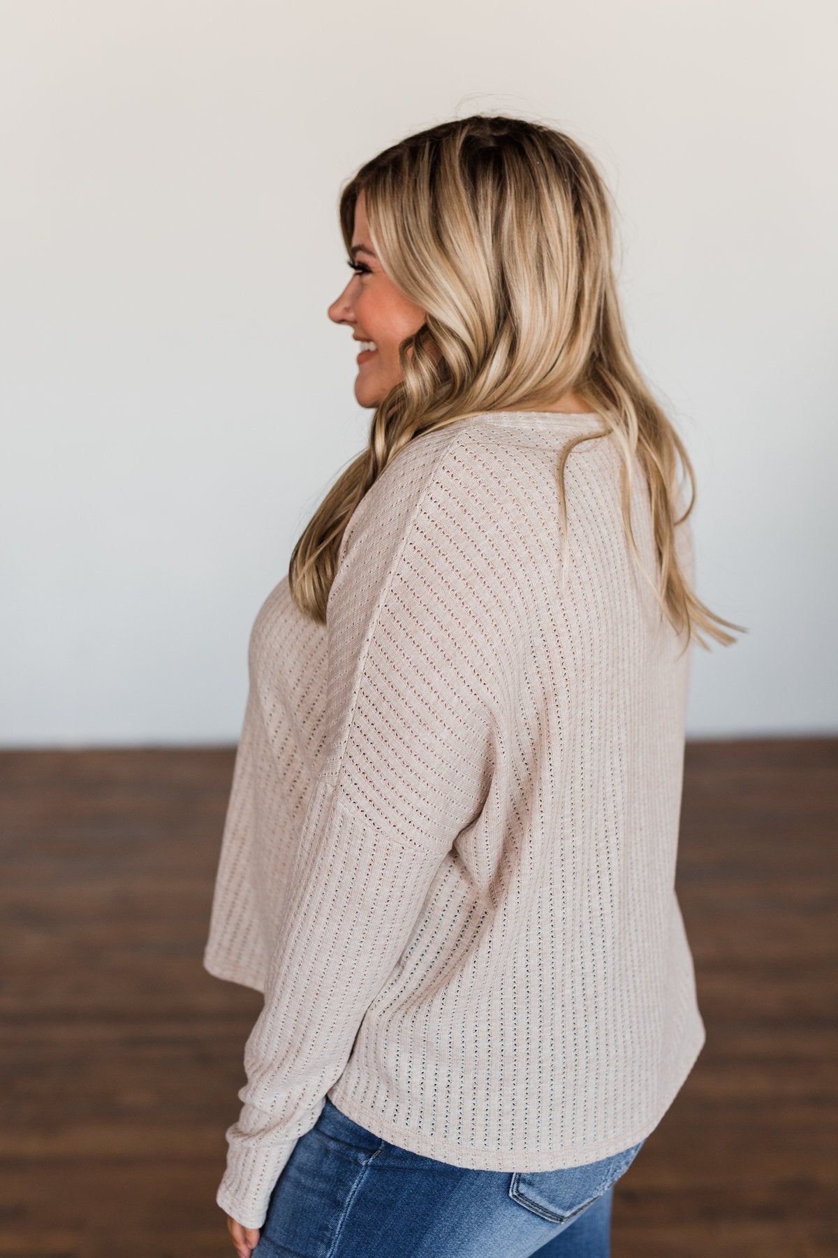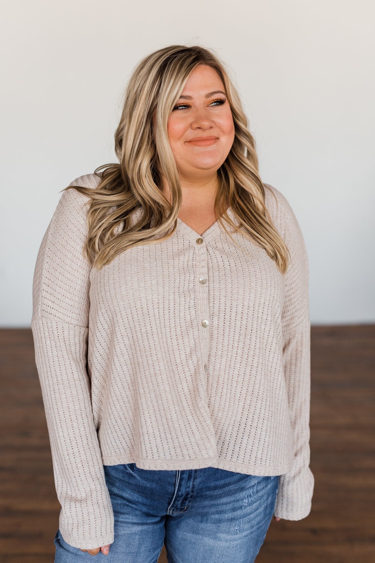 Spend your day in style without sacrificing comfort with dolman sleeve, knit button top! This versatile top can easily be paired with high waisted shorts and sandals for an adorable outfit on those warmer Autumn days or paired with the matching bottoms for the comfiest lounge outfit! The soft, lightweight knit material makes this top an easy choice for all day wear.