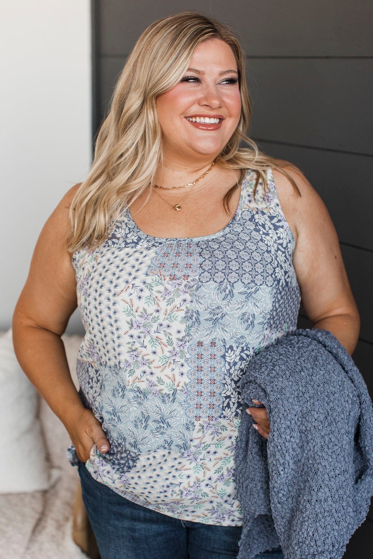 Predicting Greatness Patchwork Tank Top- Blue