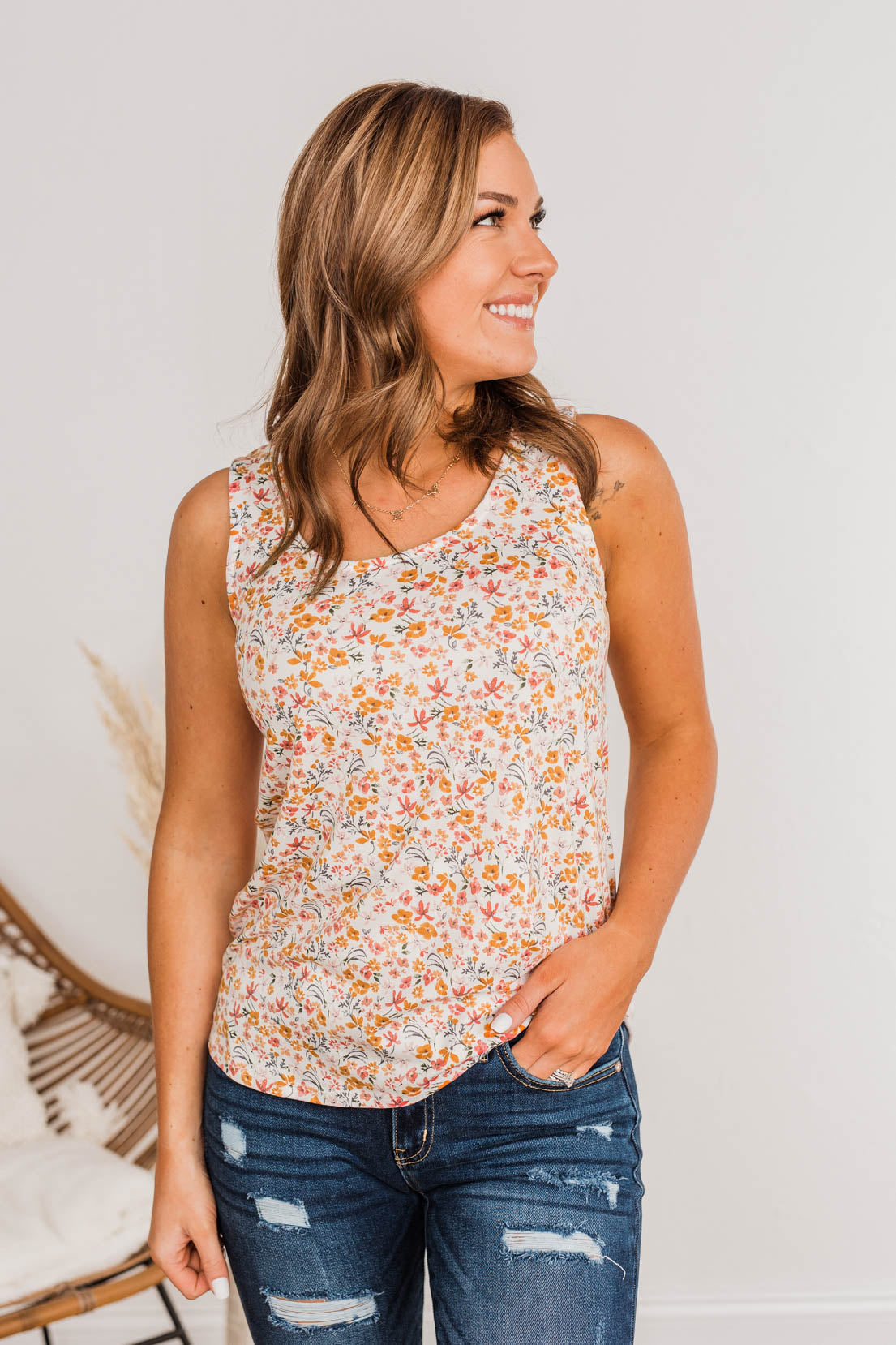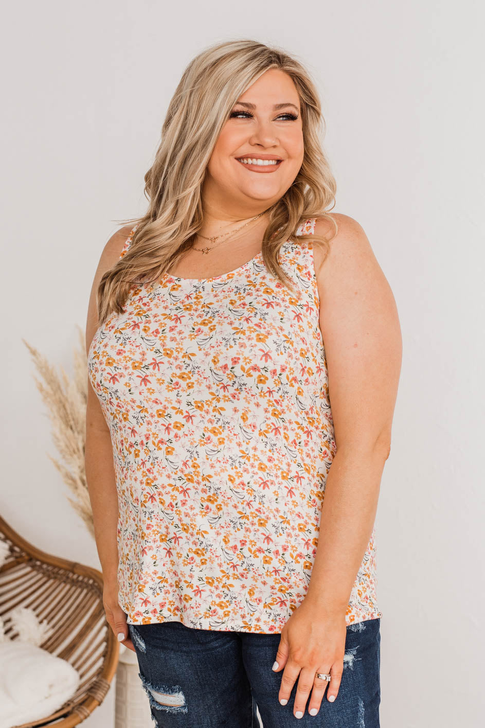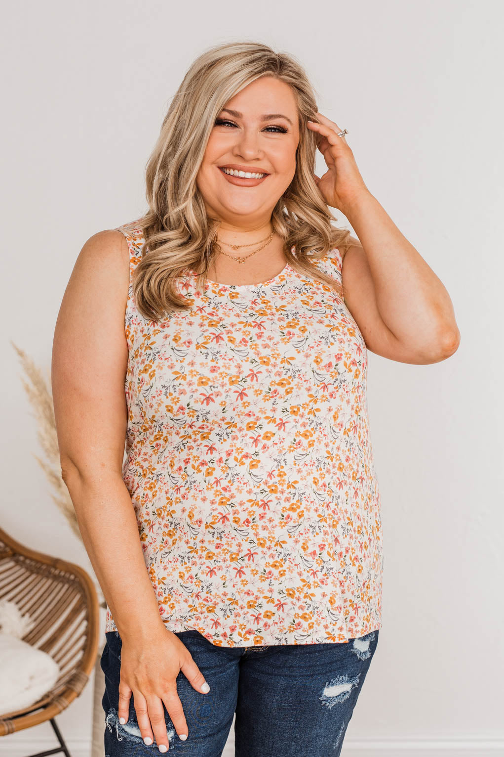 Be confident in your clothing choices with sweet and simple styles like this tank top! This lovely tank top has every essential detail you’re looking for like the buttery soft material, scoop neckline, and lively floral print with shades of orange and pink that are perfect for the upcoming season!