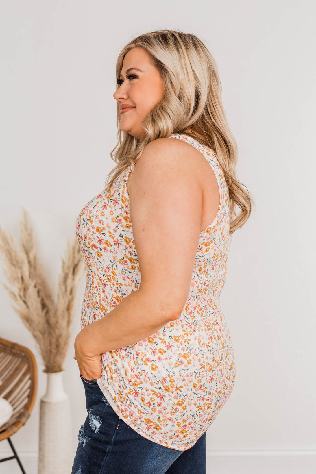 Dandelion Wishes Floral Tank- Ivory