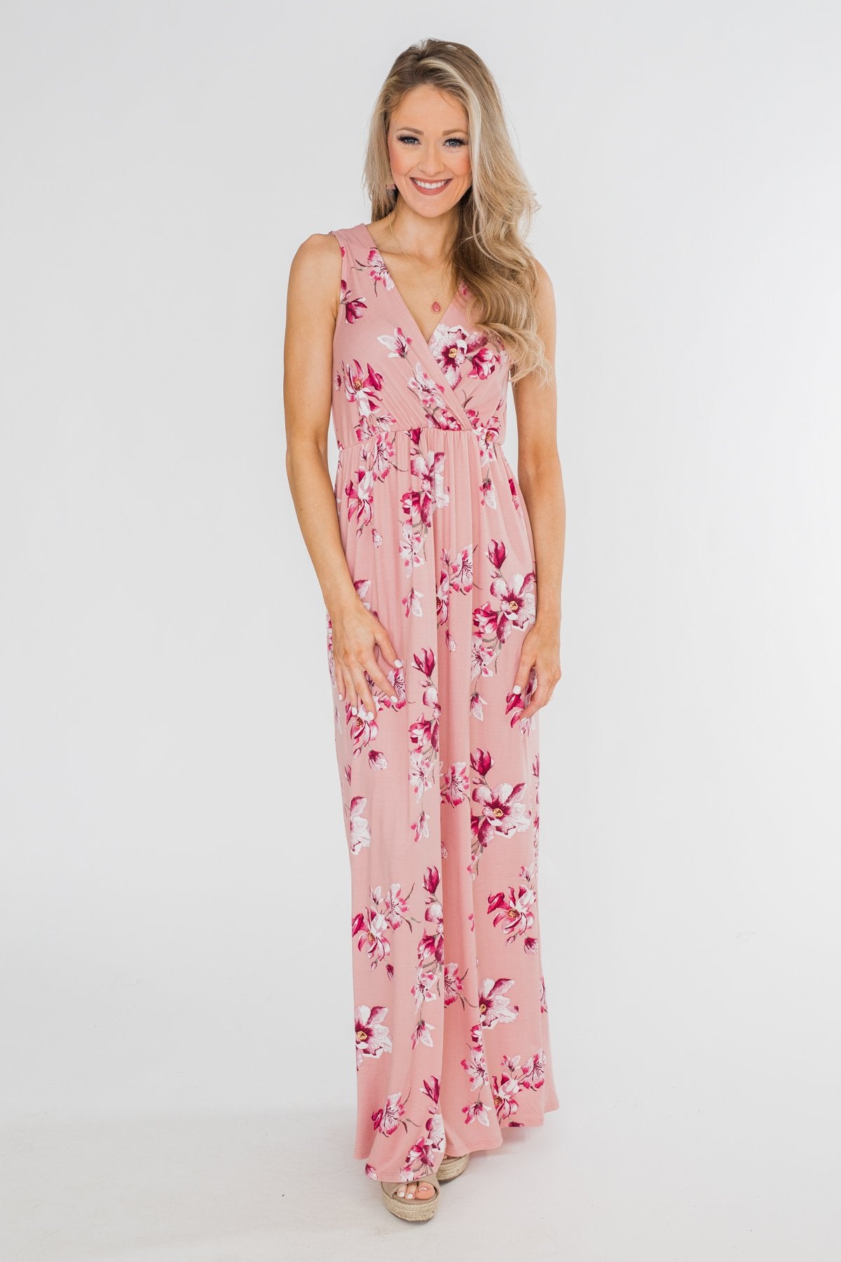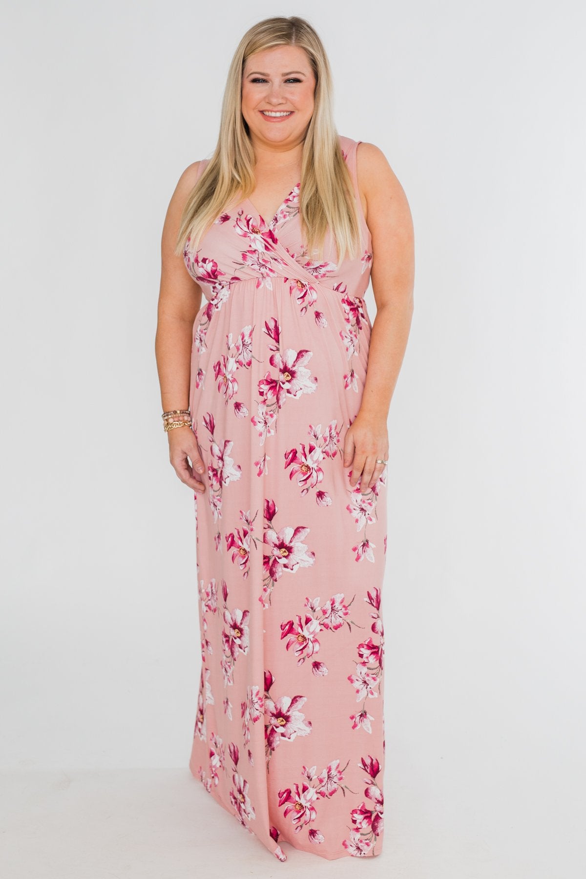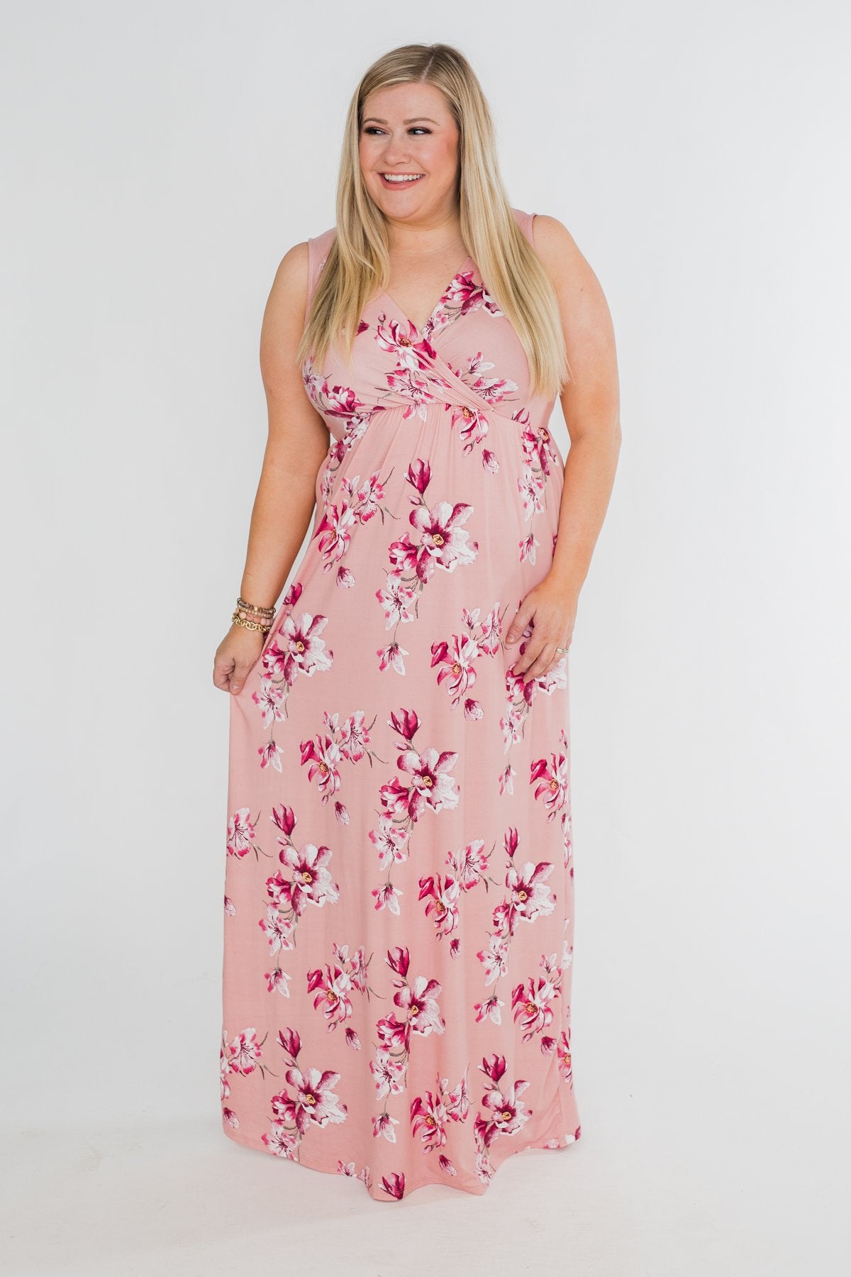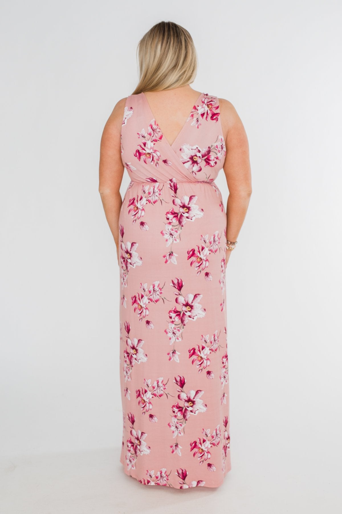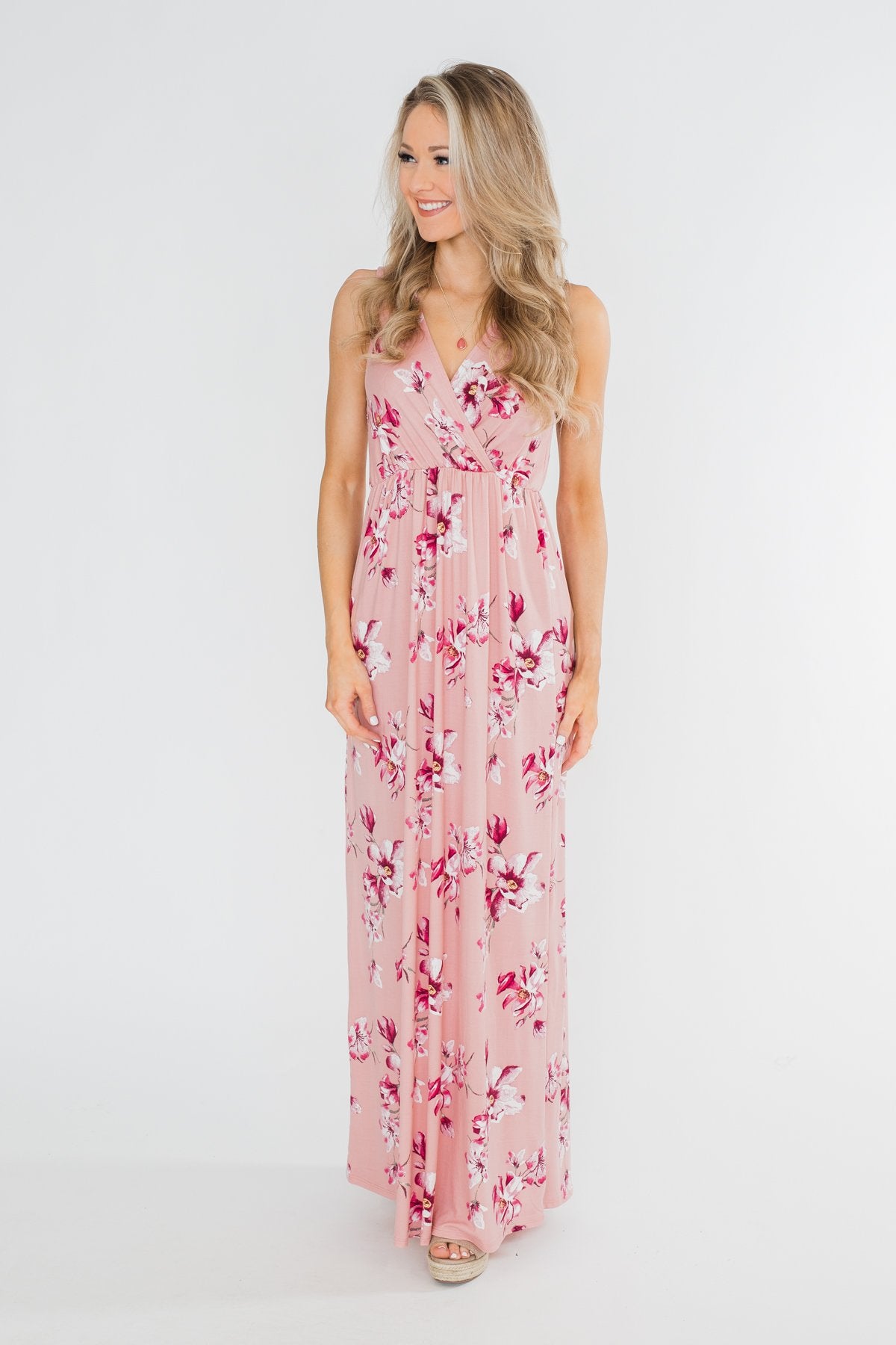 Daydreaming in Floral V-Neck Maxi Dress- Soft Pink