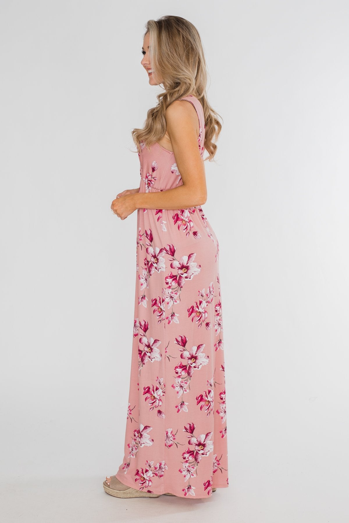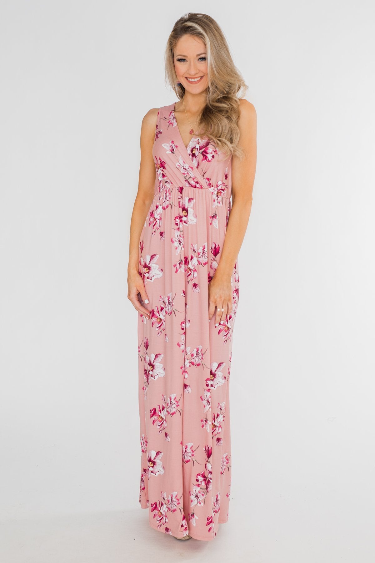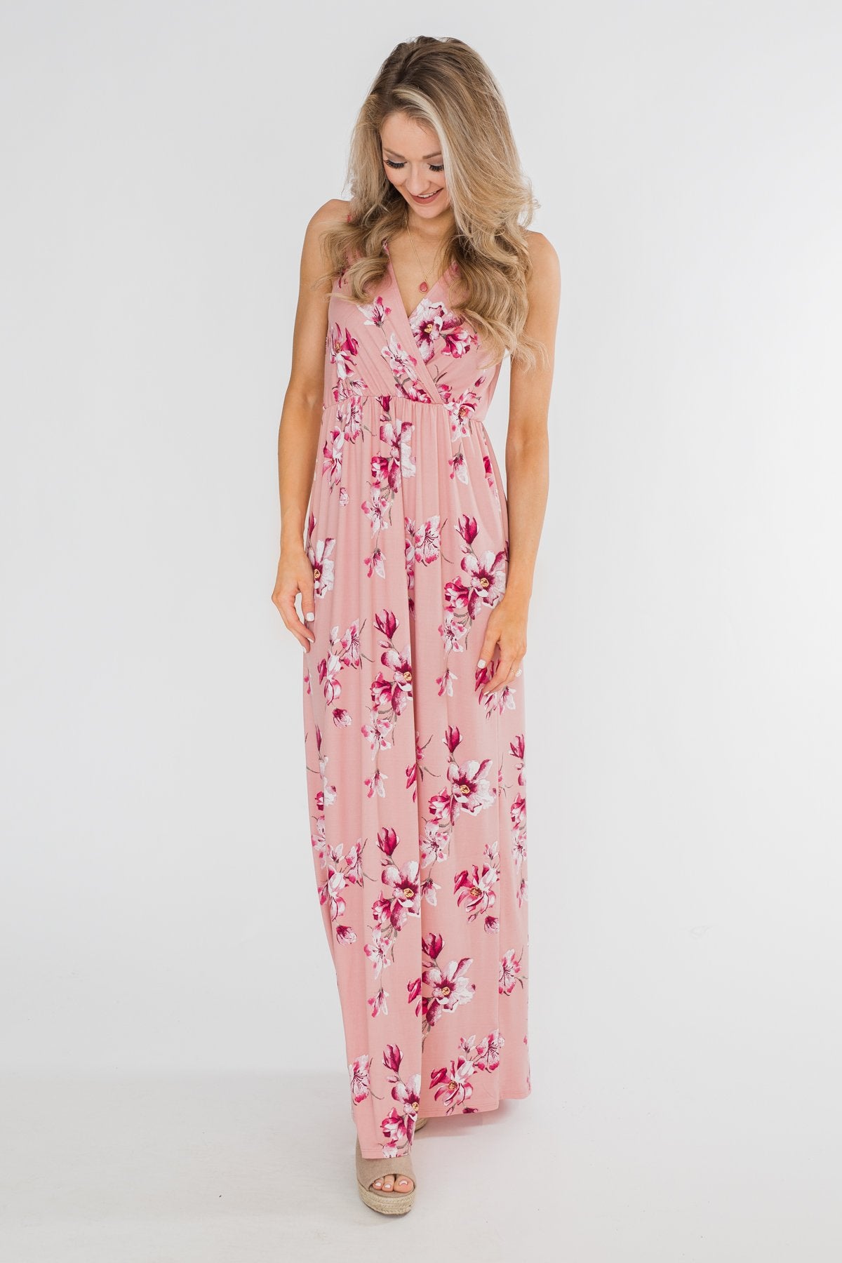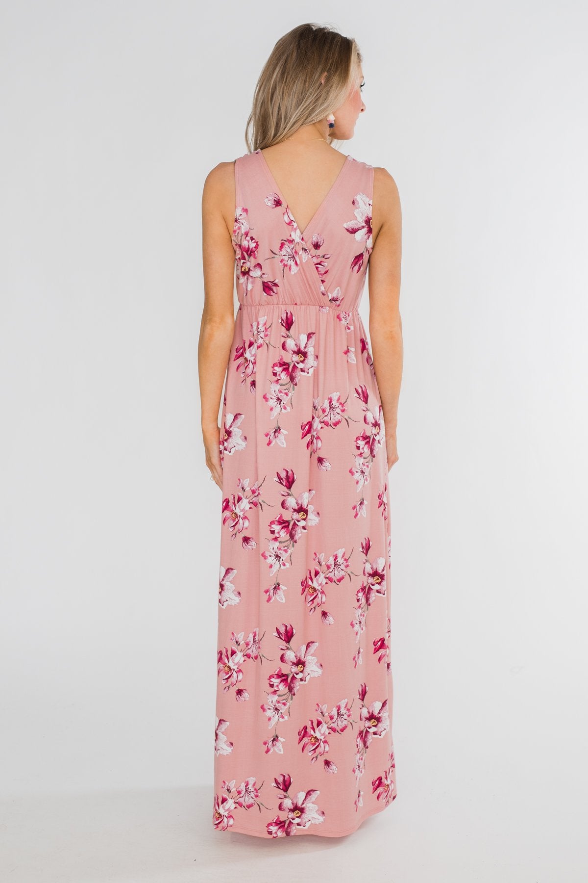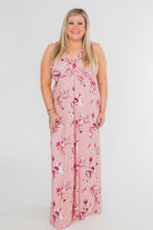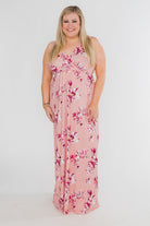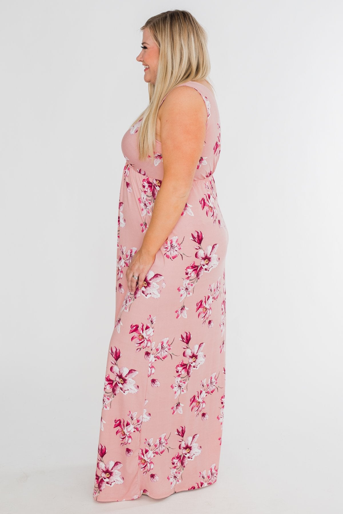 Daydreaming in Floral V-Neck Maxi Dress- Soft Pink