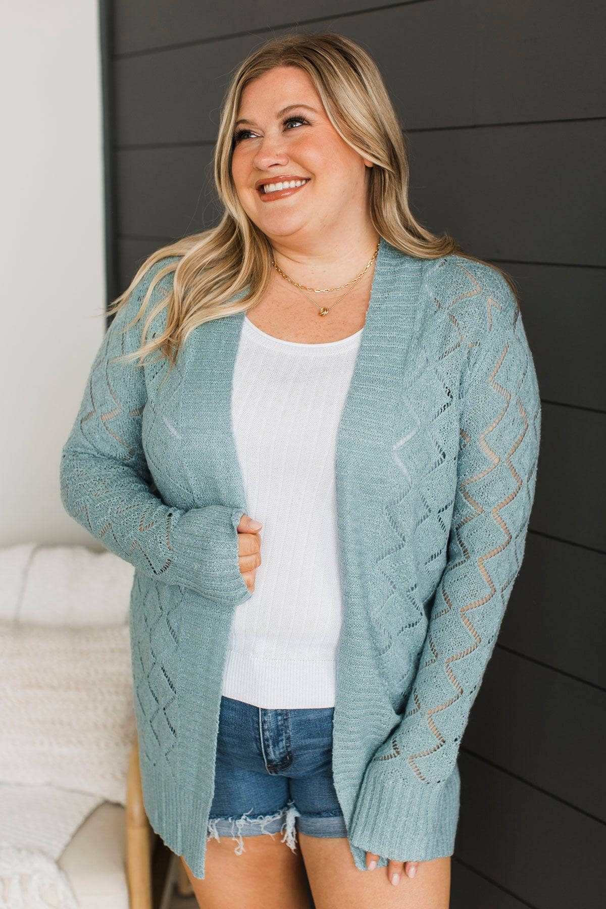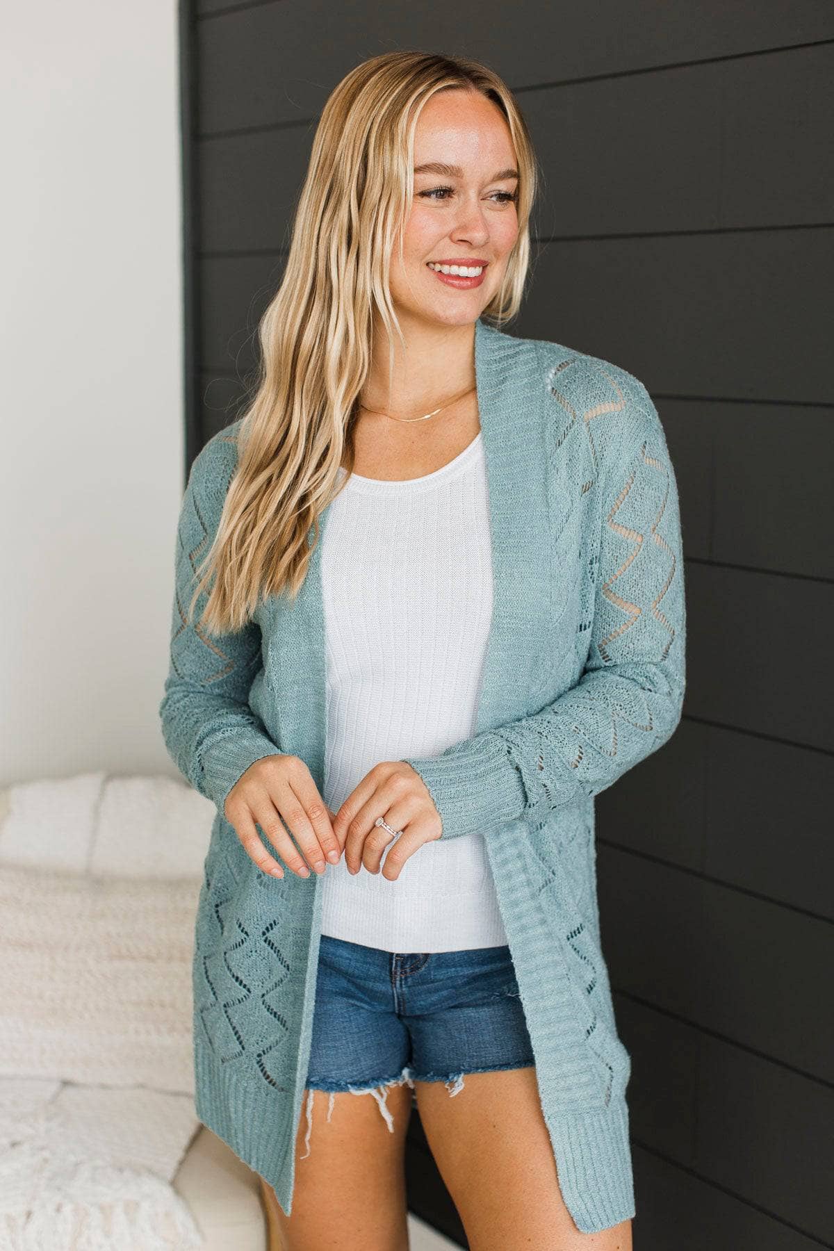 Effortless Perfection Pointelle Cardigan- Dusty Mint
