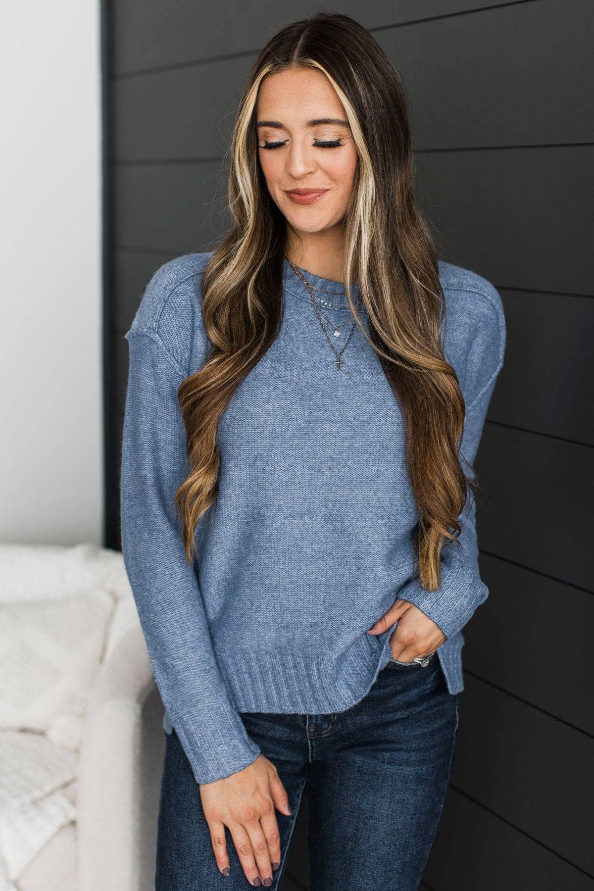 Beautiful Essence Knit Sweater- Denim Blue