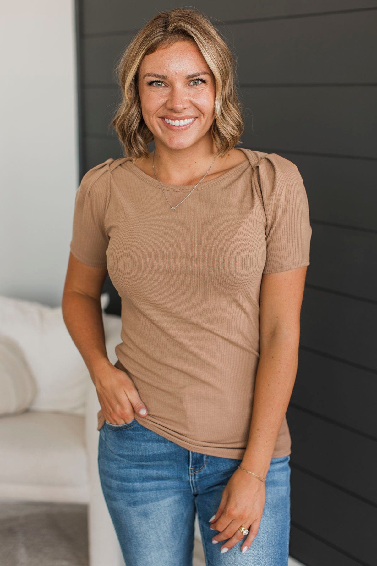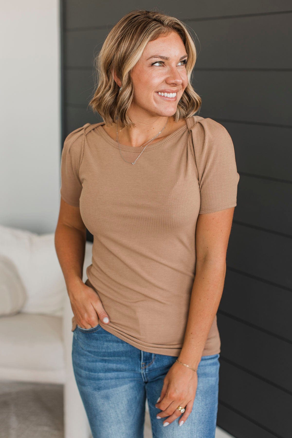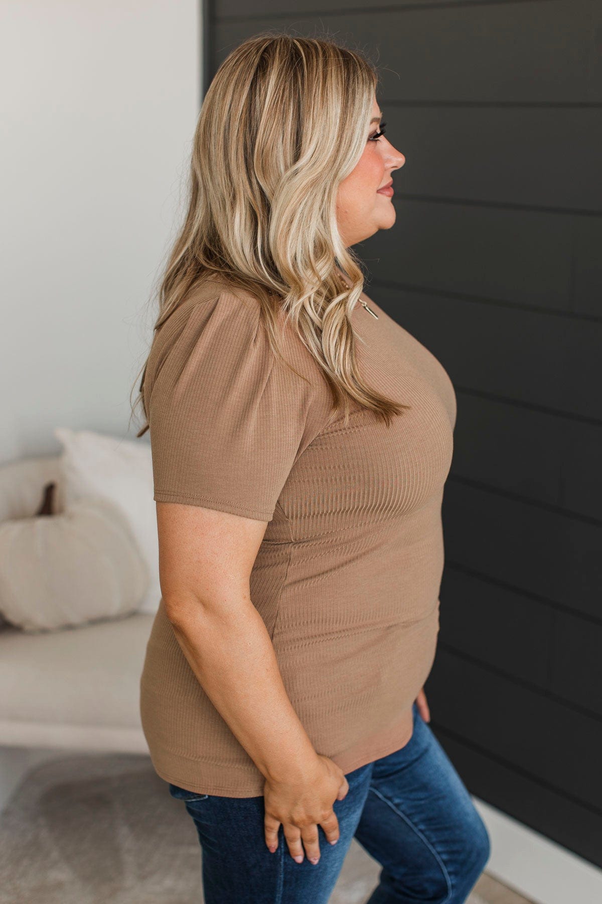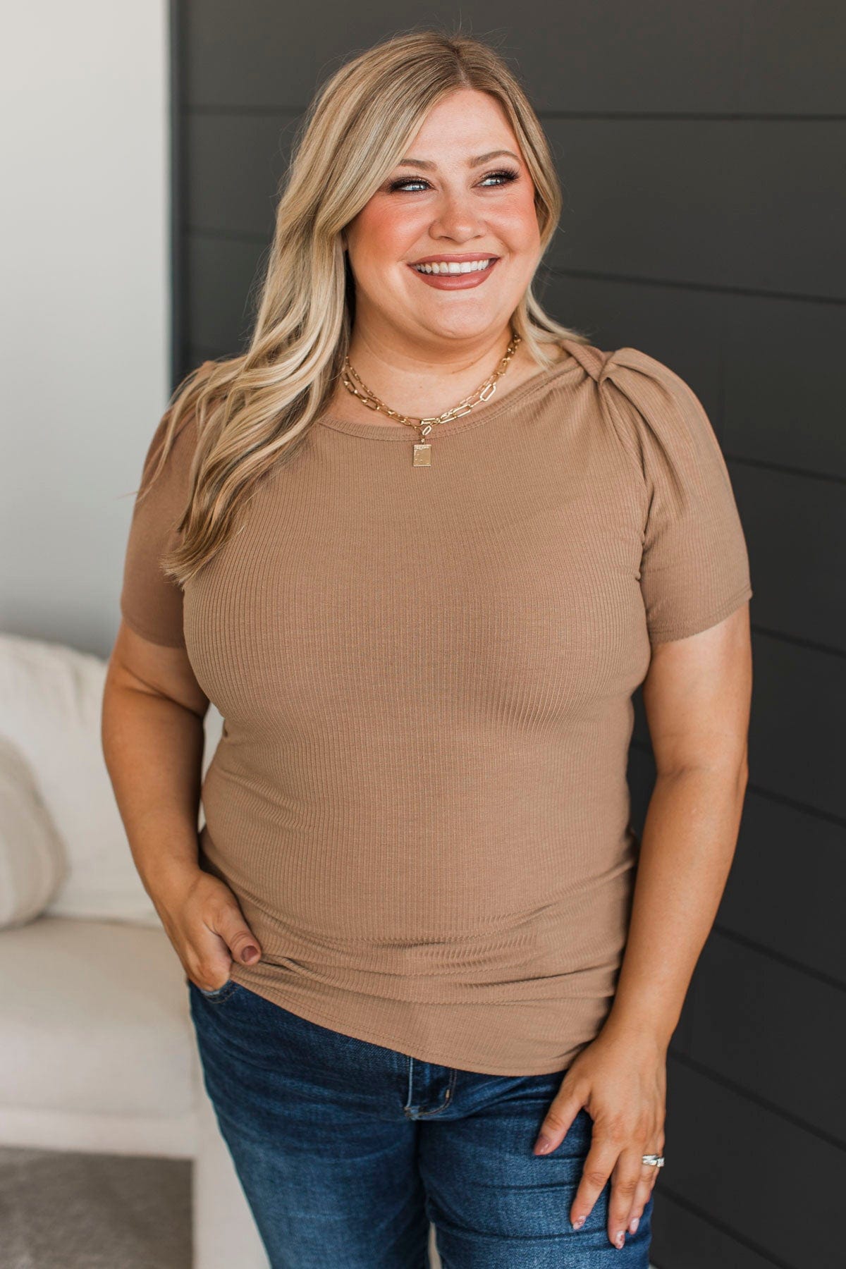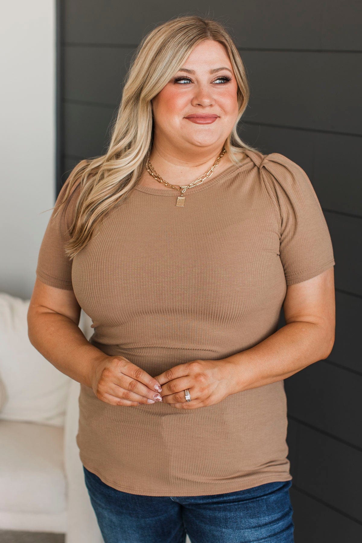 Doing The Most Ribbed Short Sleeve Top- Acorn
