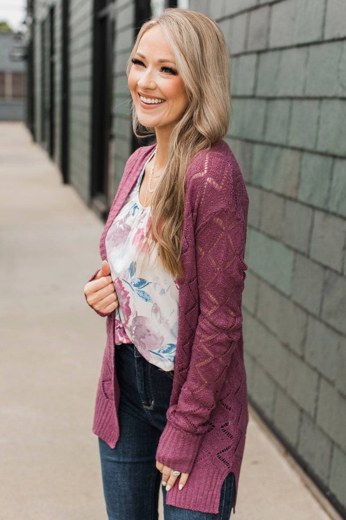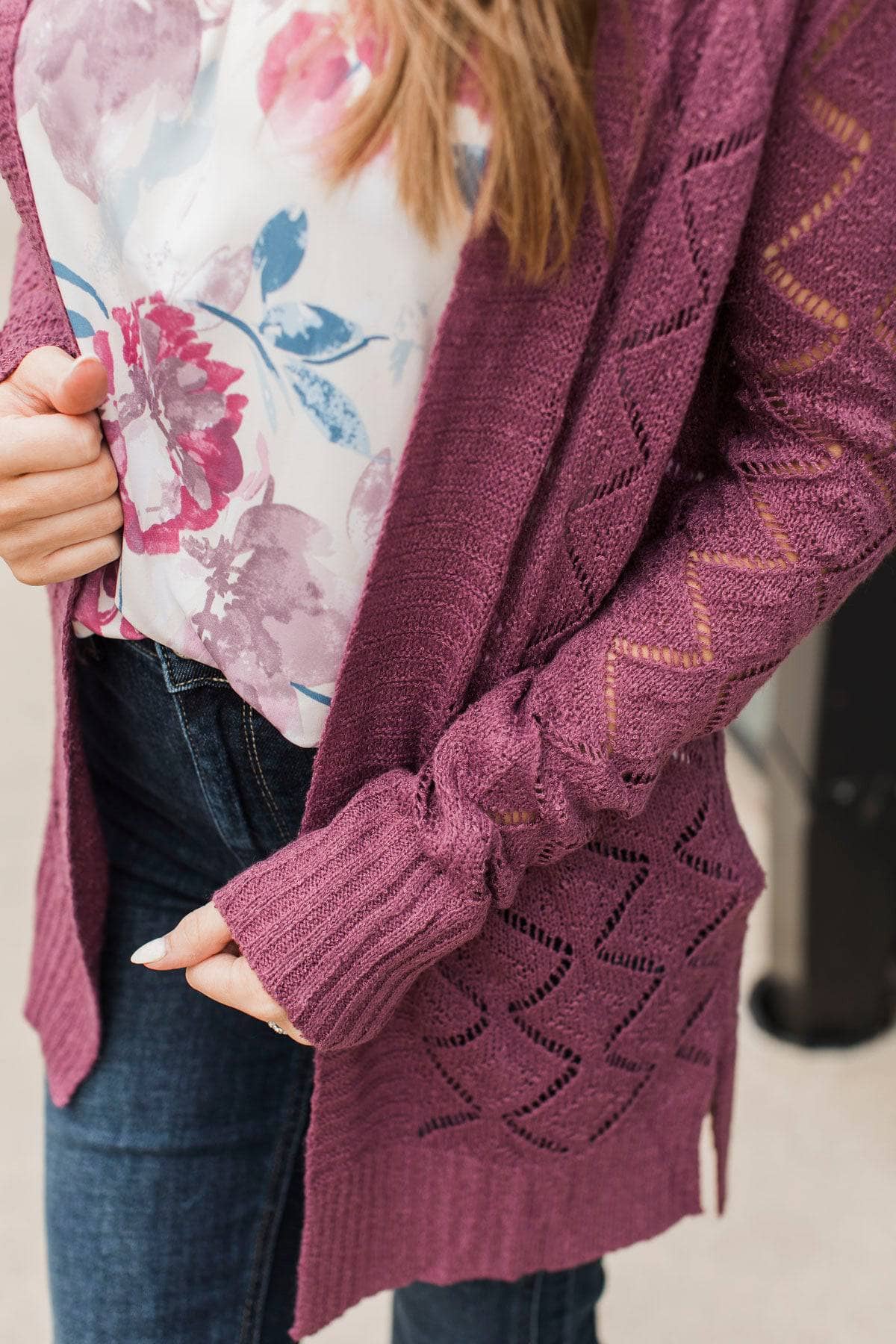 Effortless Perfection Pointelle Cardigan- Dark Mauve