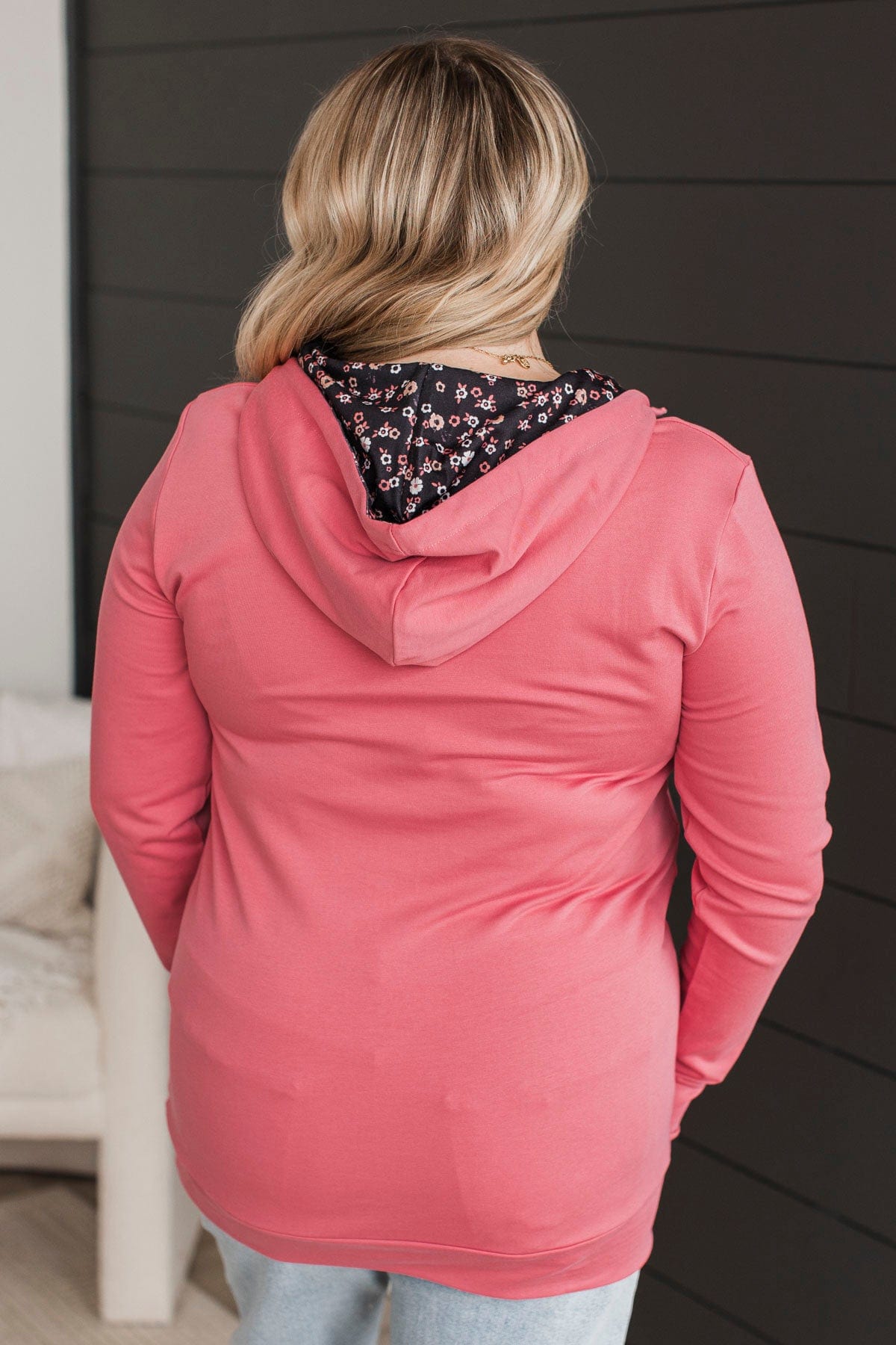 Easy To Love Quarter Zip Hoodie- Pink Floral