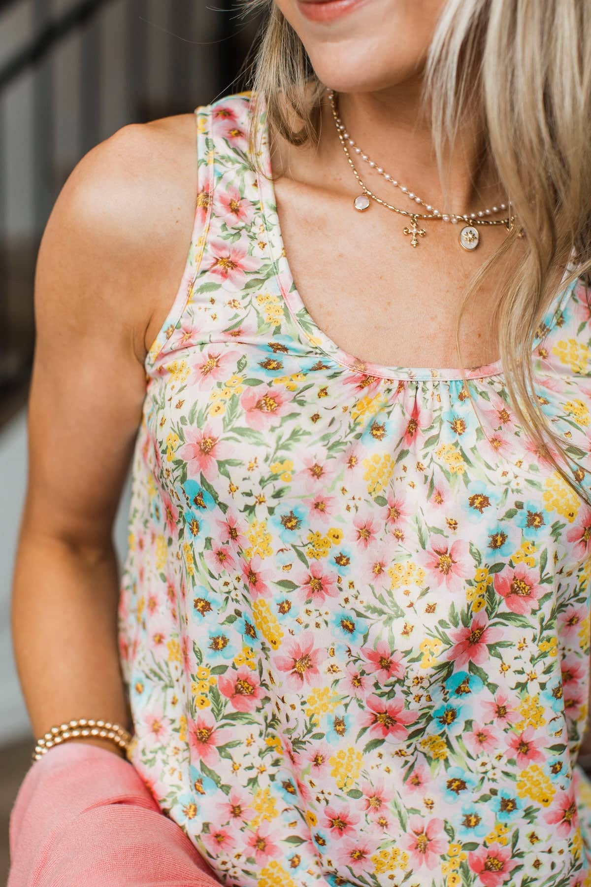 Garden Strolls Floral Tank Top- Light Pink & Mint