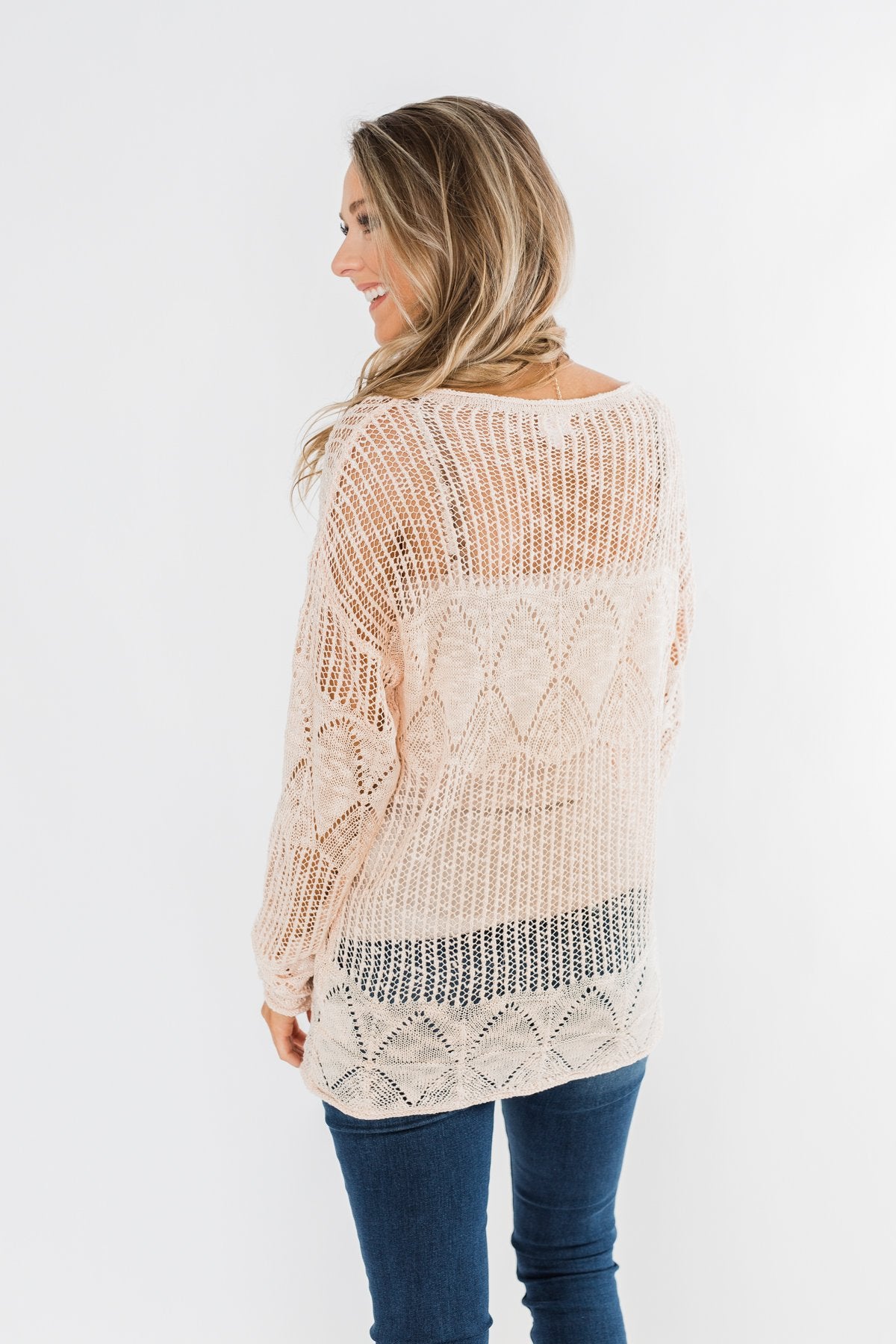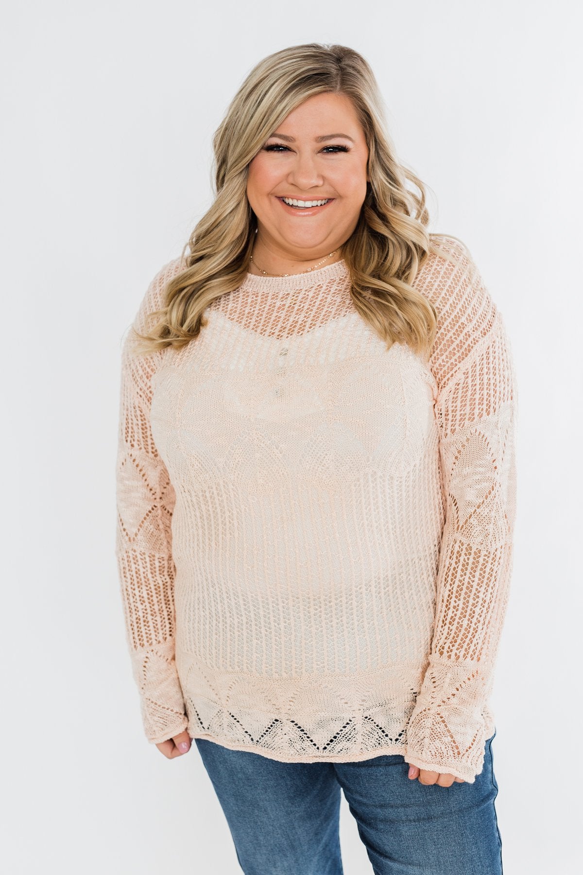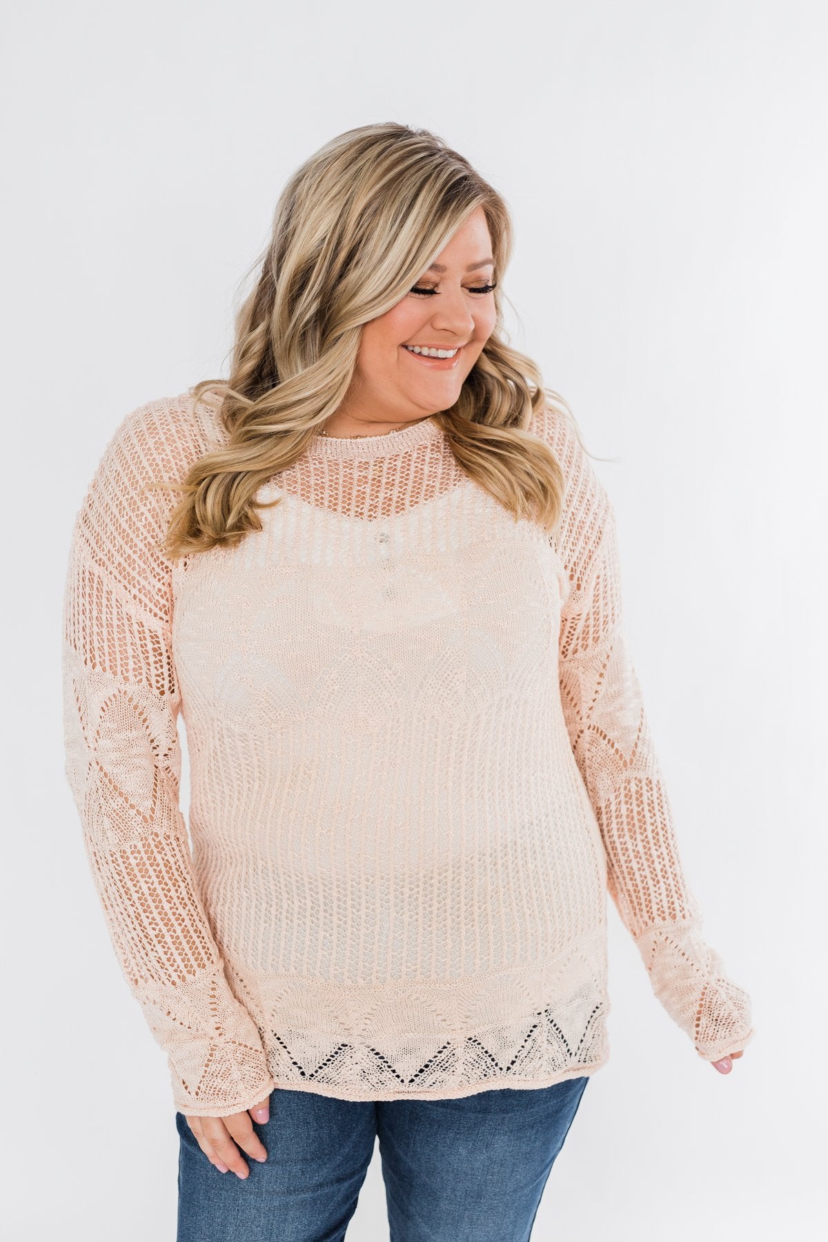 Effortless Smiles Open Knit Sweater- Light Peach