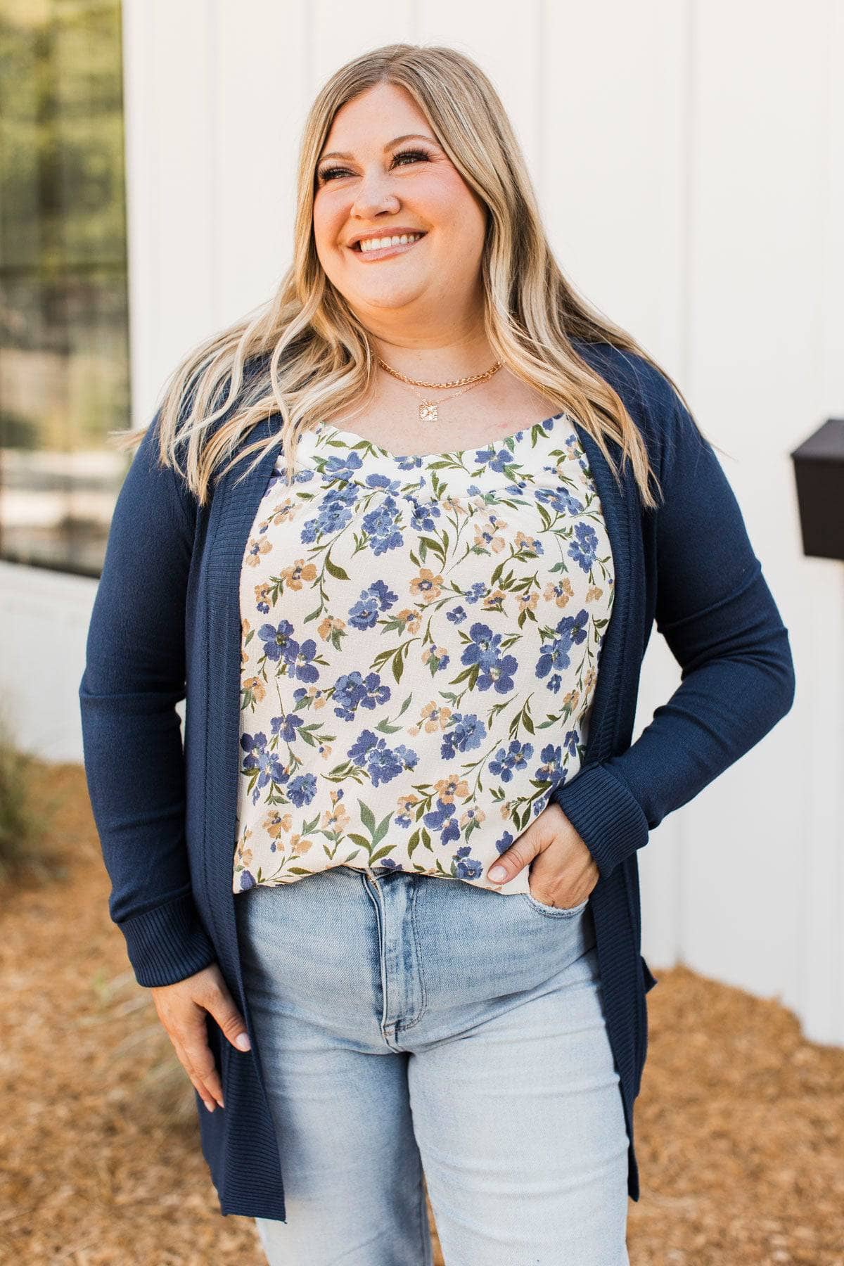 Everything It Takes Floral Tank Top- Ivory & Navy