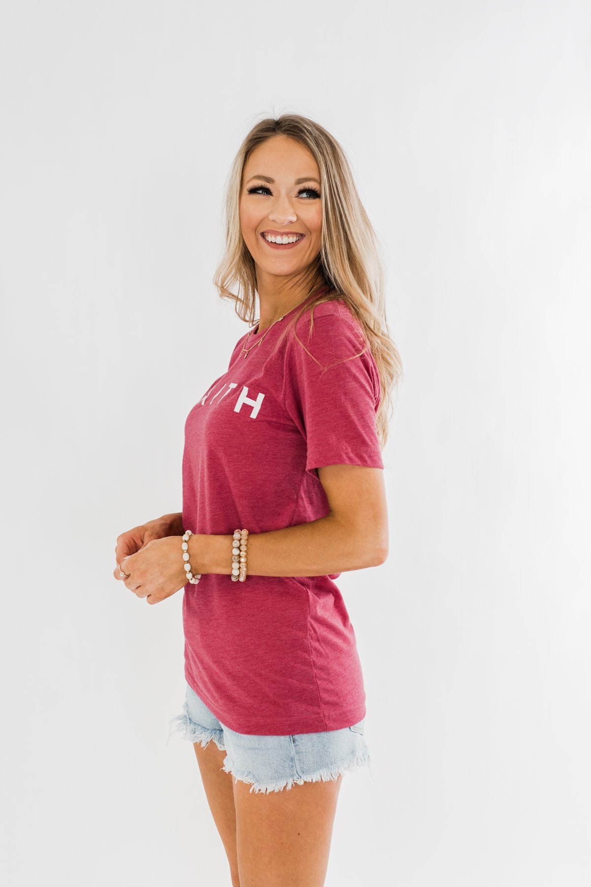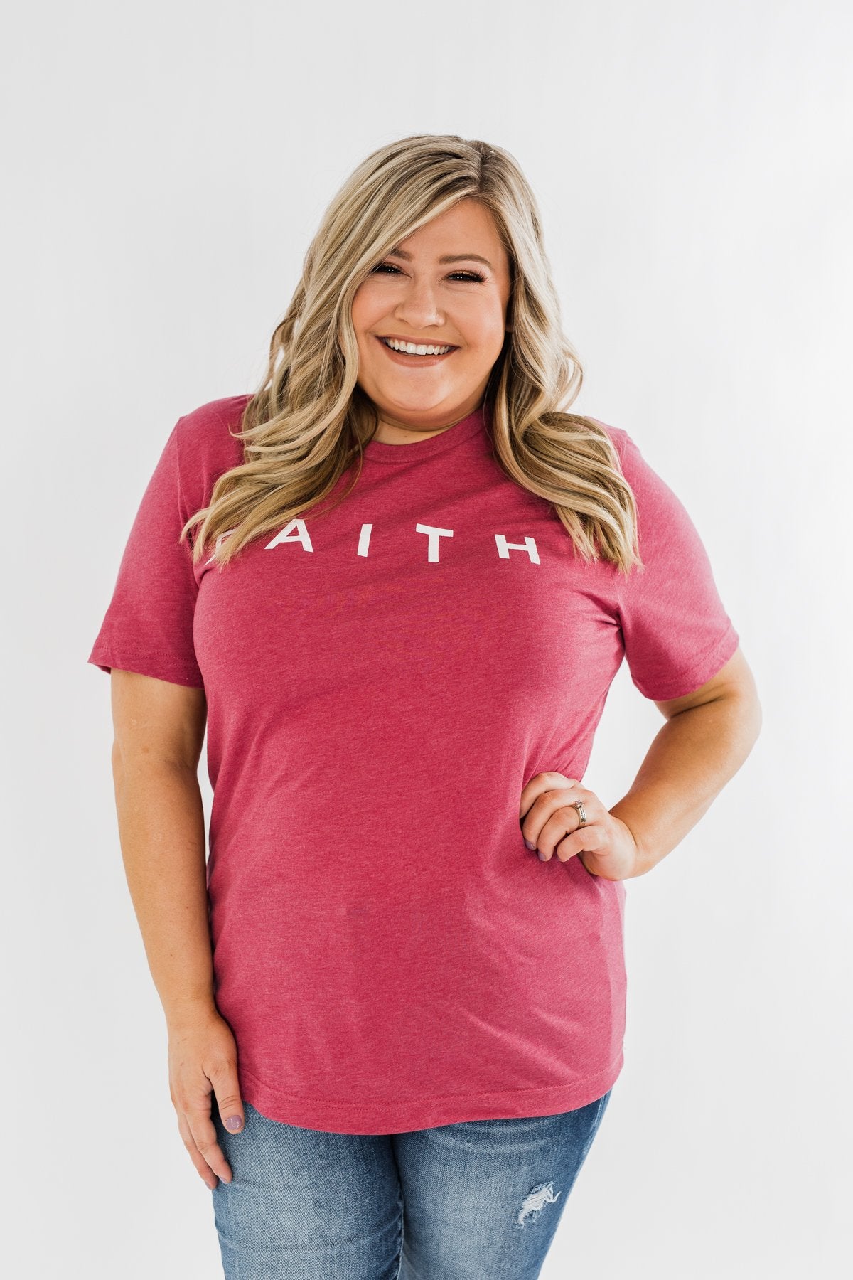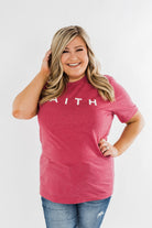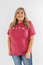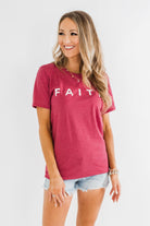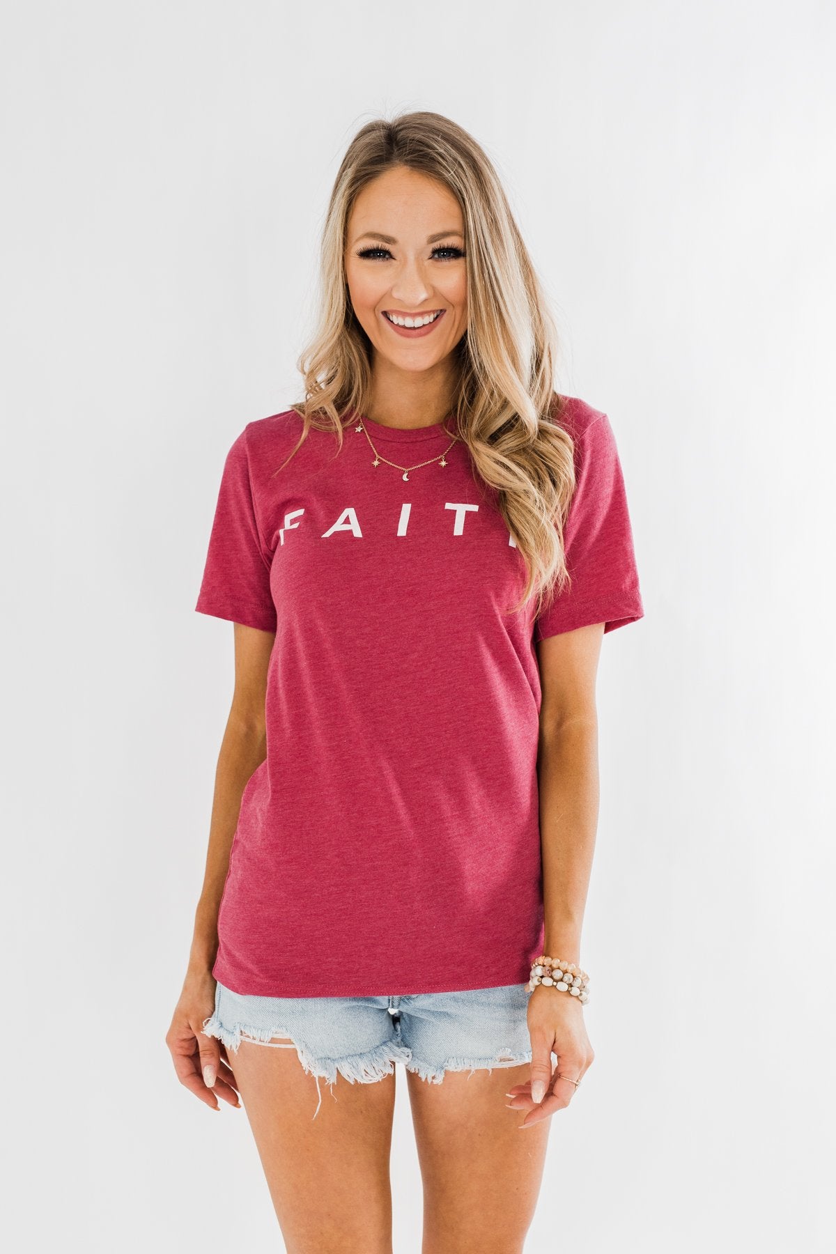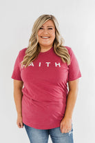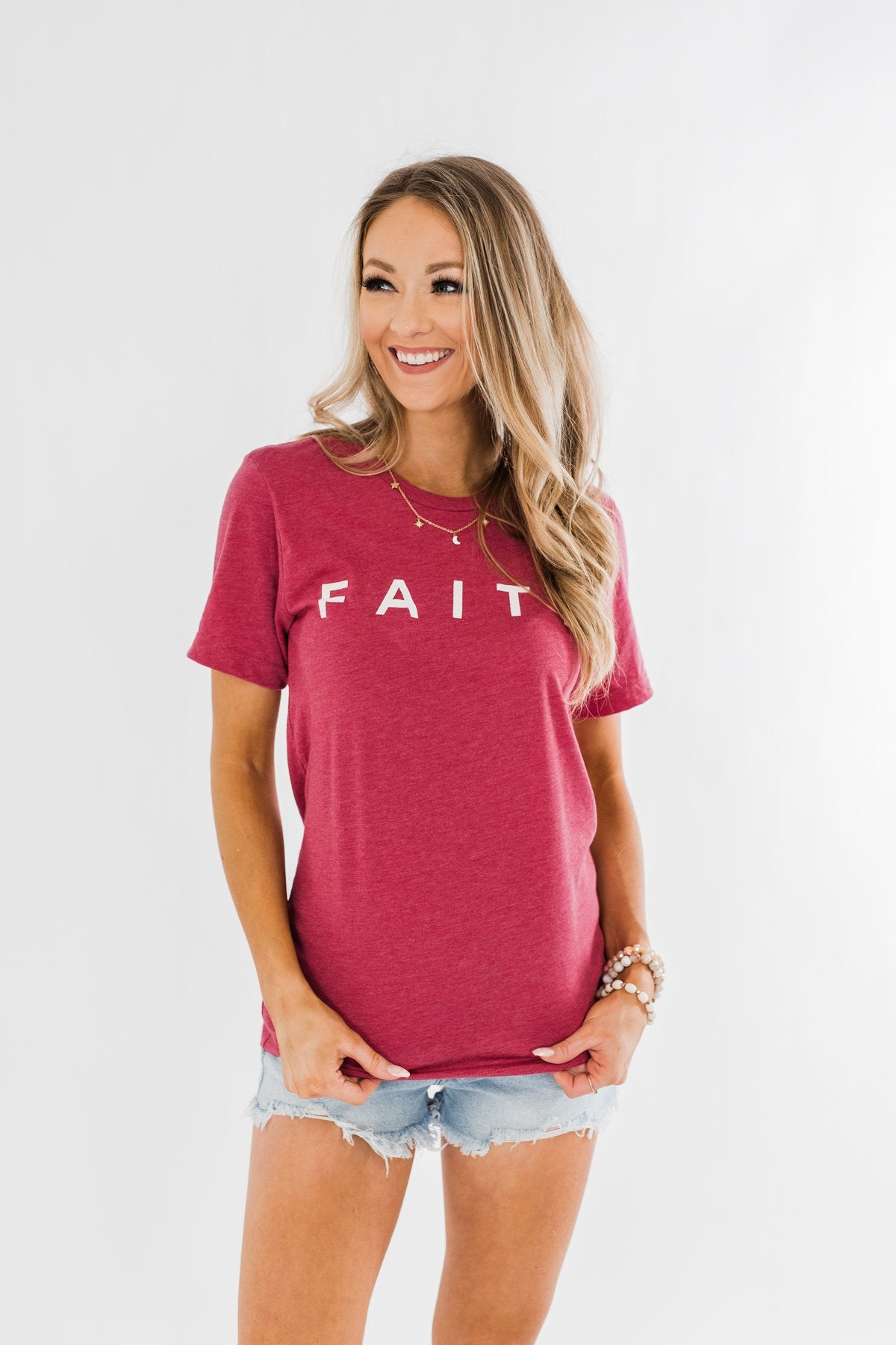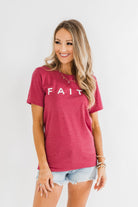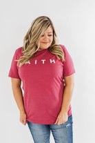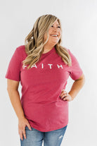 A great reminder to have a little "Faith" in your everyday life! Wear it by itself for a casual look or dress it up with a cardigan or denim jacket!
