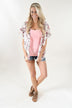 A bright floral print kimono! Add one of our pink camis for a pop of color! Looser fit.