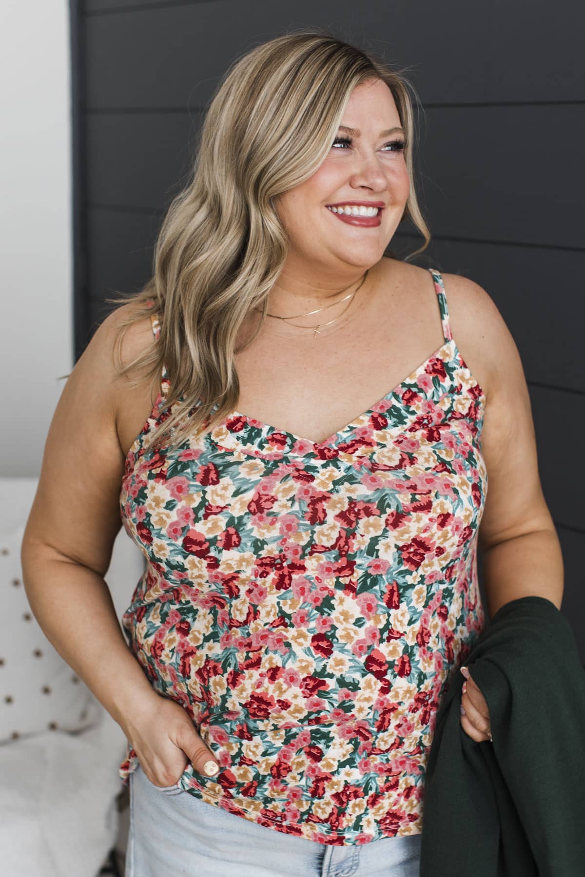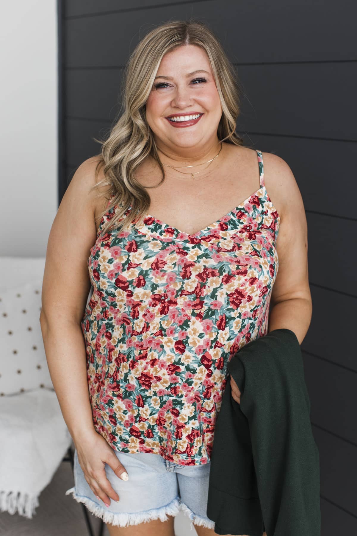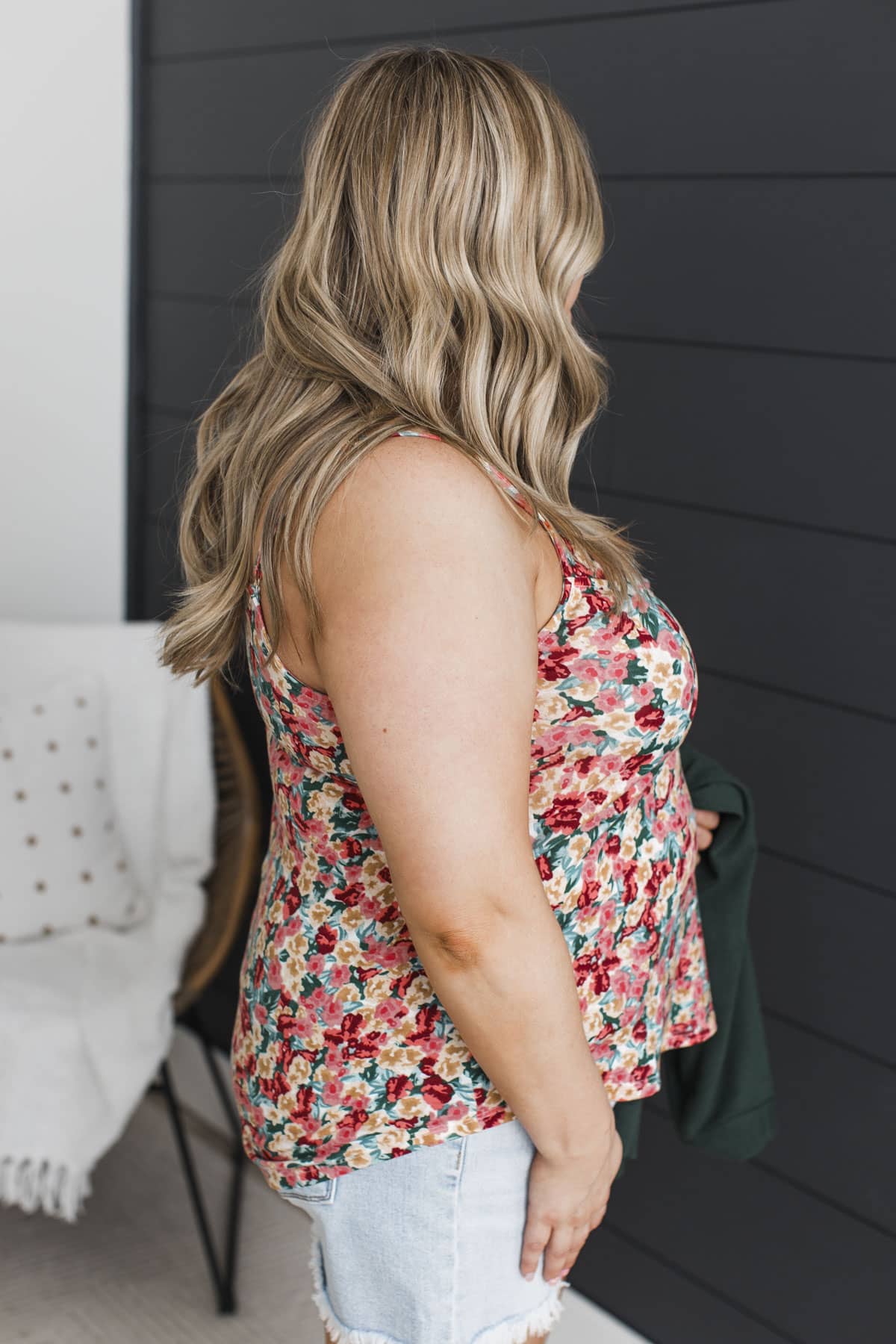 Feeling Dreamy Floral Tank Top- Coral & Green