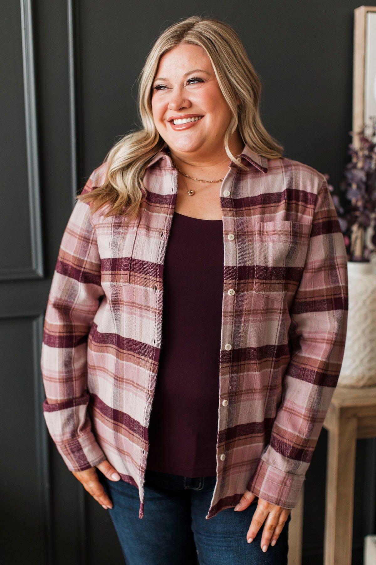 Thread & Supply Places To Love Plaid Button Top- Magenta