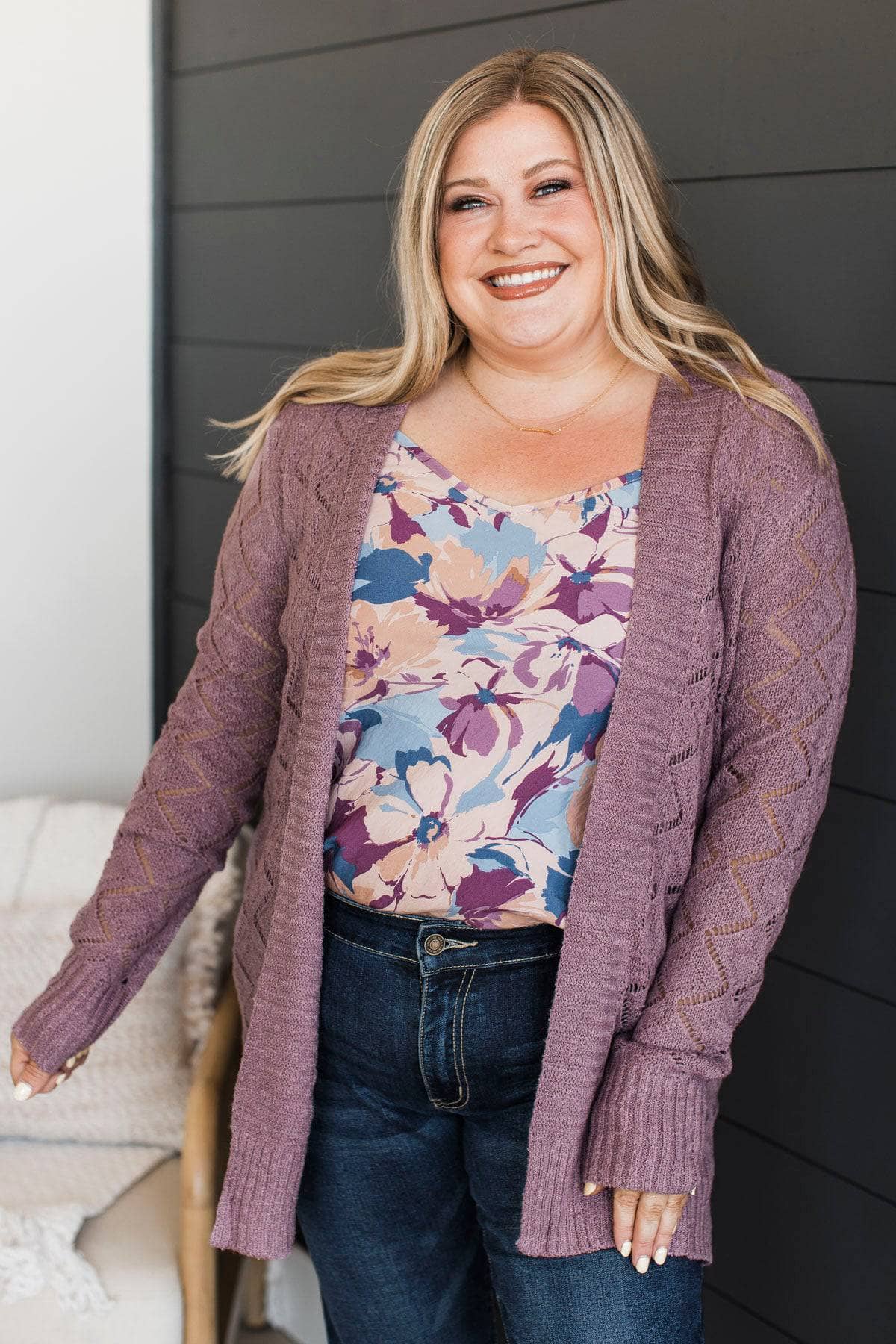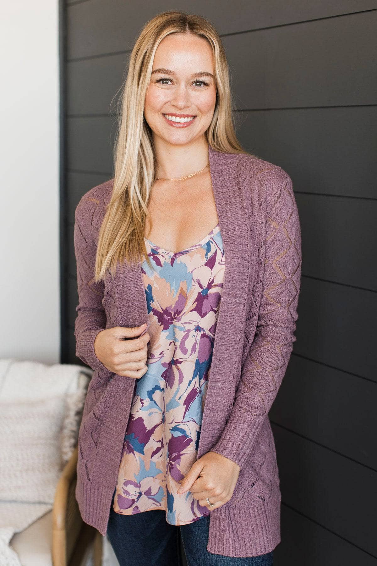 Effortless Perfection Pointelle Cardigan- Dusty Lavender