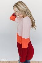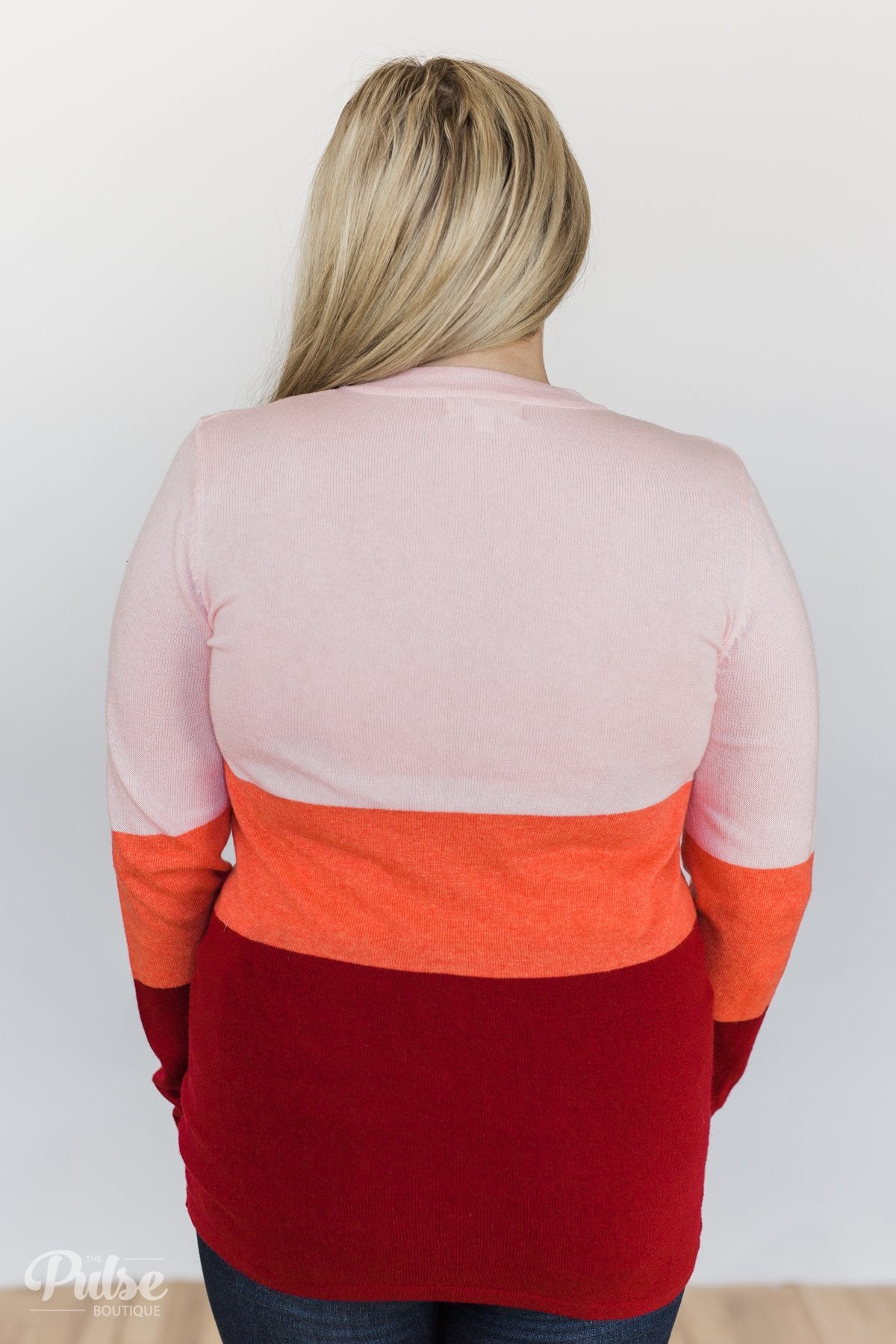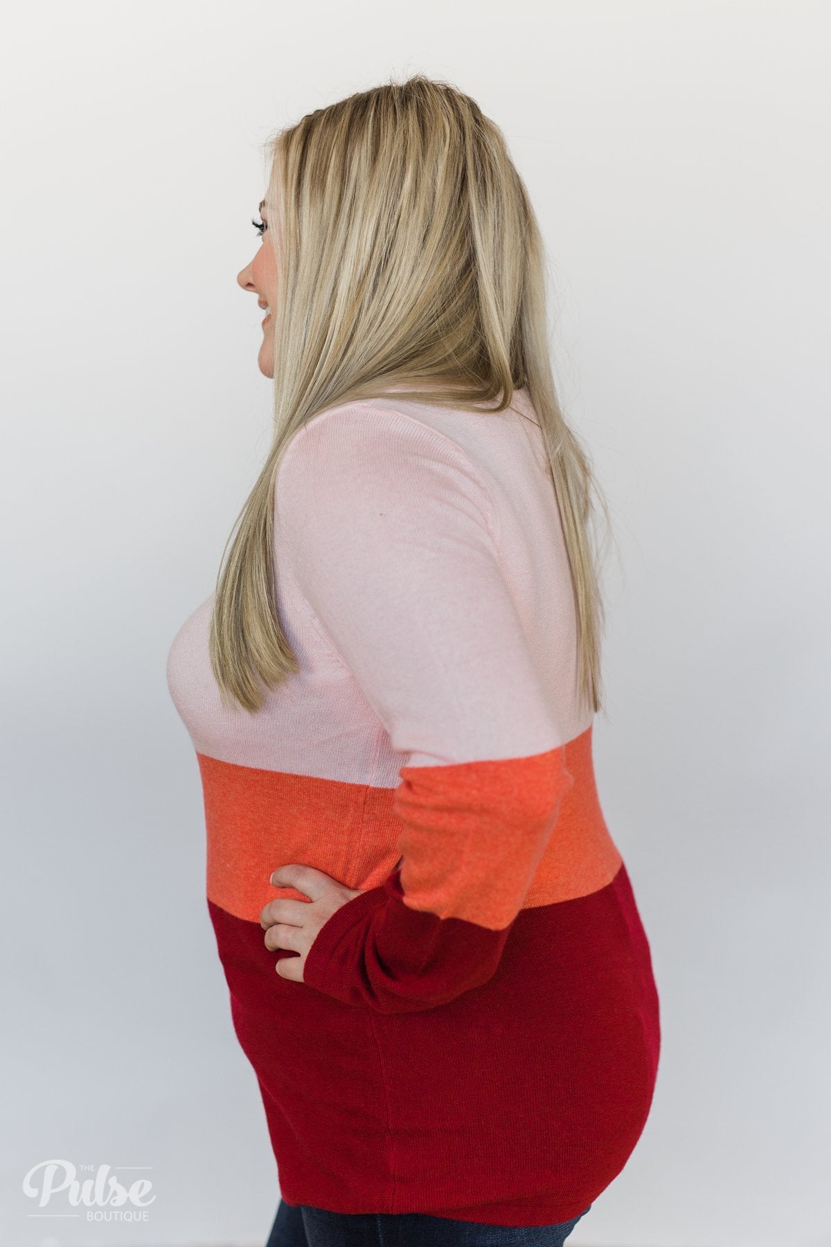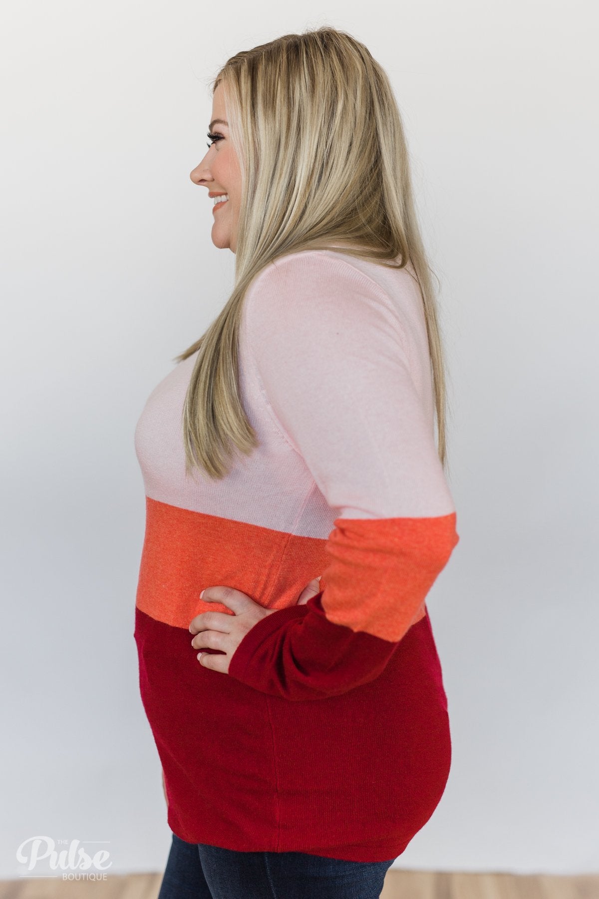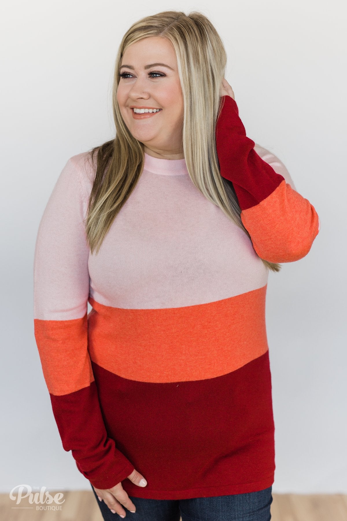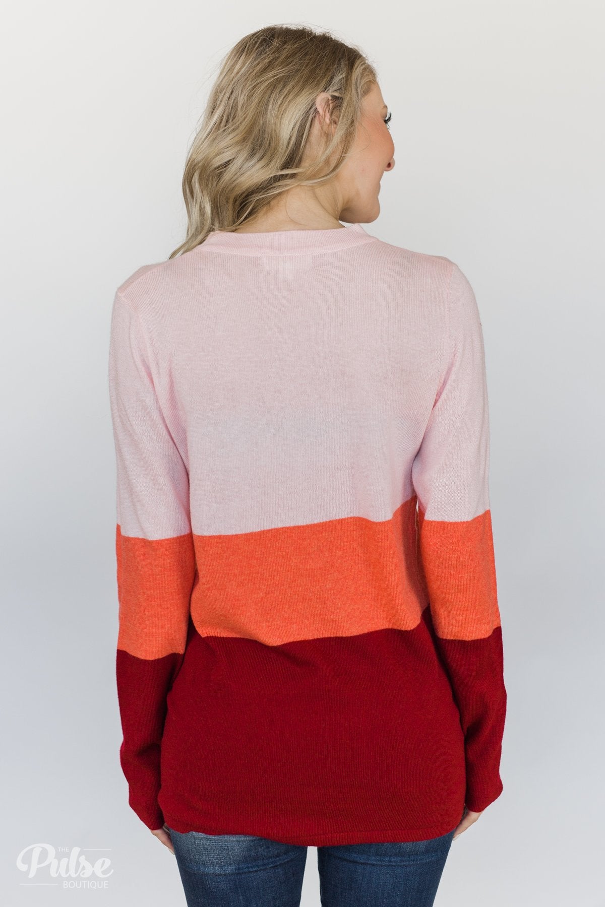 Feeling The Love Color Block Sweater- Pink, Orange, Red