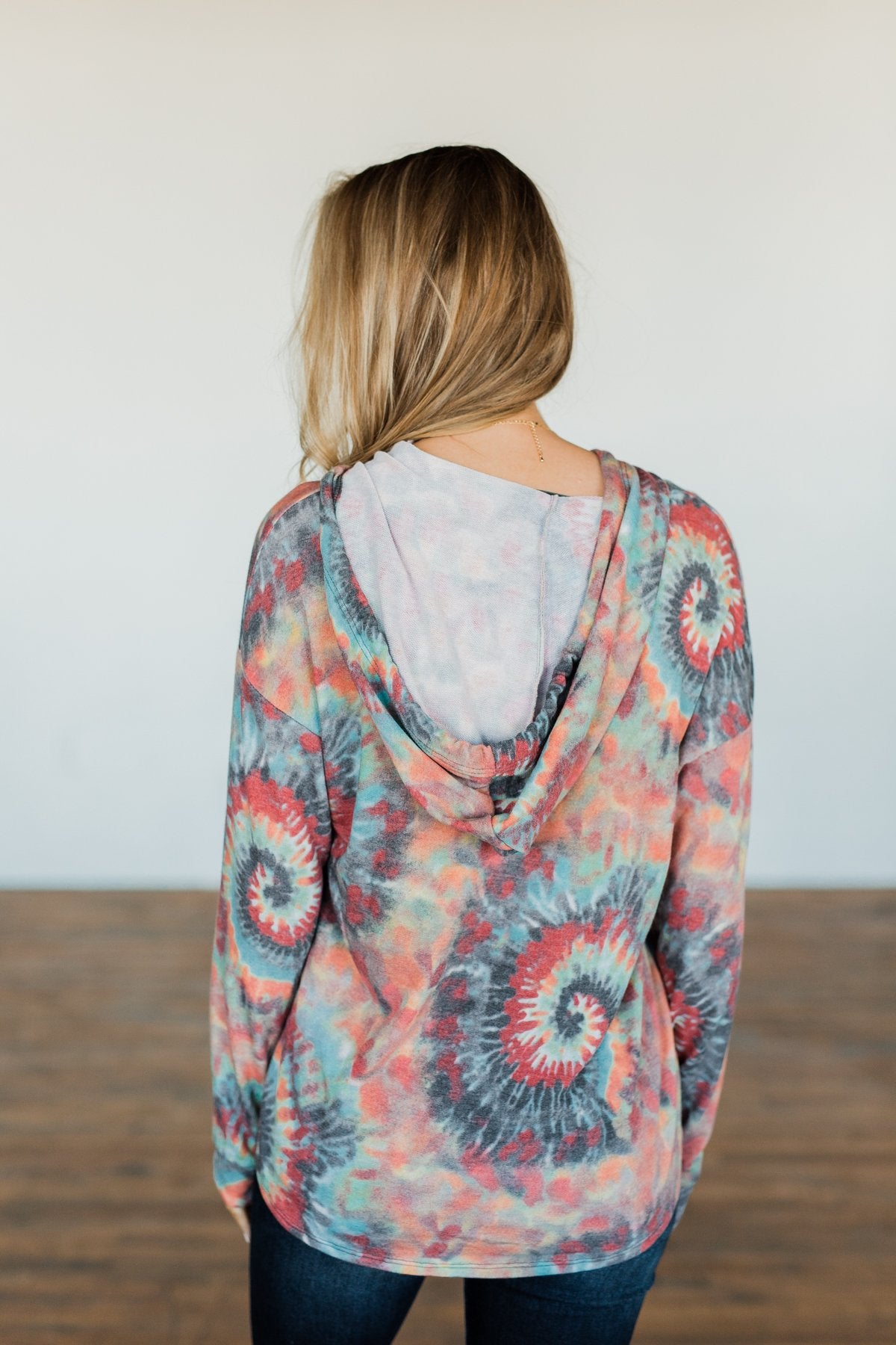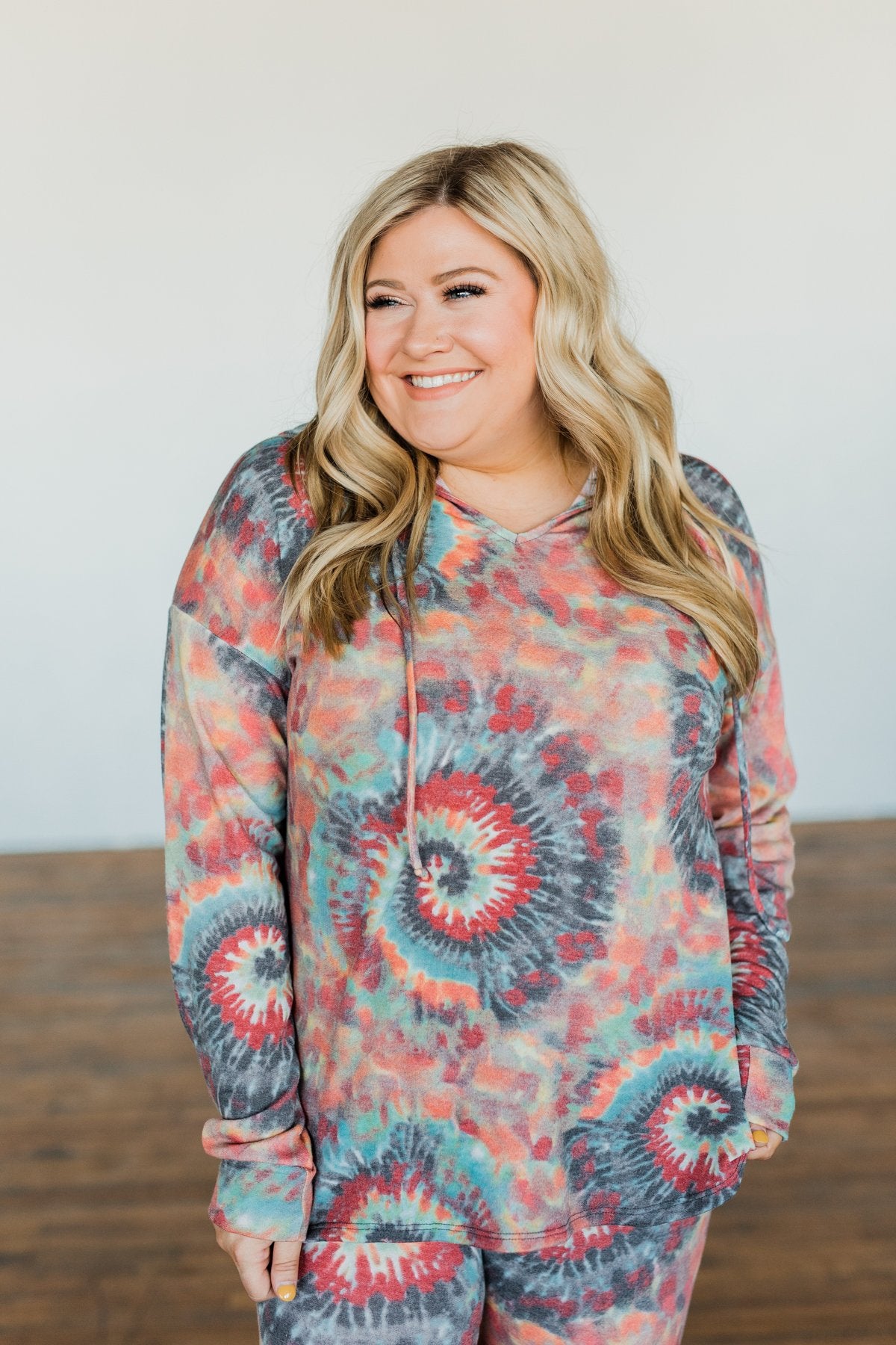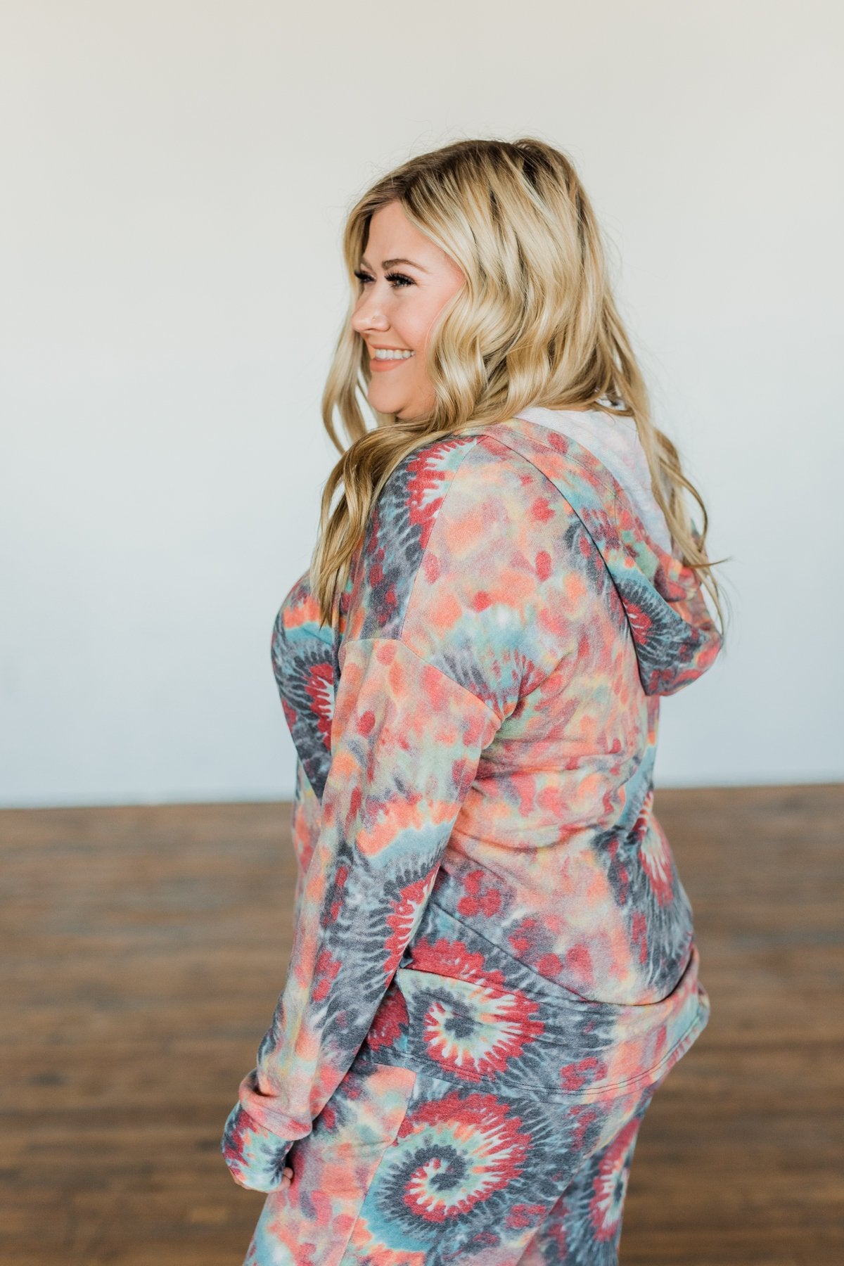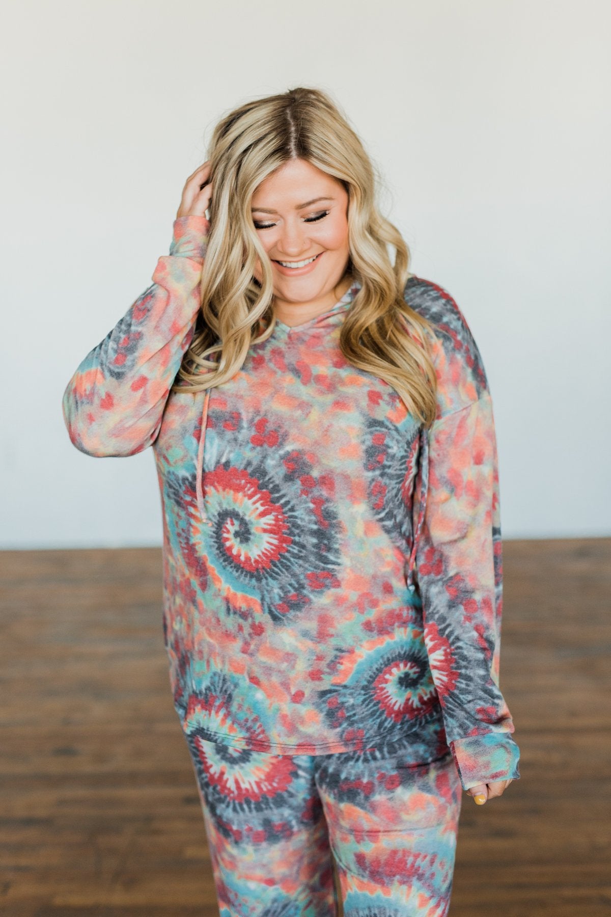 Make every day a happy day with this super groovy tie dye hoodie! This hoodie features drawstrings and a unique tie dye pattern. Wear with joggers, jeans, or our matching "Follow The Sun Tie Dye Joggers- Multi-Color" joggers to make it a complete set!