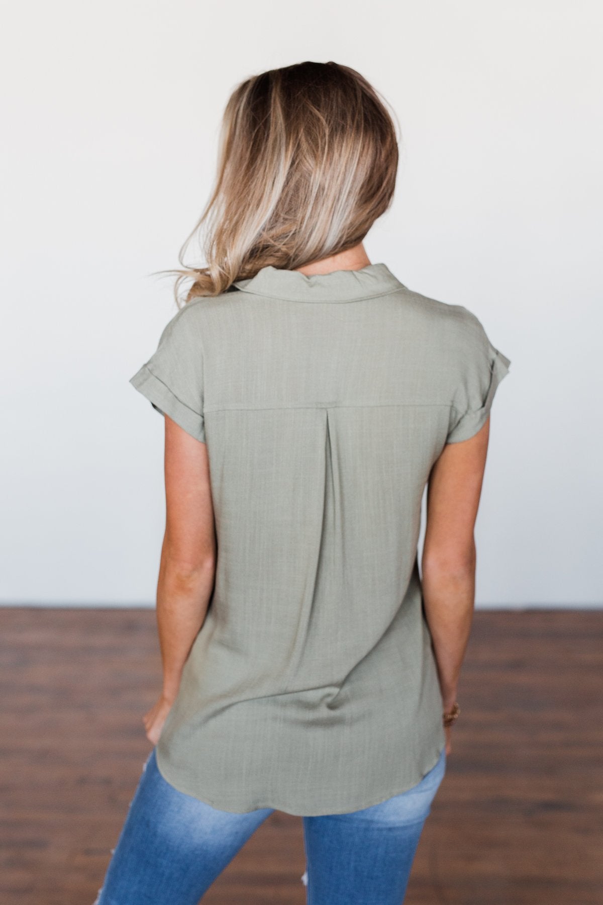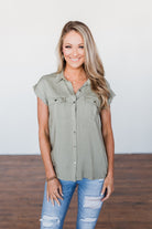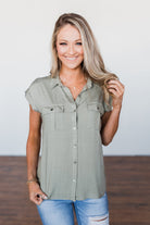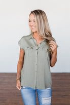 Forever Faithful Button Down Top- Light Olive