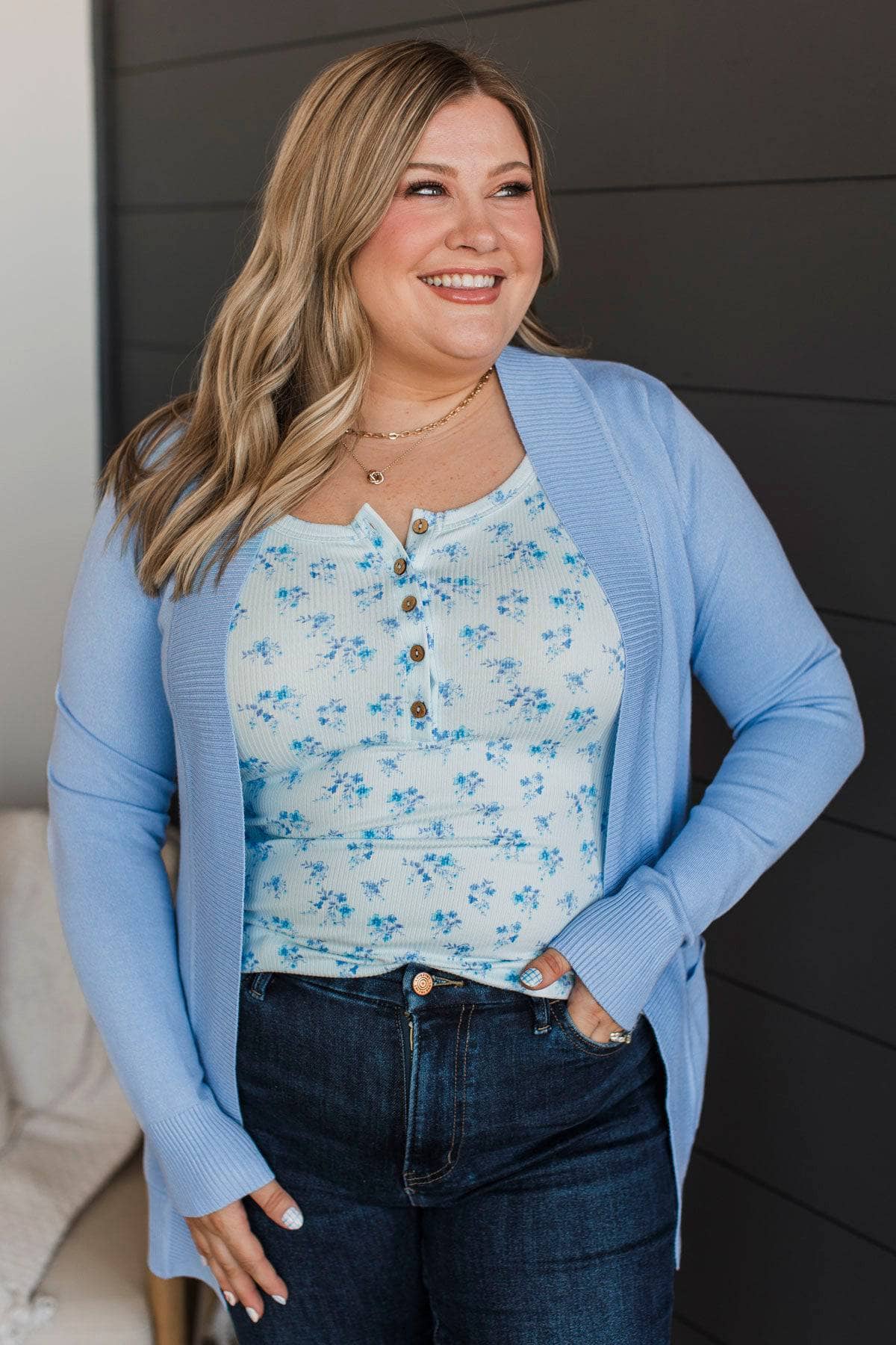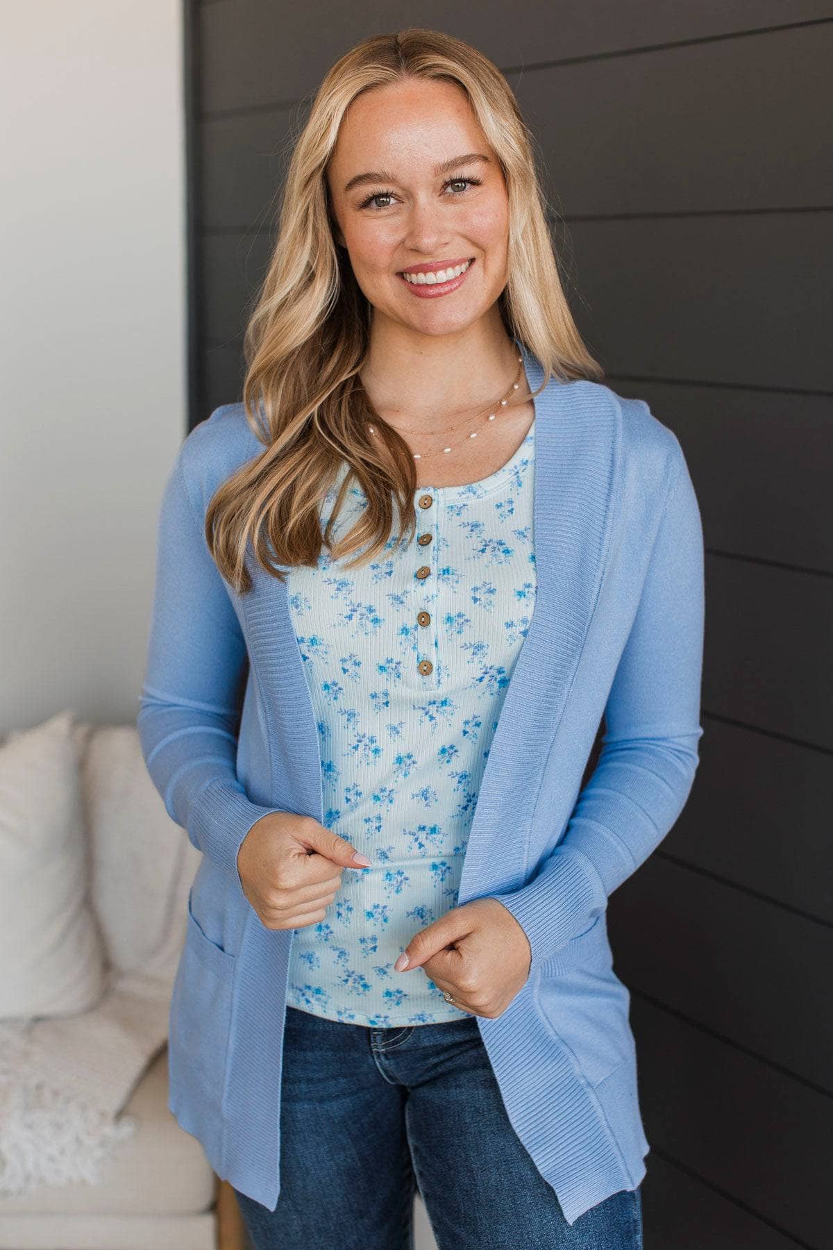 As Easy As Can Be Cardigan- Cornflower Blue