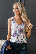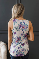 Graceful Beauty Floral Tank Top- Ivory & Purple