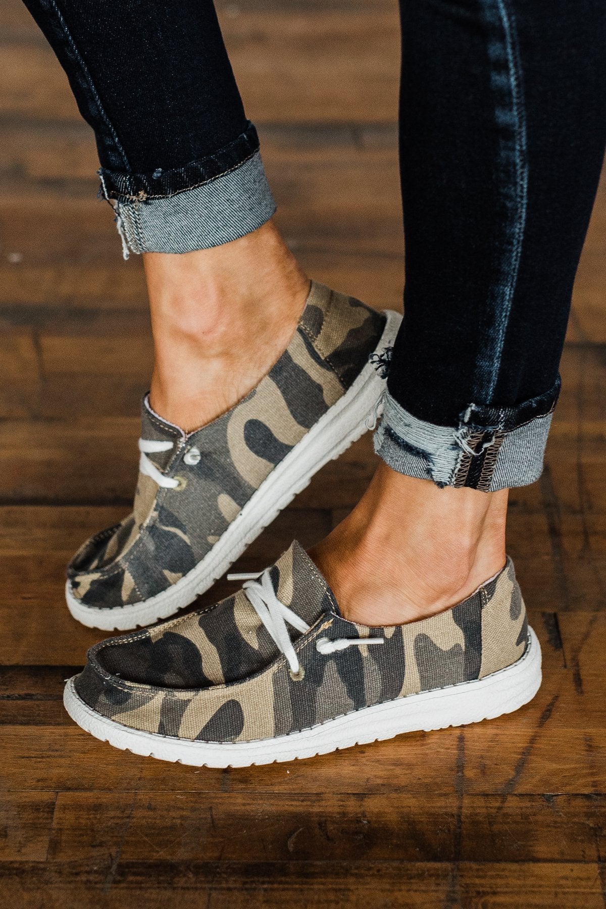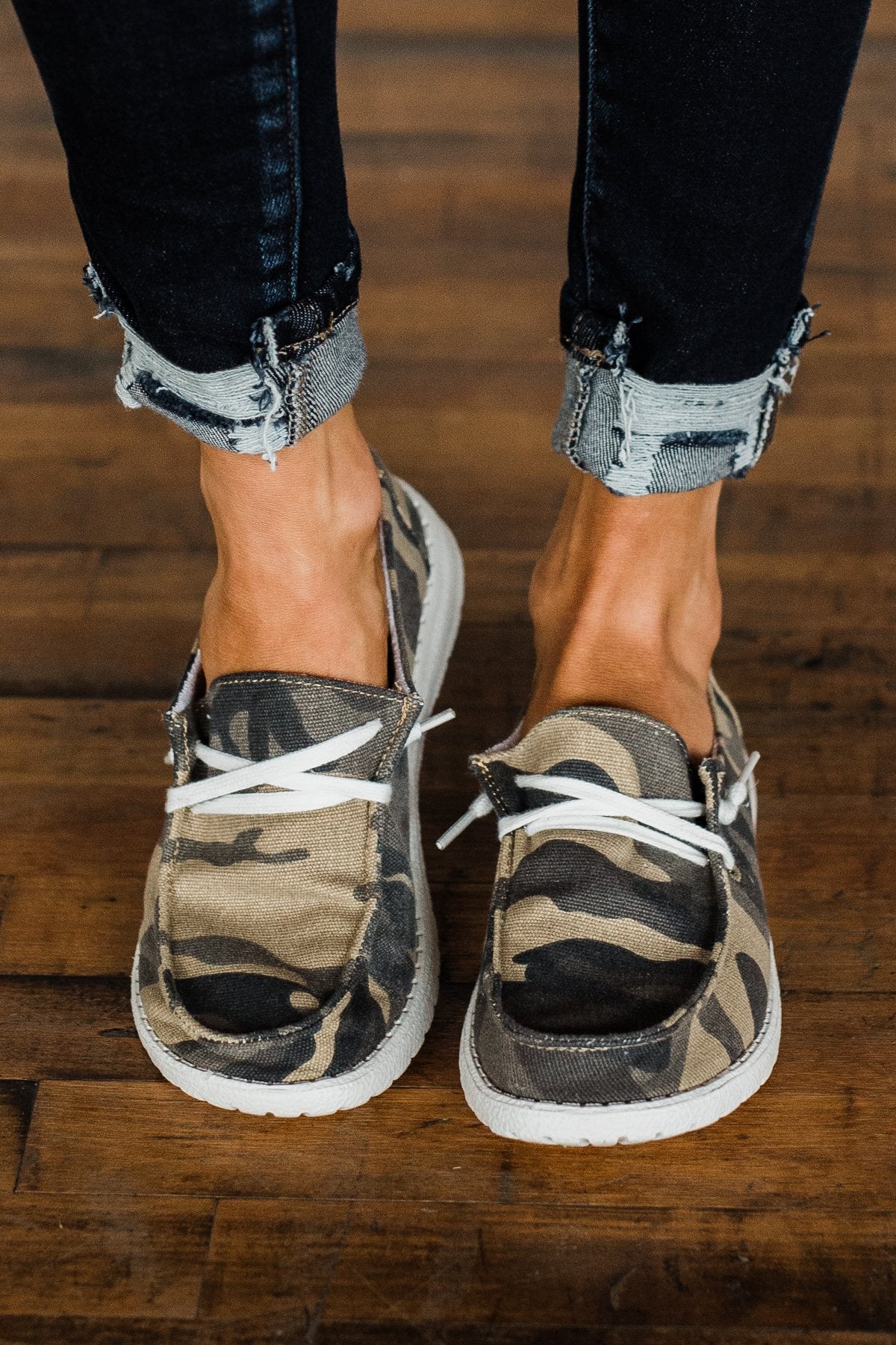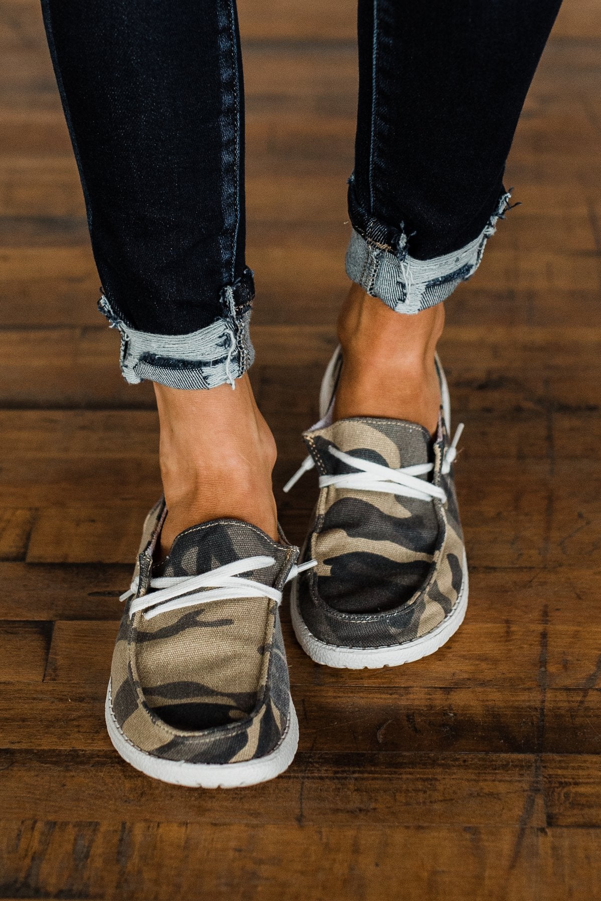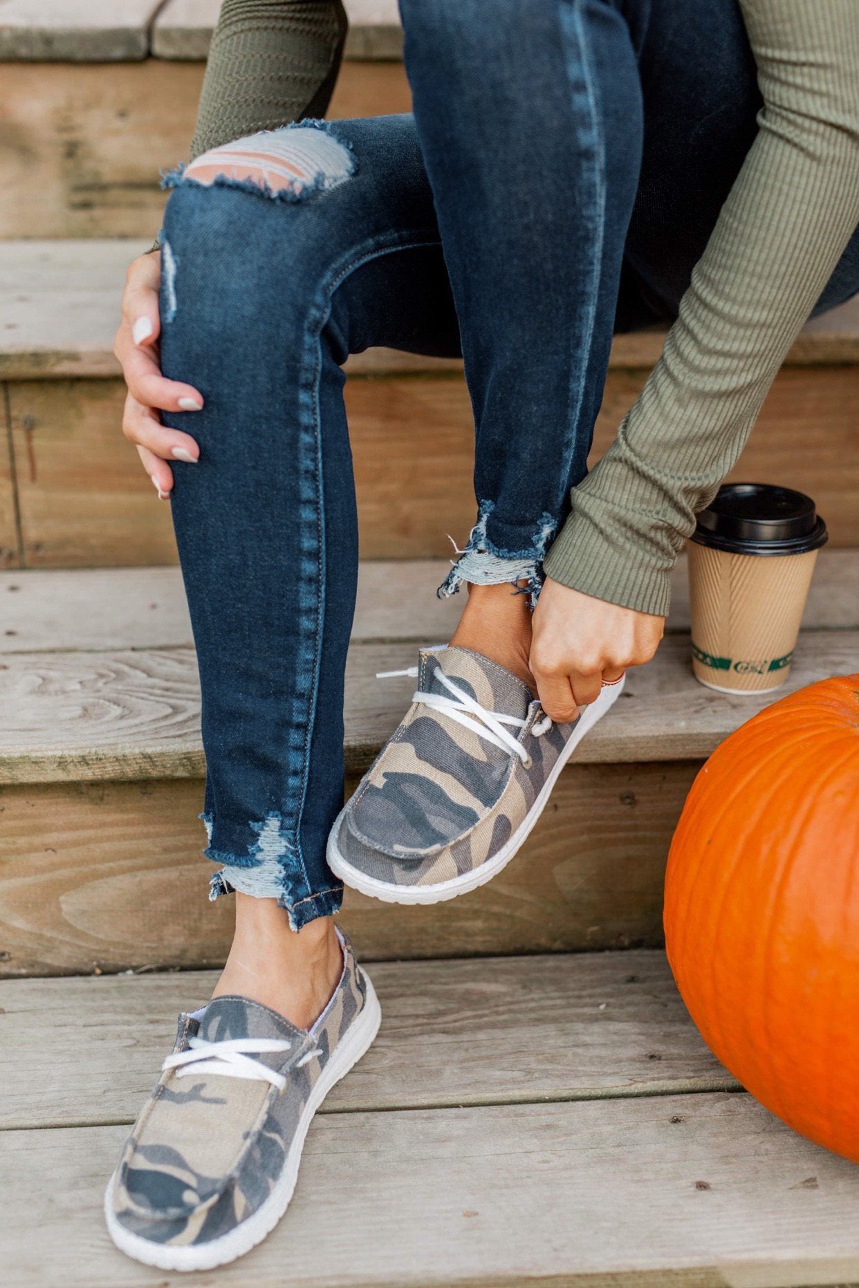 These sneakers are the perfect mix of cute and casual! They have a lightweight material with a captivating camo pattern that is sure to keep all eyes on you! They also feature a flexible, cushioned sole making these ideal for all day wear.
