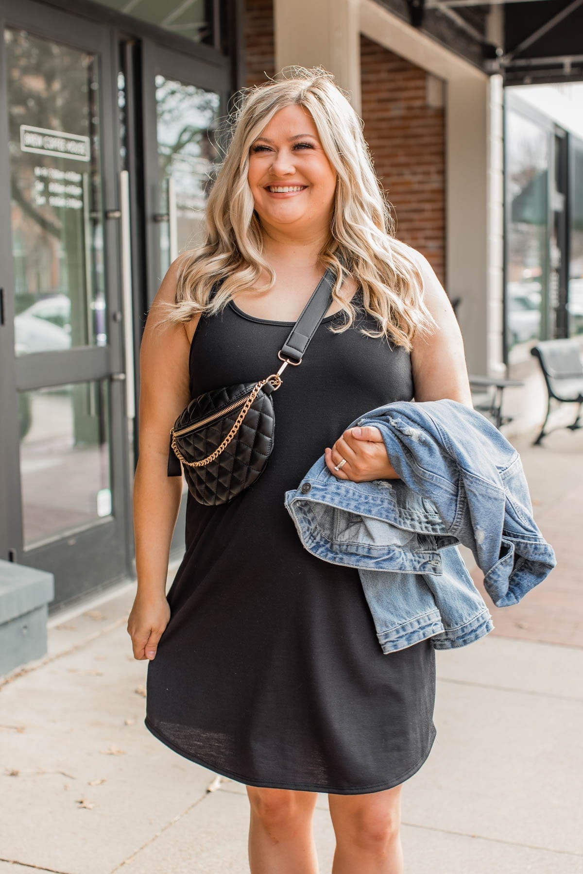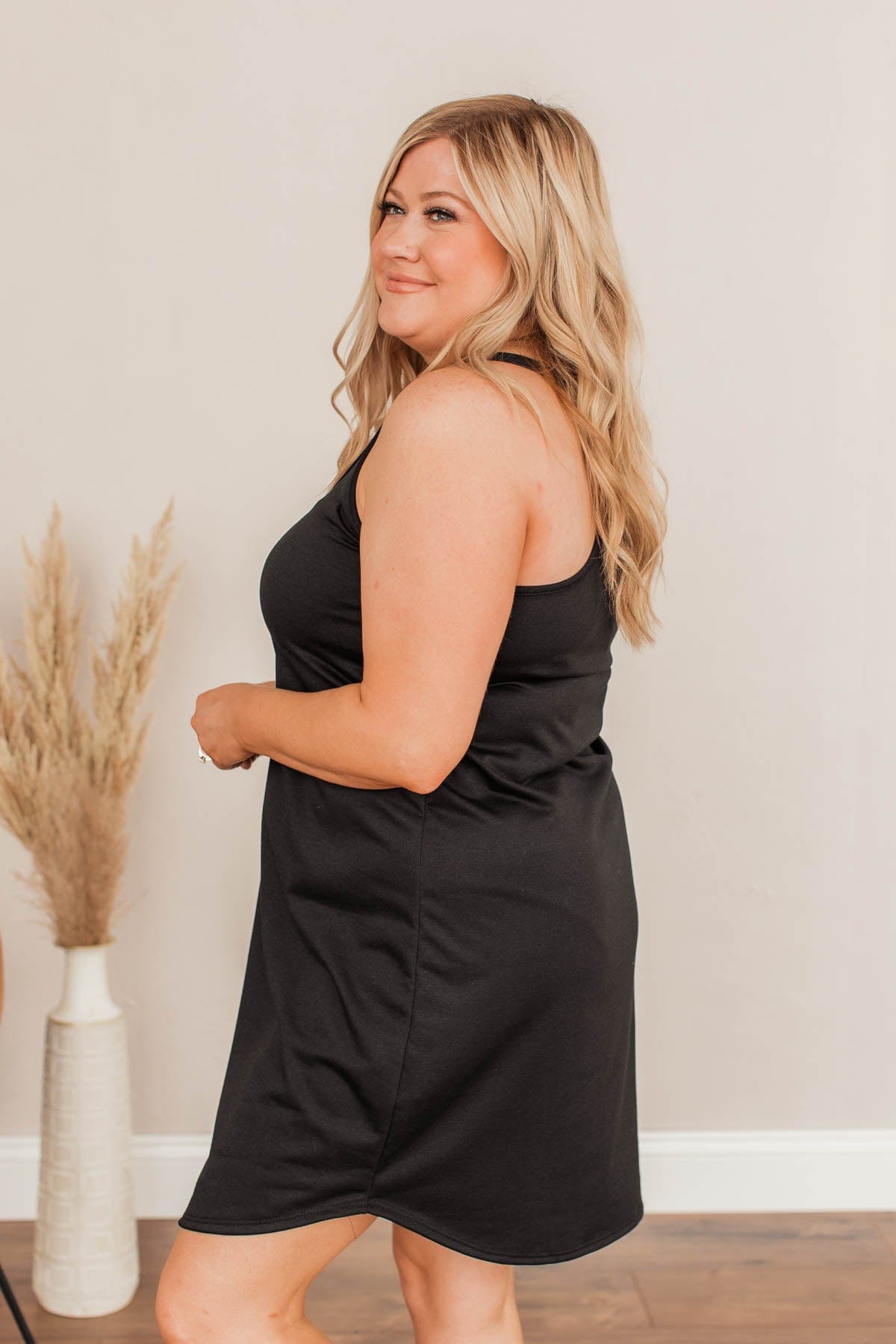 Stock up on year-round wardrobe staples like this amazing dress! This piece keeps things simple, yet stylish with details such as the scoop neckline and racerback body style! Wear this underneath your favorite cardigan or button down for some fabulous style any time of the year!