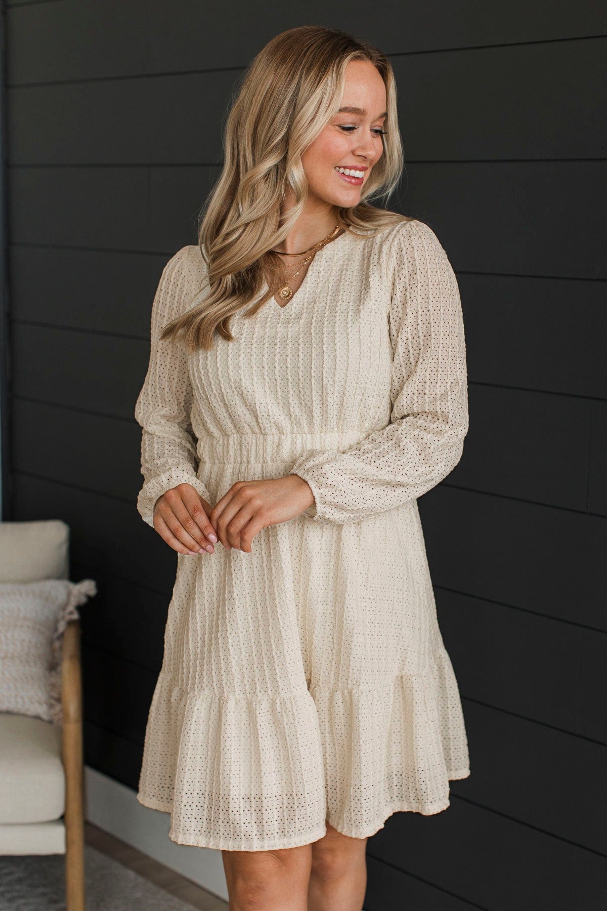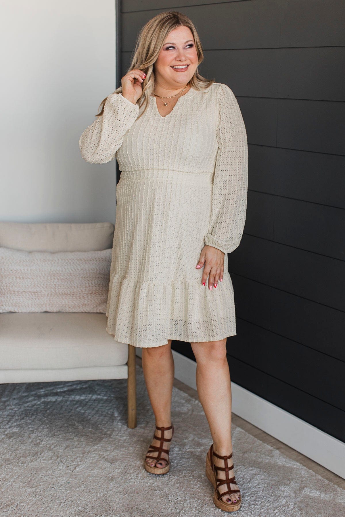 Simply Polished Long Sleeve Dress- Ivory