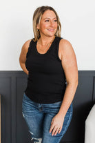 It's All Good Lace Trim Ribbed Tank Top- Black