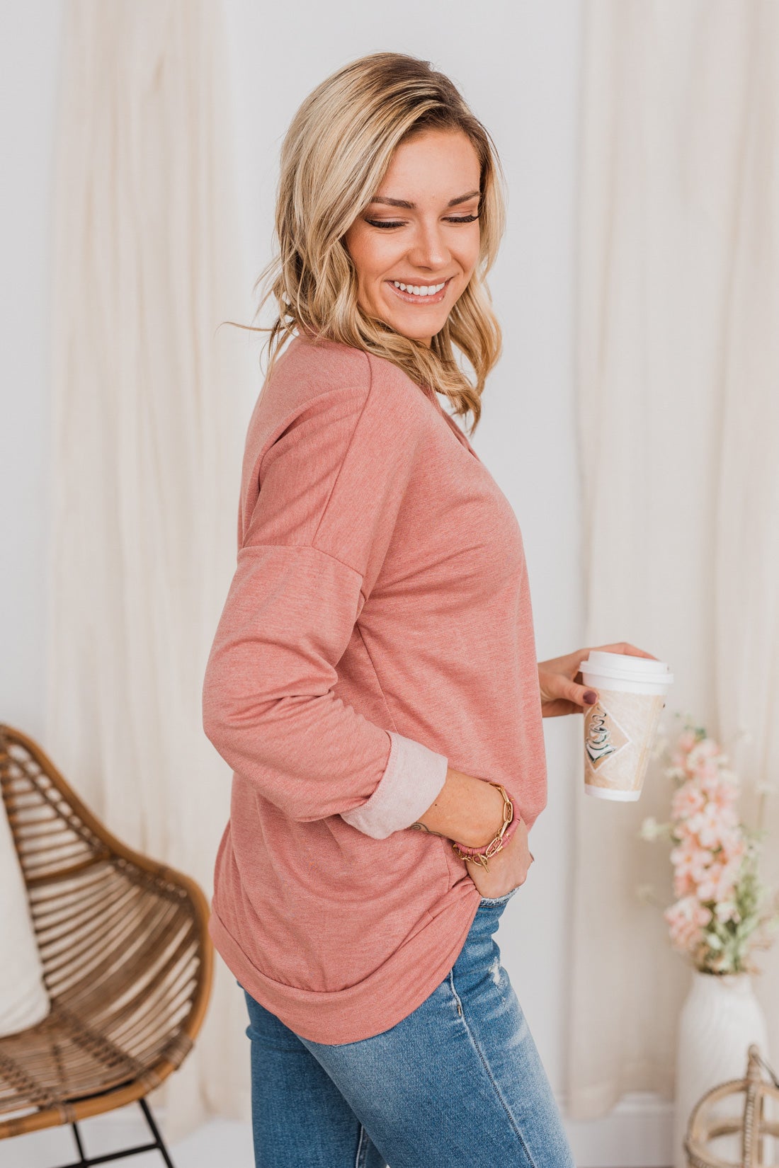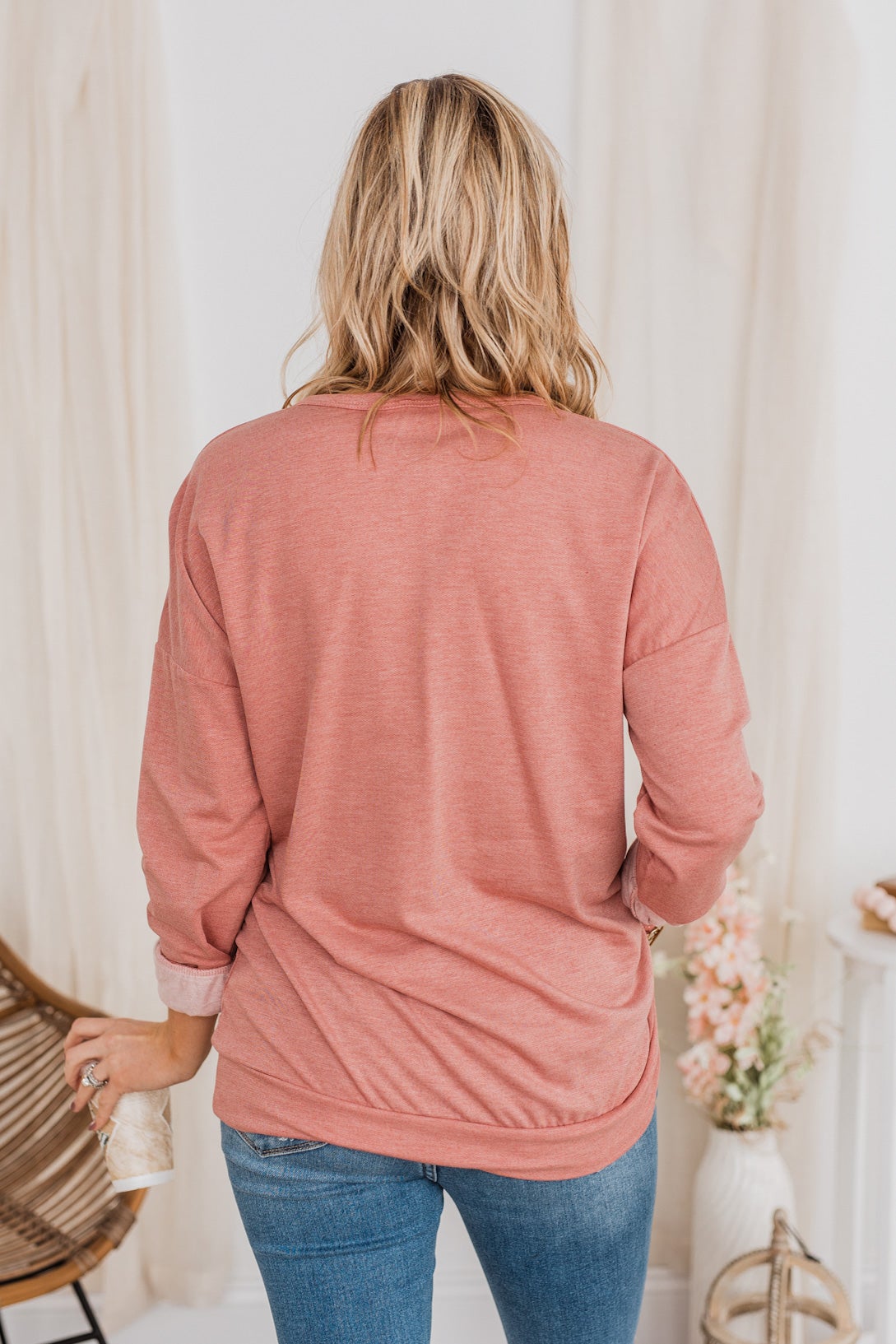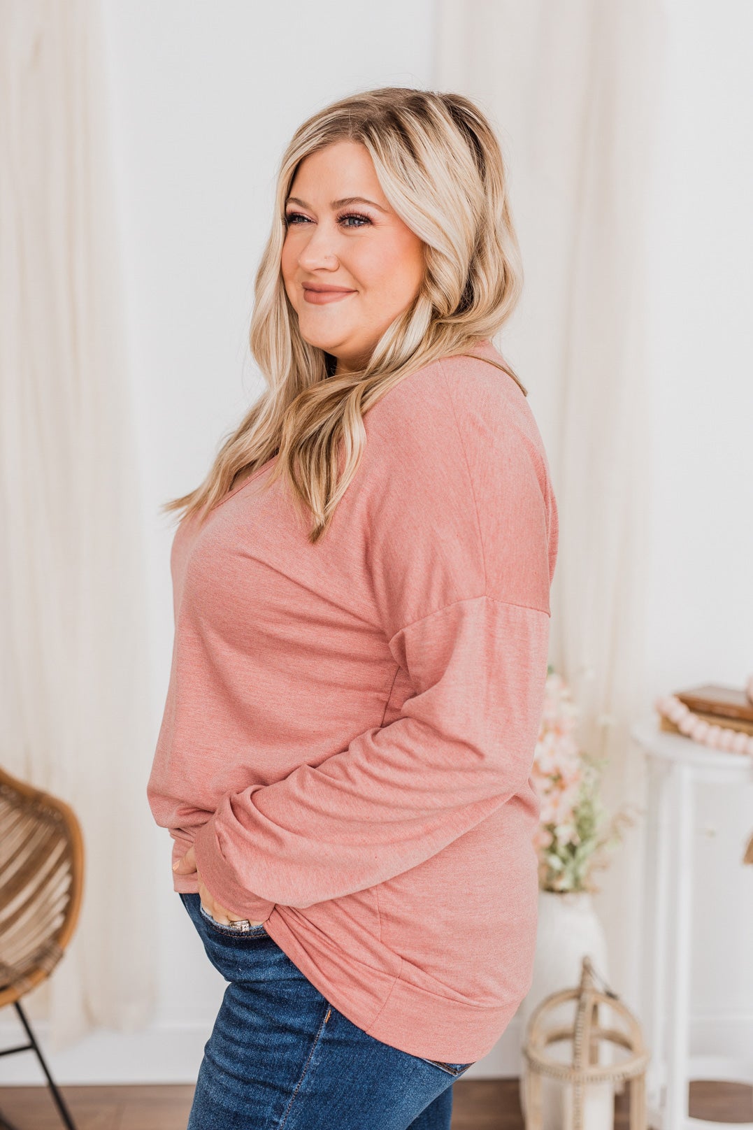 Just For Fun Criss Cross Long Sleeve Top- Mauve