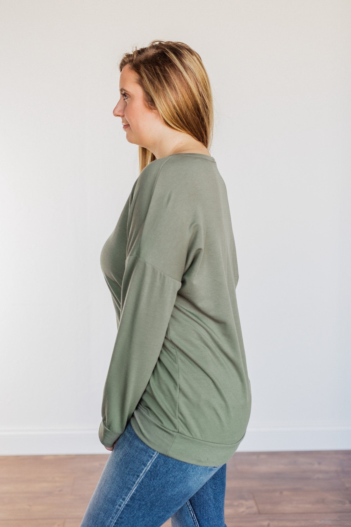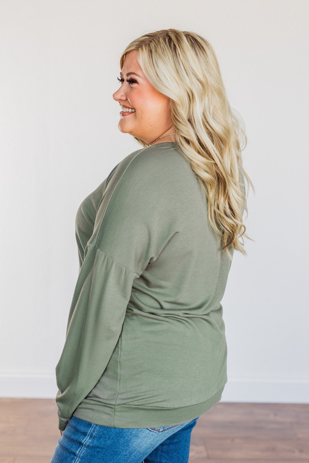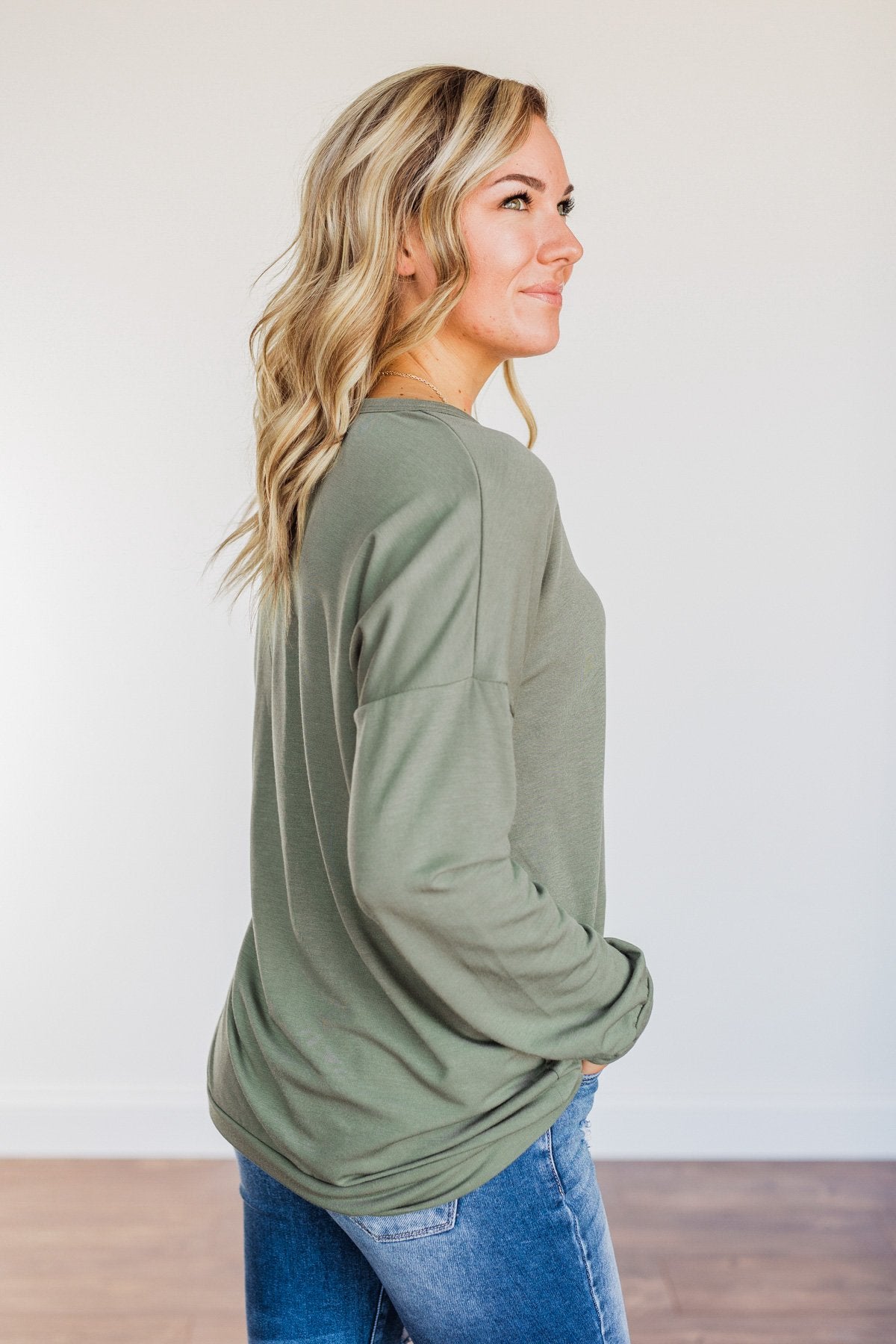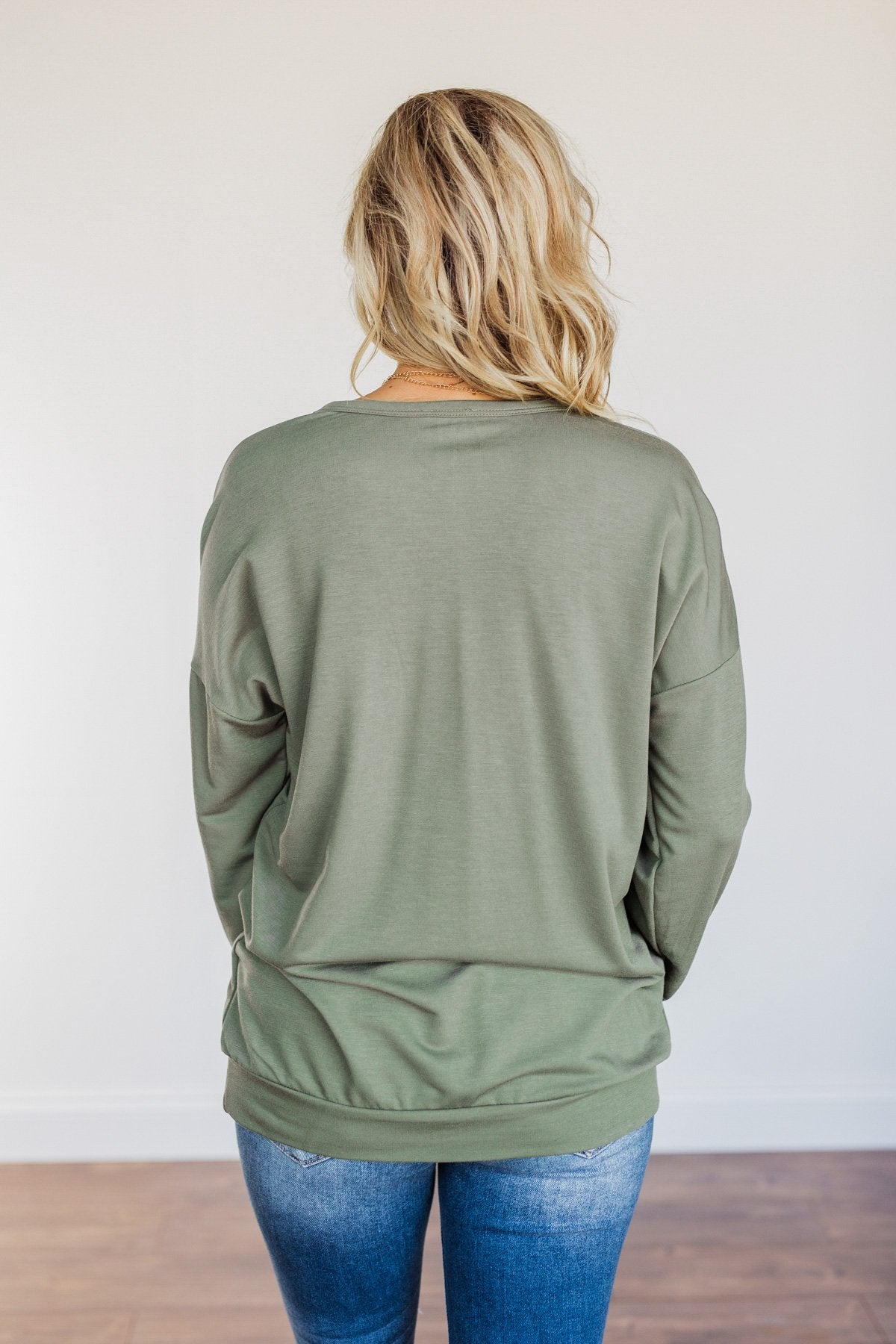 Just For Fun Criss Cross Long Sleeve Top- Olive