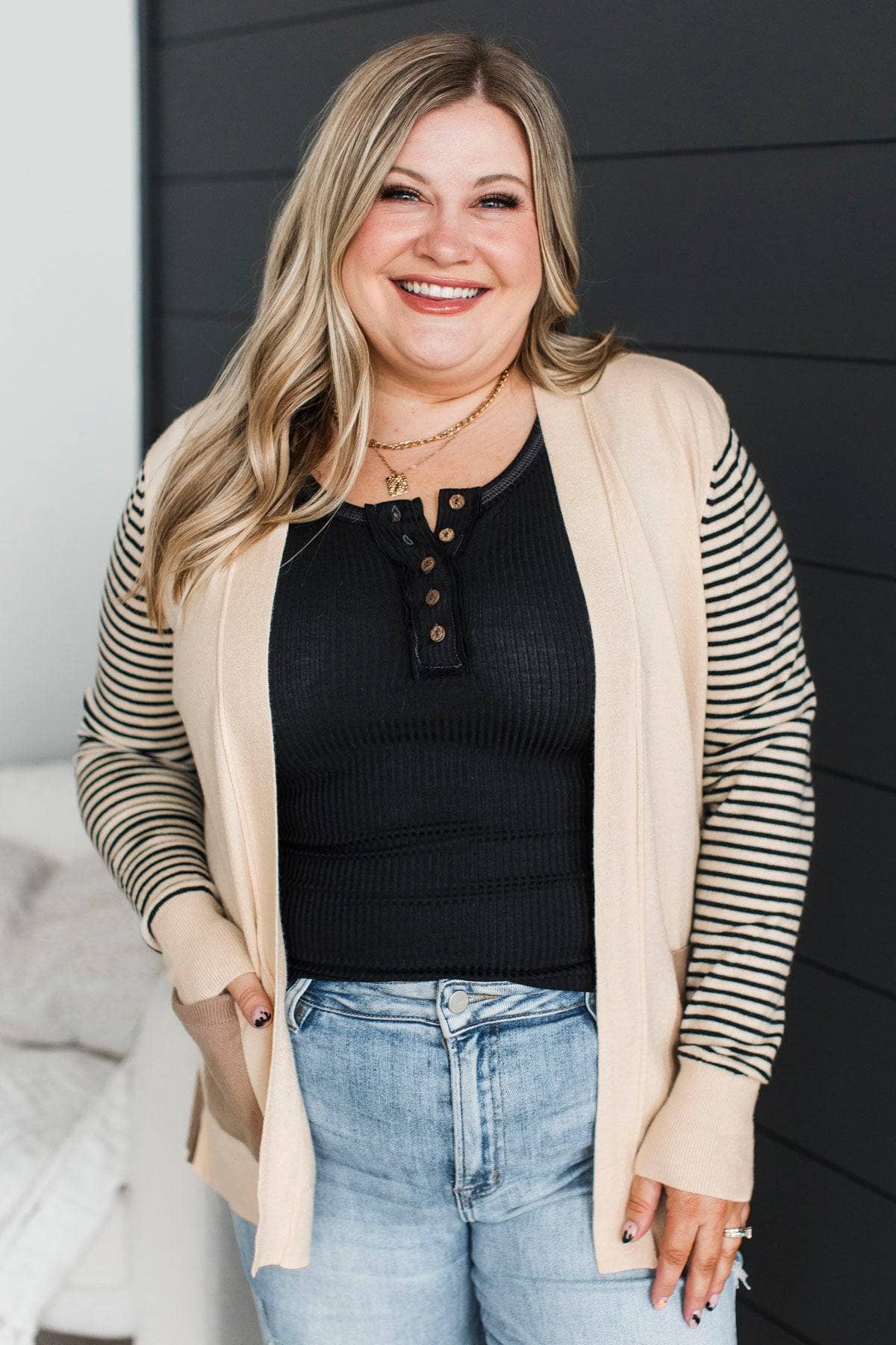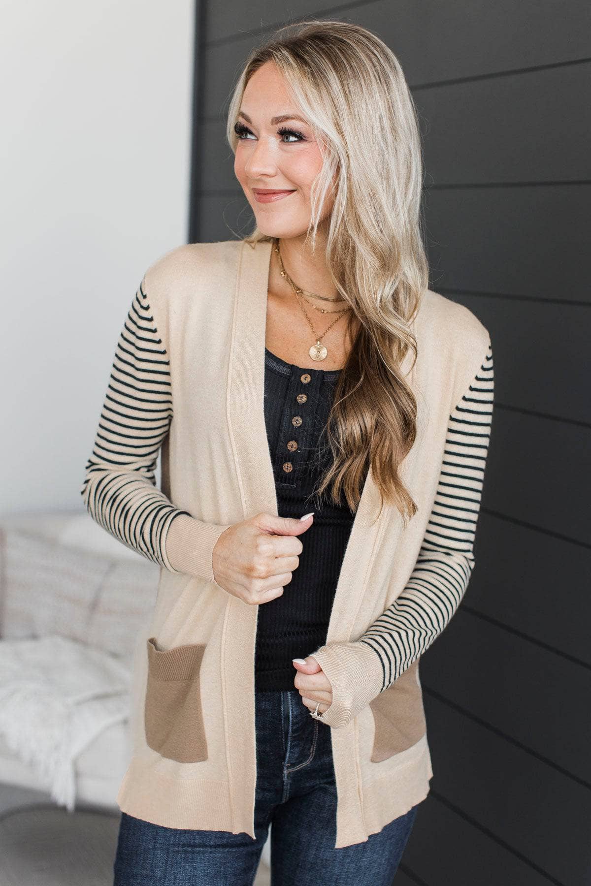 Find Me Here Open Front Cardigan- Light Taupe & Cream