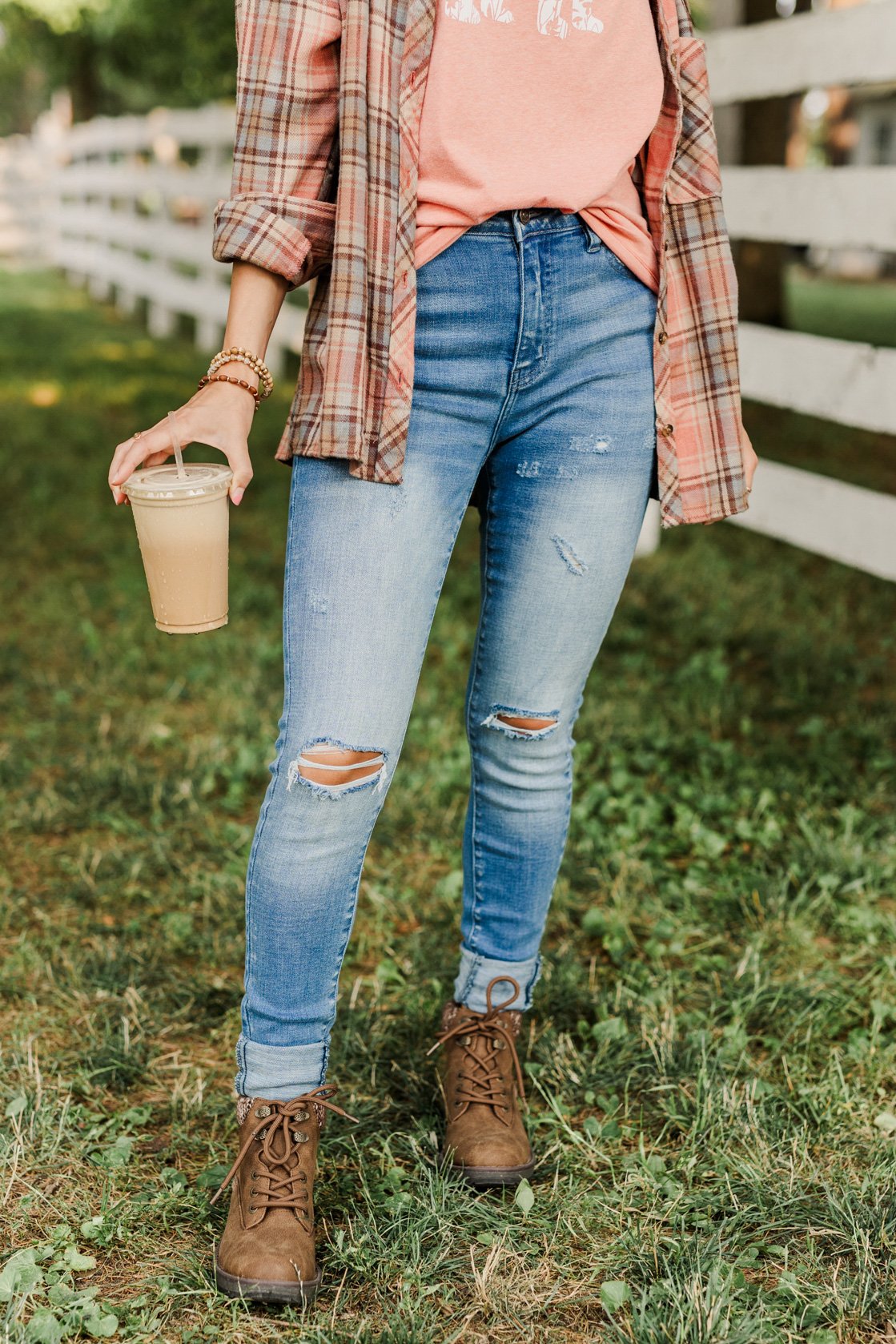 These are my go-to jeans right now. They have a good amount of stretch to them and are very comfortable! They pair well with summer & fall tops, making them a great transition piece.