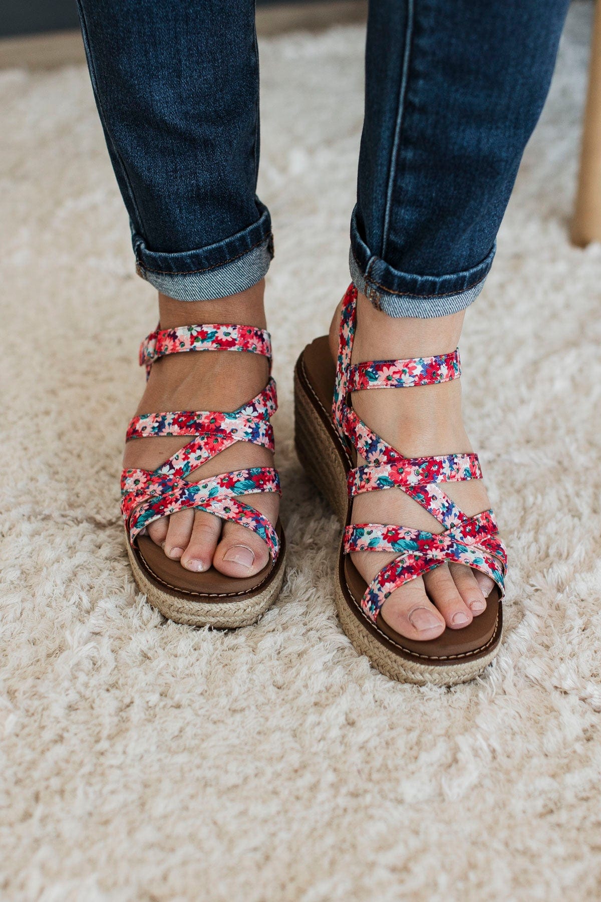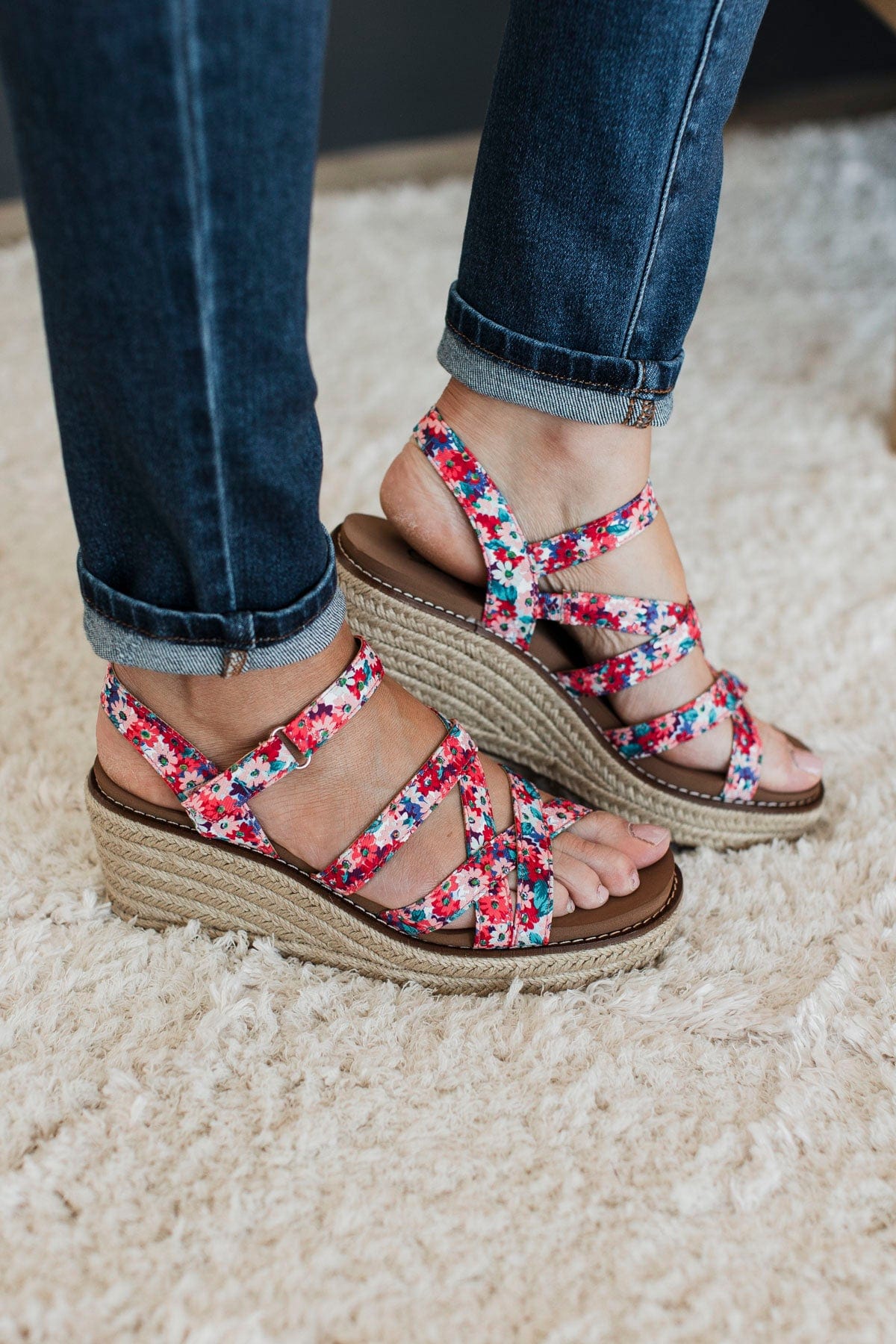 Corky's All Nighter Wedge Sandals- Red Mini Floral