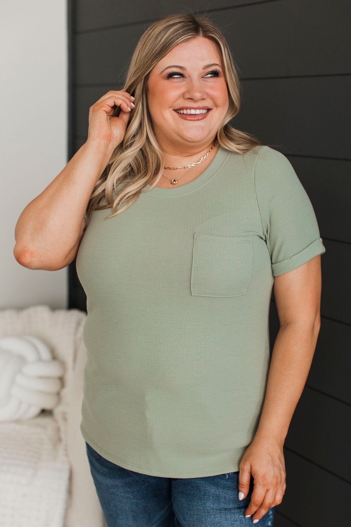 Exceptional Look Pocket Top- Sage