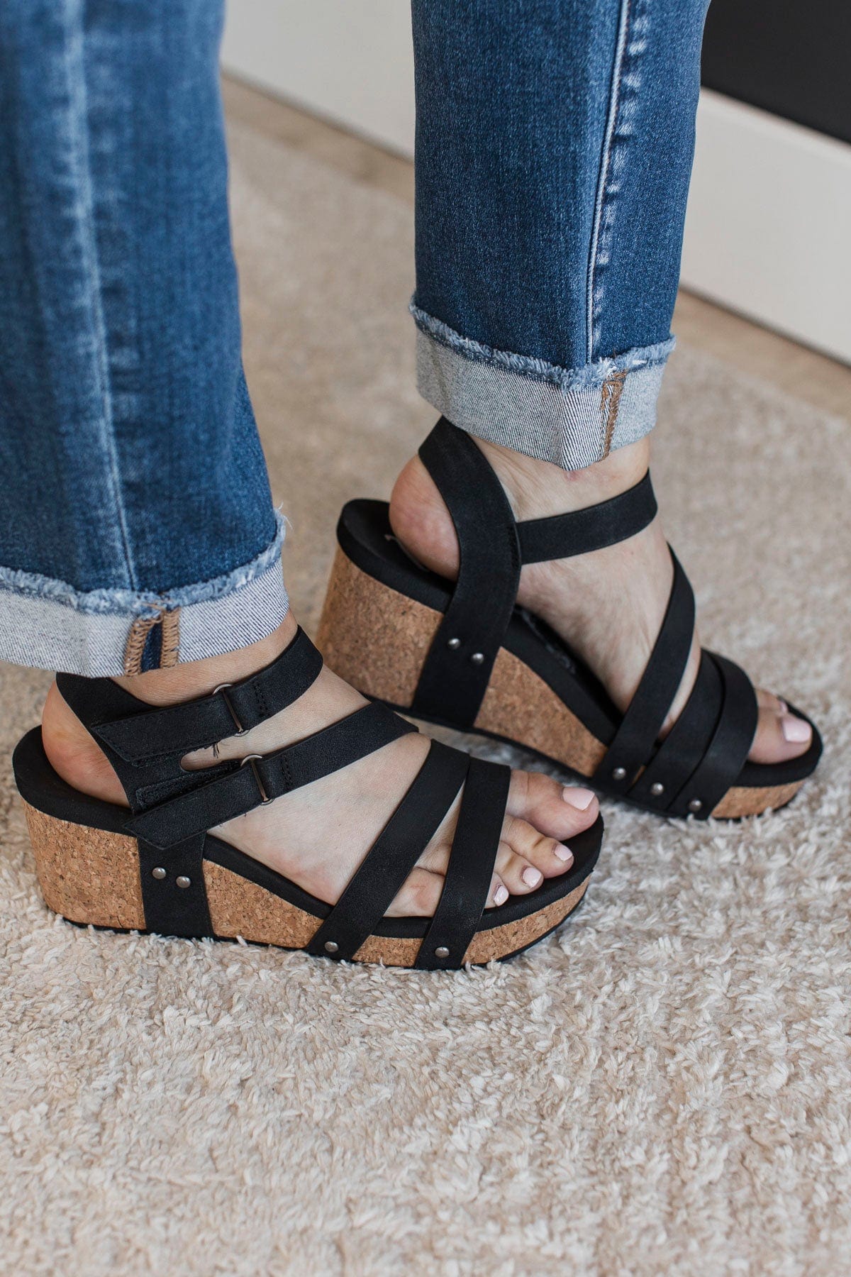 Very G Hariett Wedge Sandals- Black