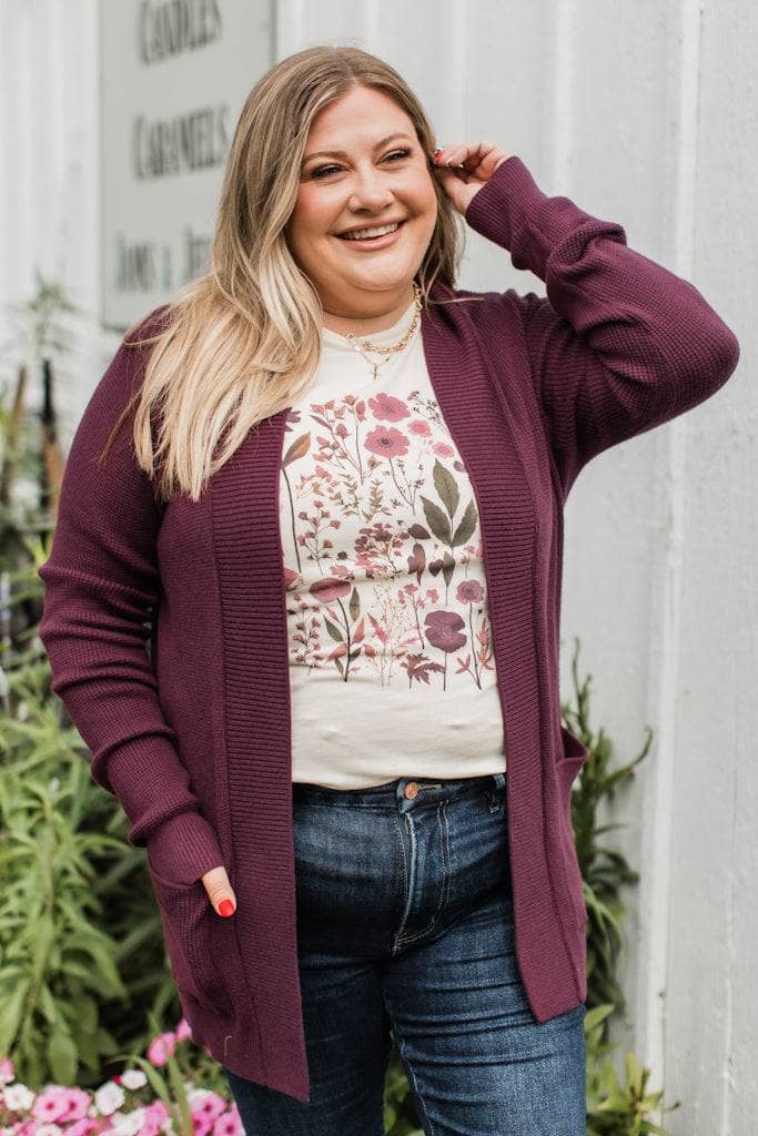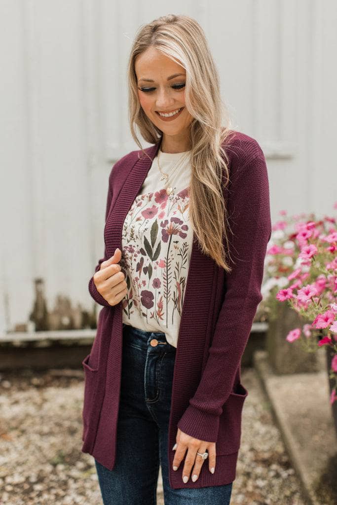 Feeling The Love Knit Cardigan- Dark Plum