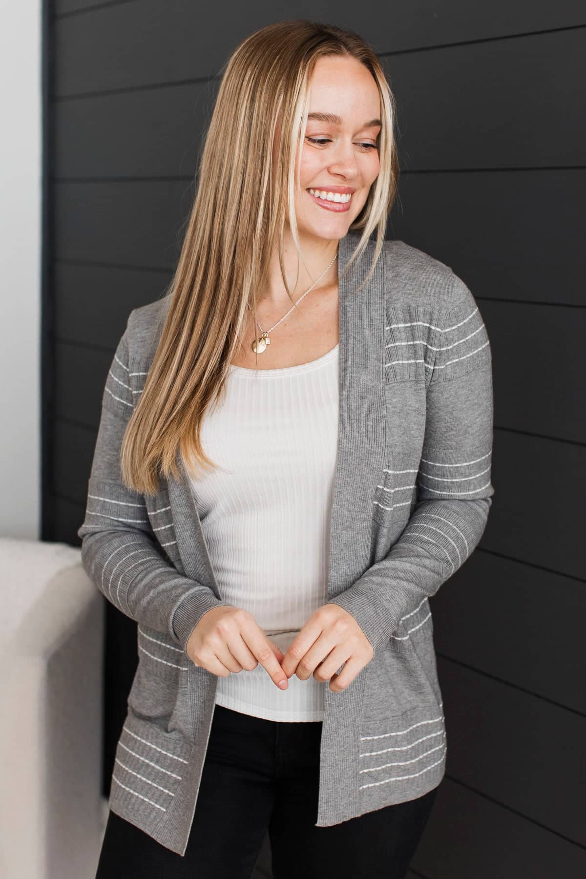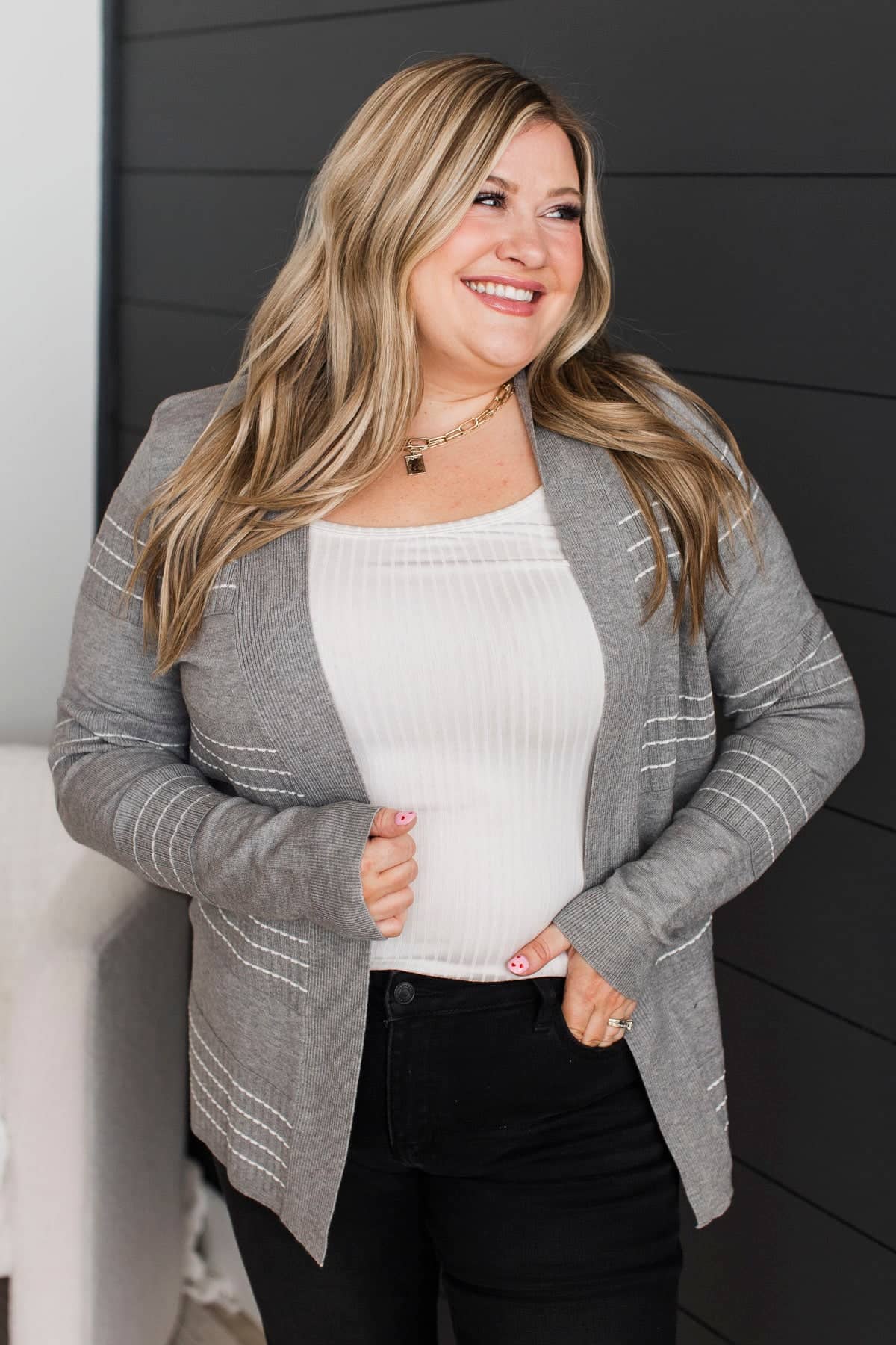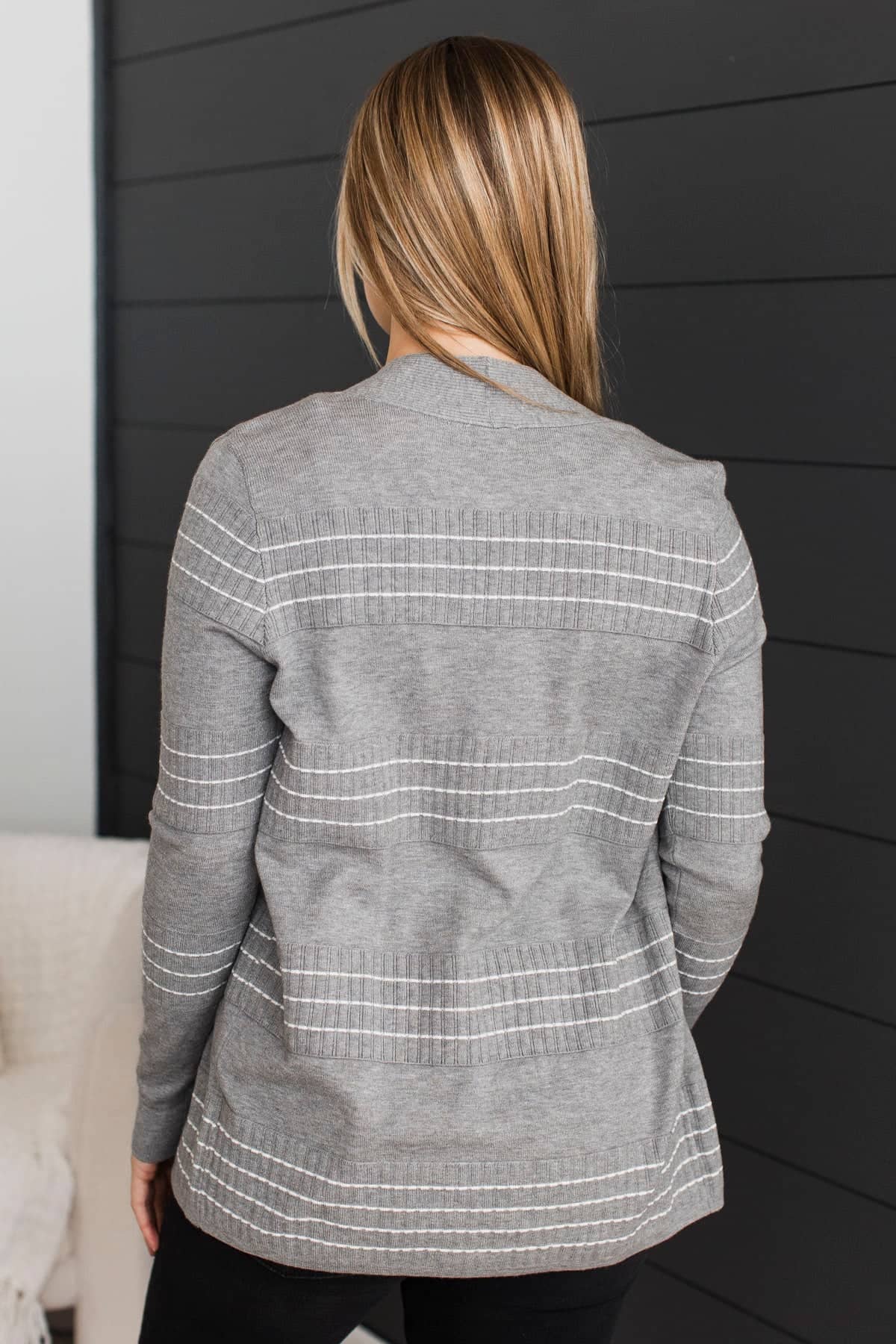 Keep In Mind Stitch Stripe Cardigan- Heather Grey