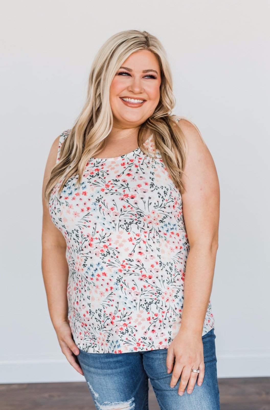 Love To Give Floral Tank Top- Ivory