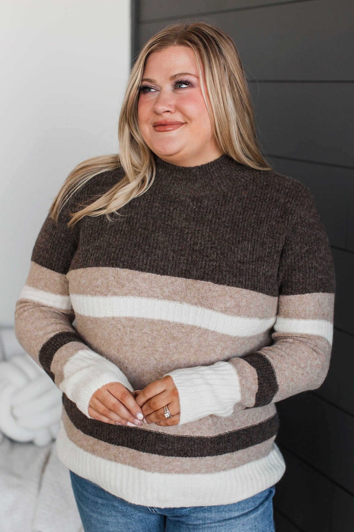 Going For Coffee Color Block Sweater- Taupe & Brown