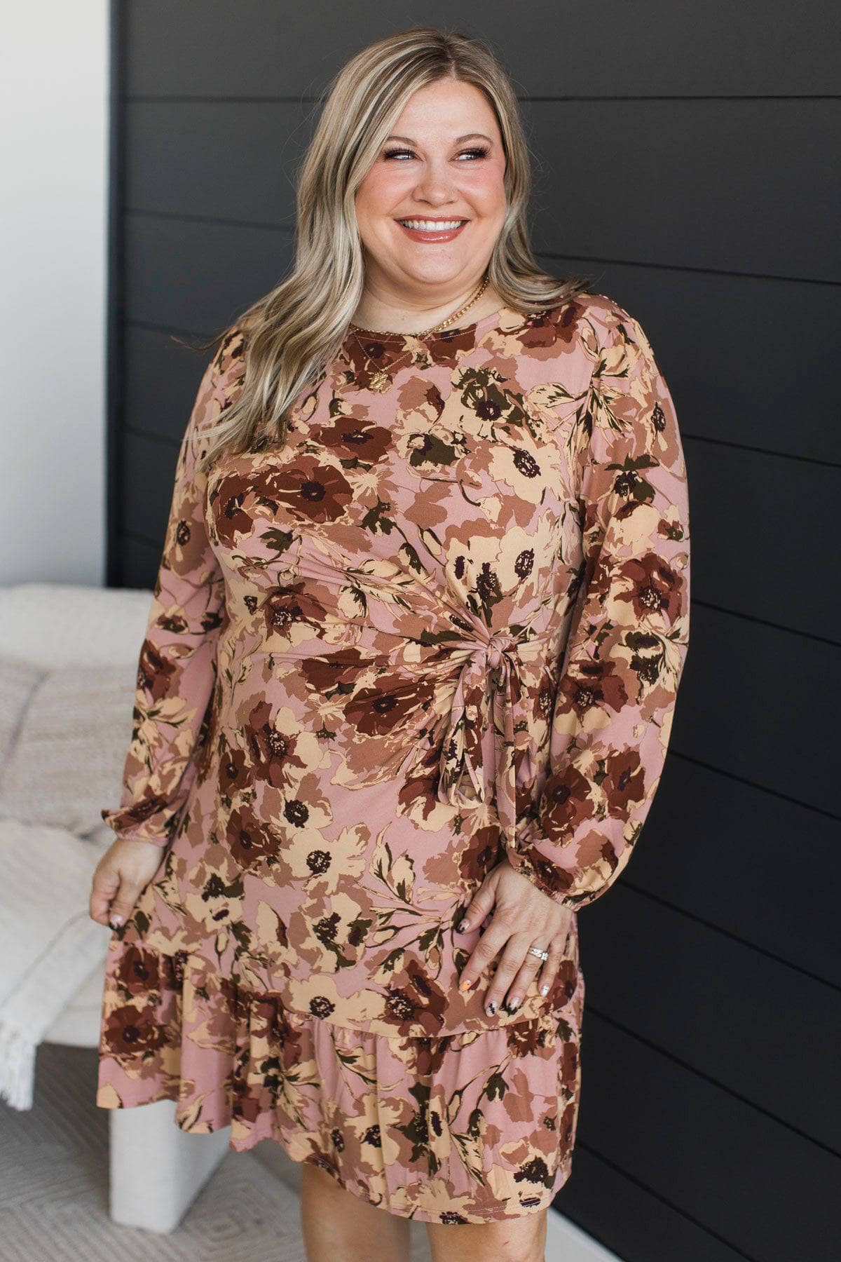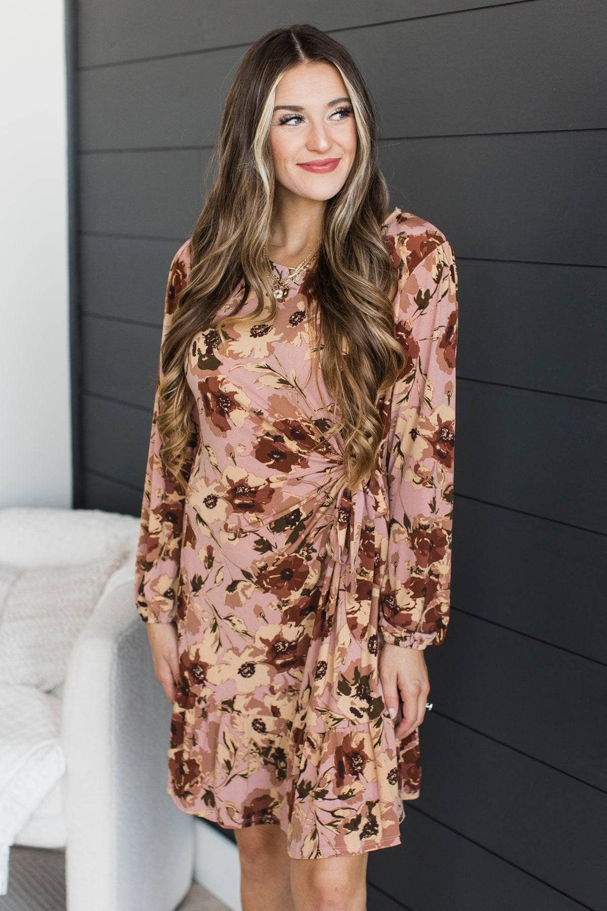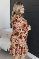 Make Life Sweet Side Tie Floral Dress- Mauve & Brown