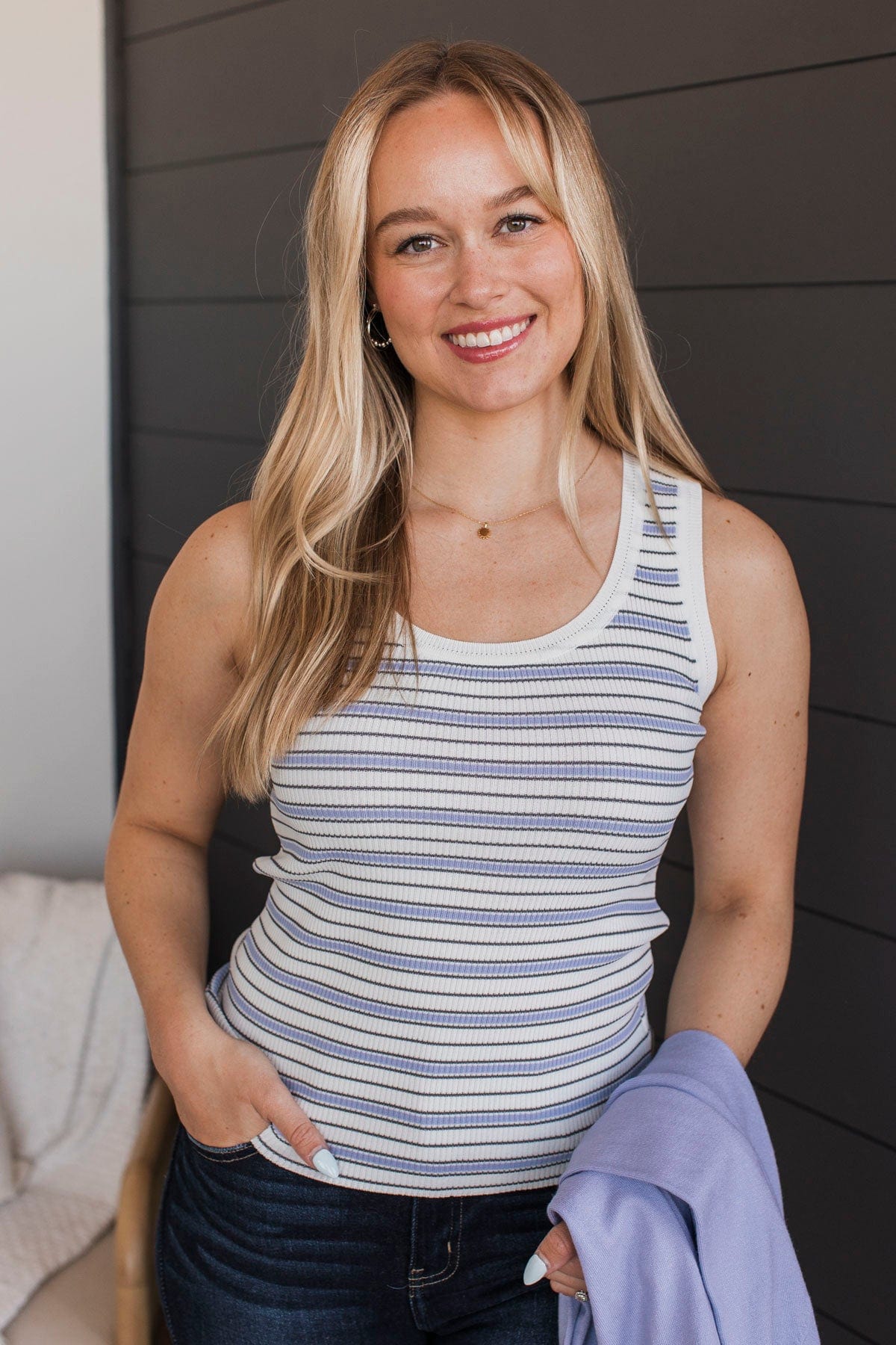 Quite Likely Striped Tank Top- Ivory & Blue