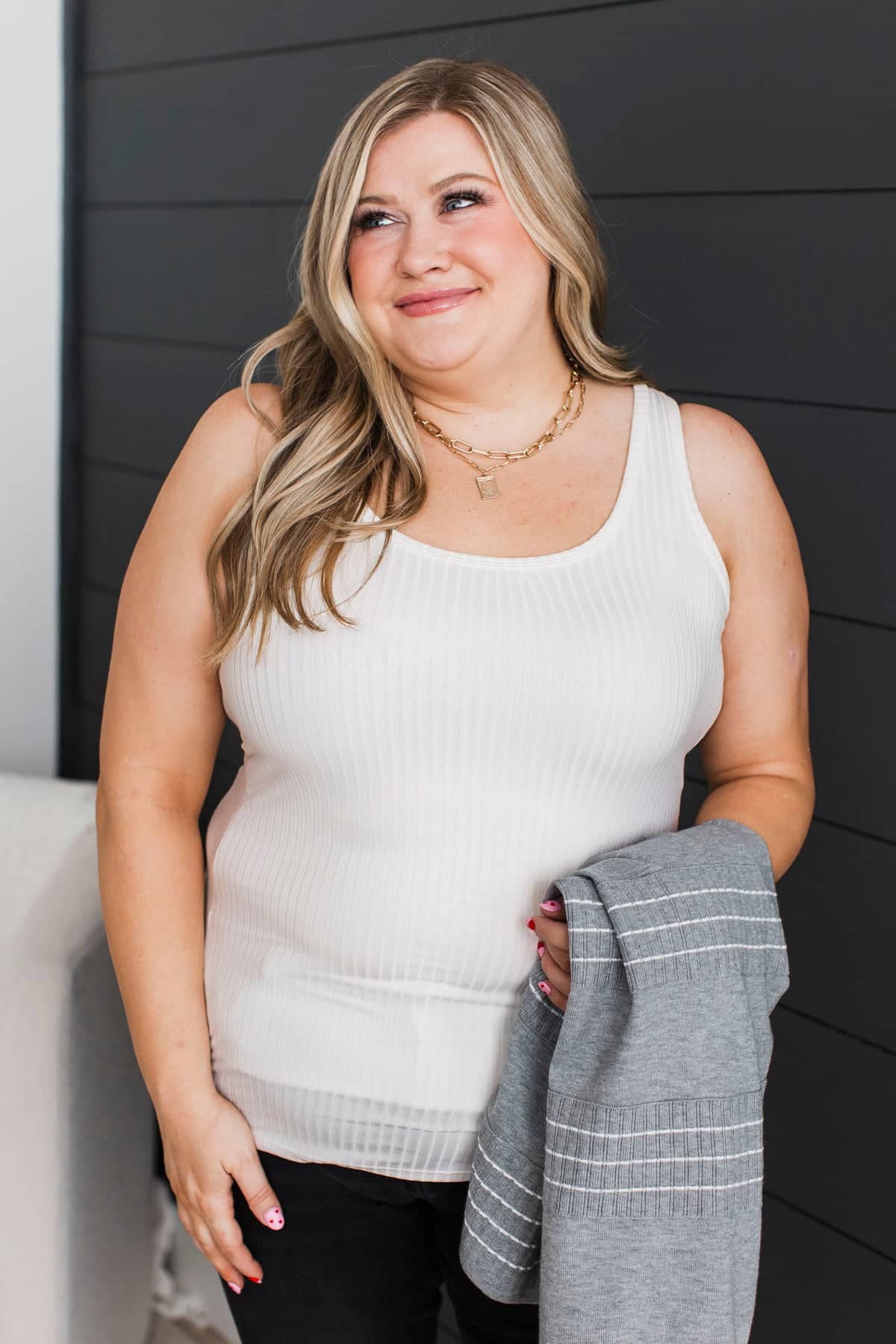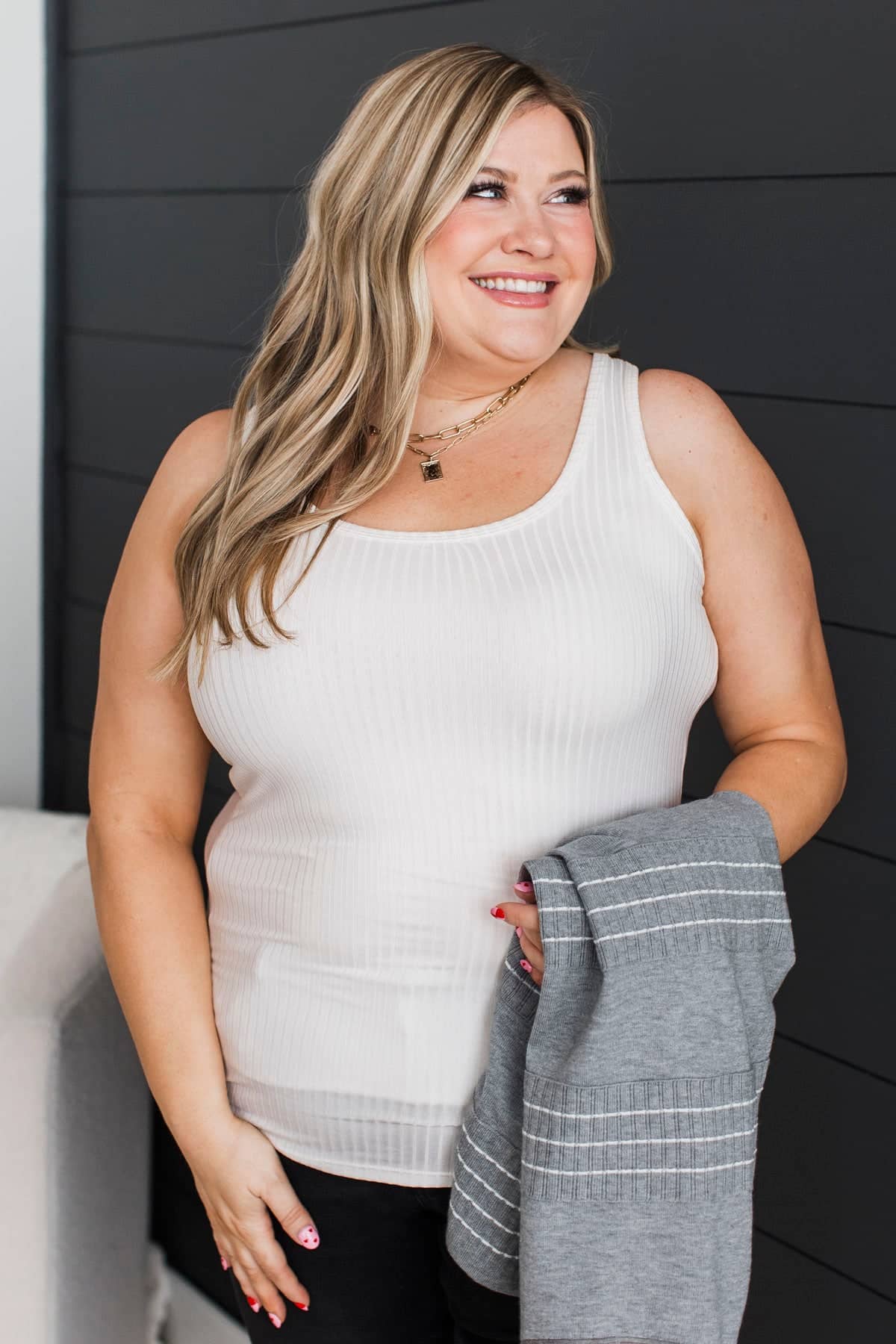 Memories Made Ribbed Tank Top- Ivory