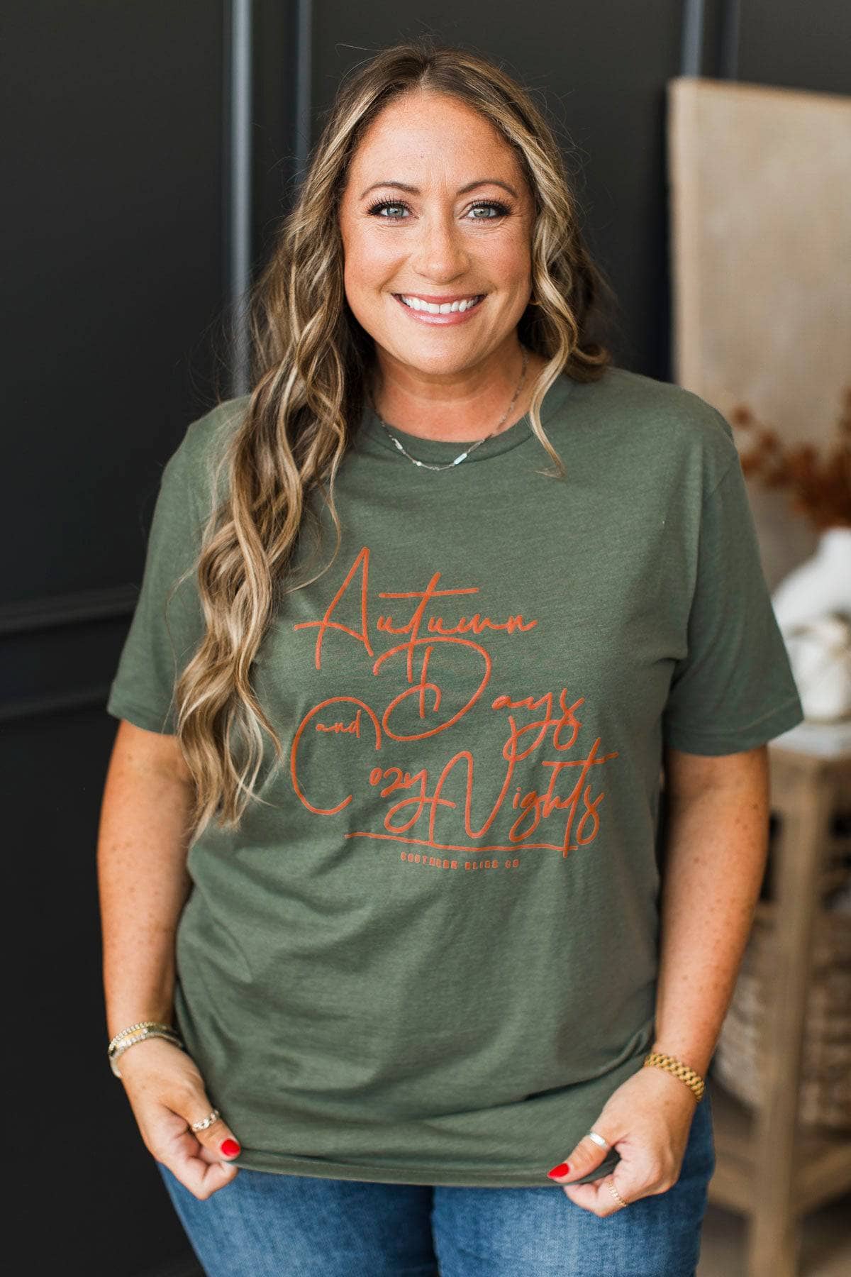 "Autumn Days and Cozy Nights" Graphic Tee- Dark Sage
