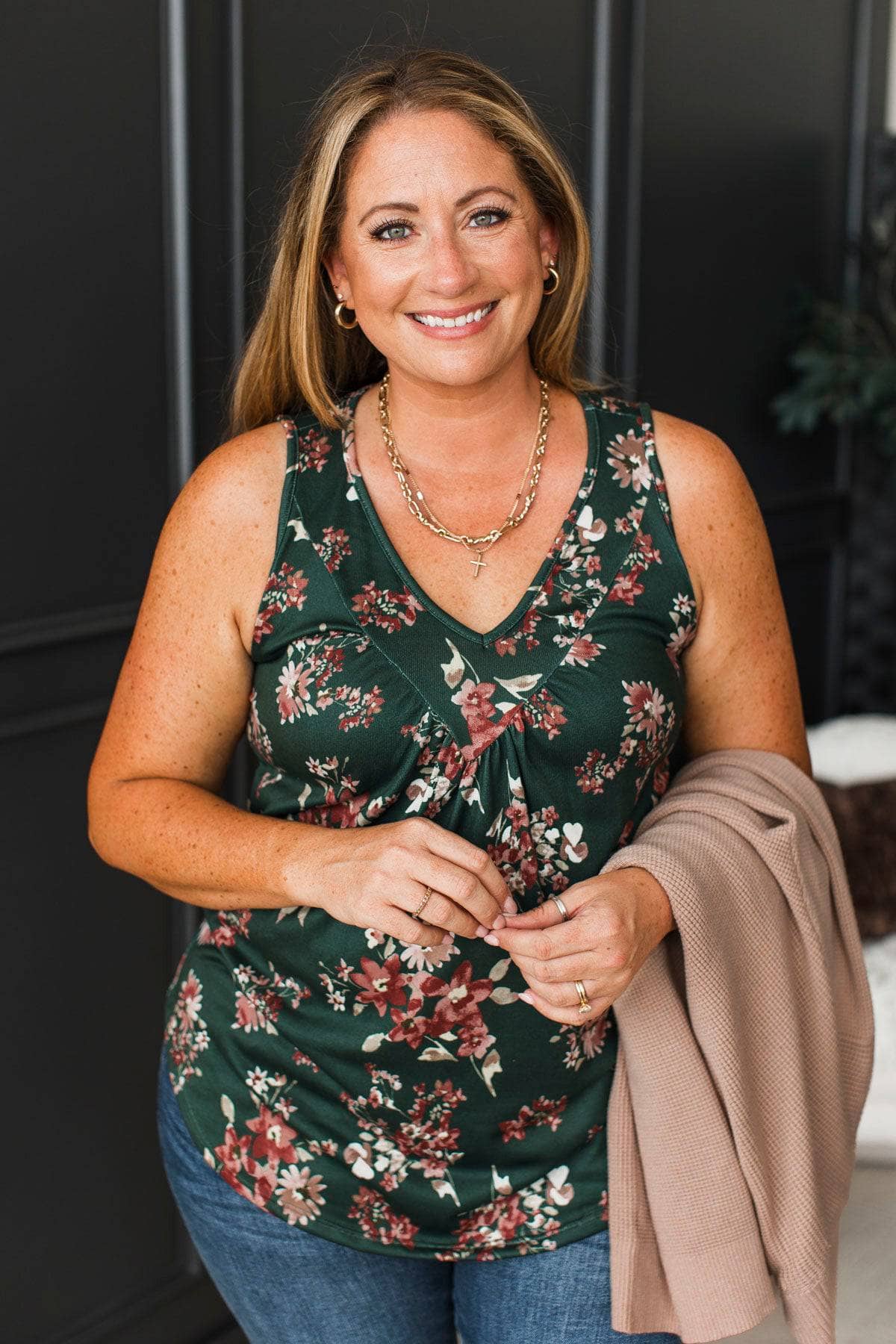 Totally Romantic Floral Tank Top- Dark Green