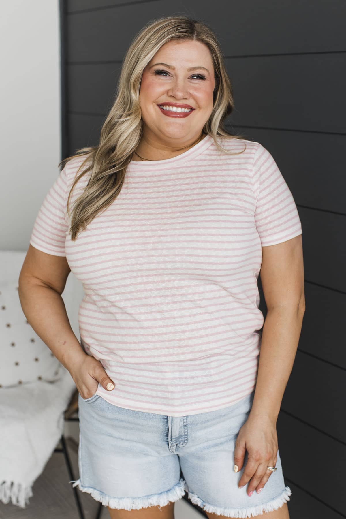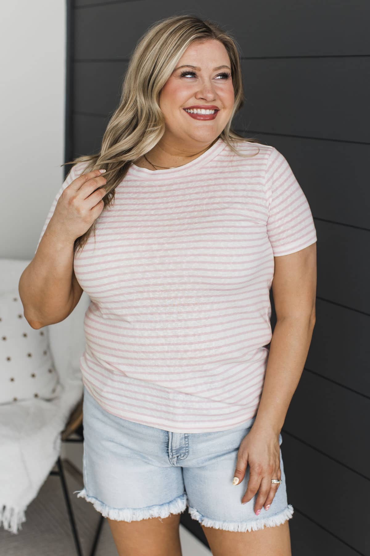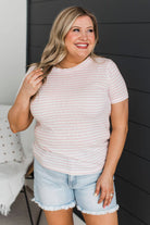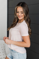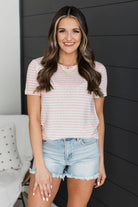 Never In Question Short Sleeve Striped Top- Ivory & Pink
