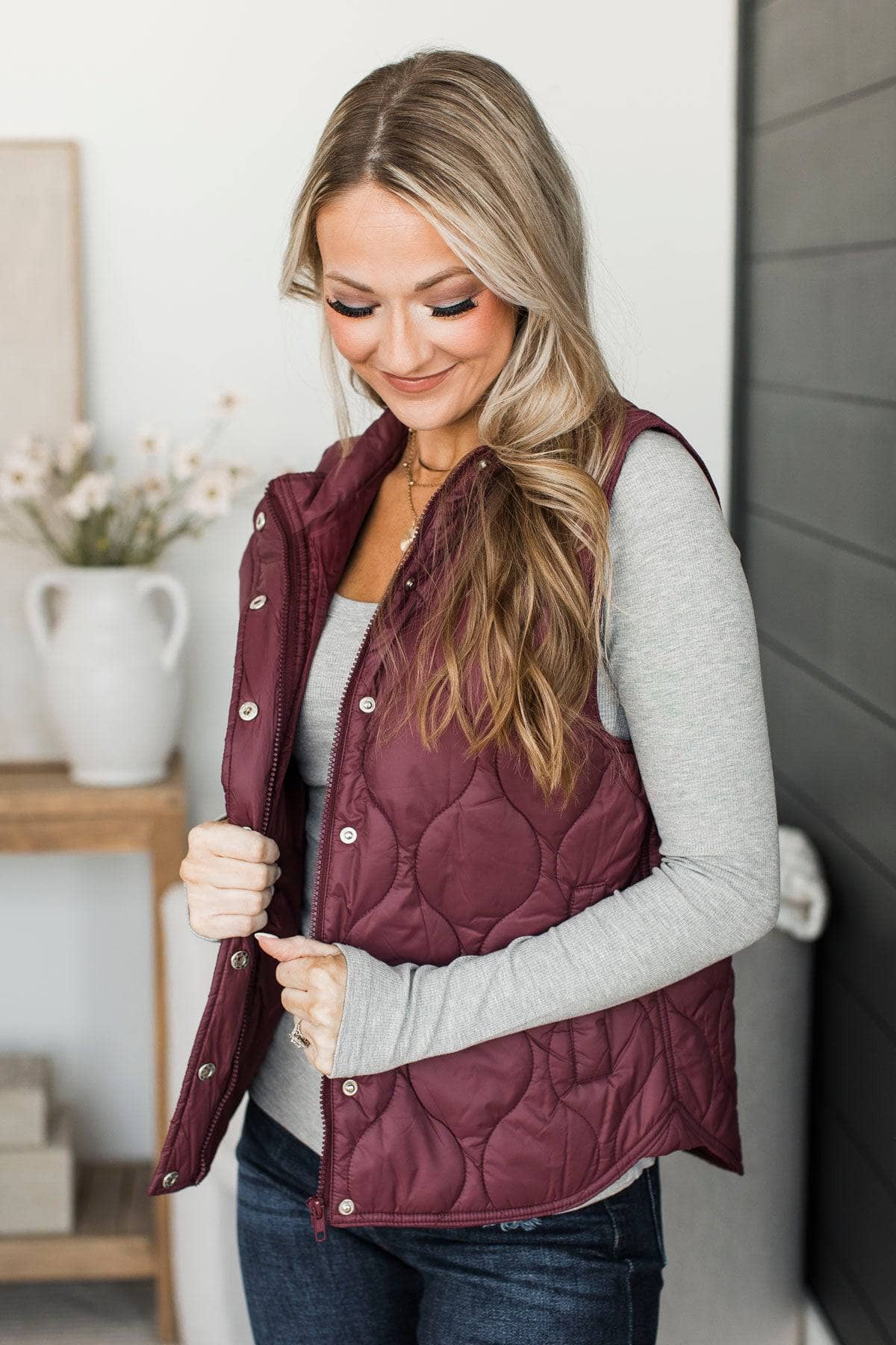Playful Moments Quilted Puffer Vest- Burgundy