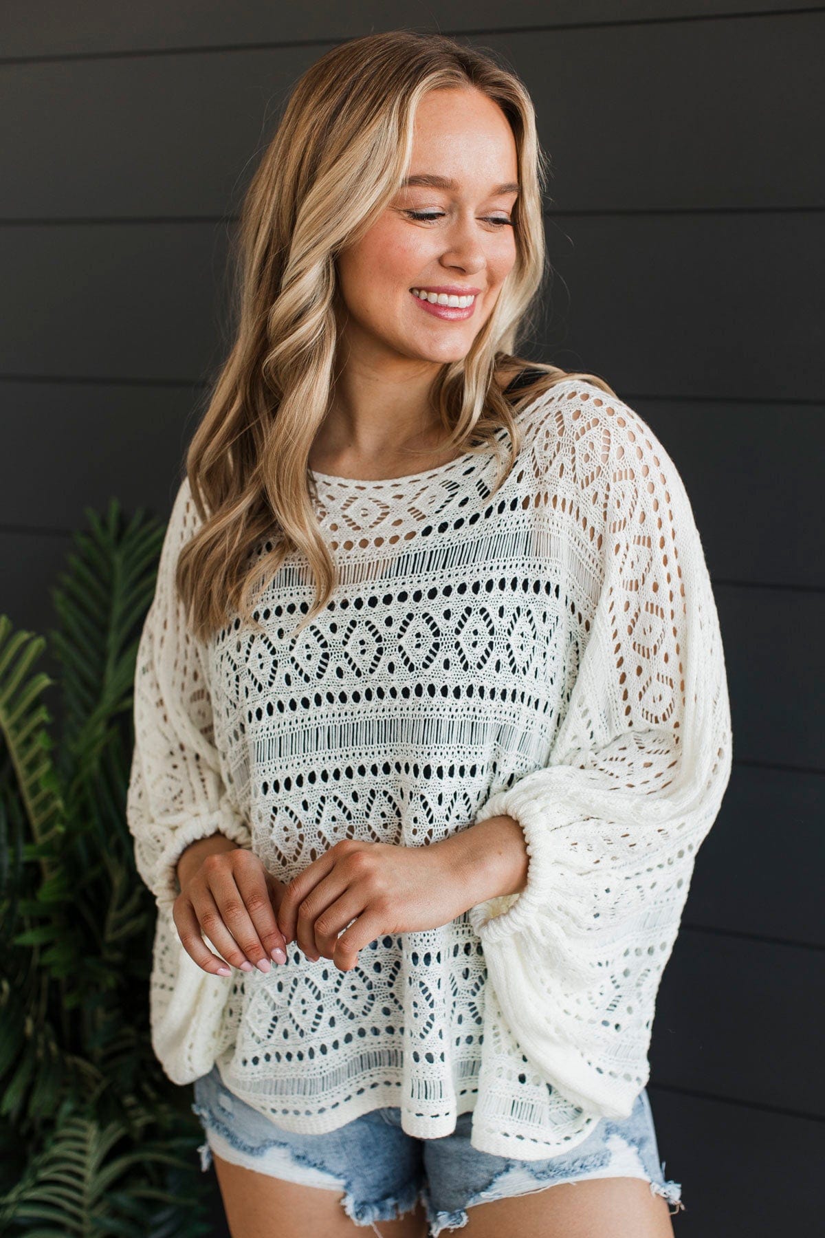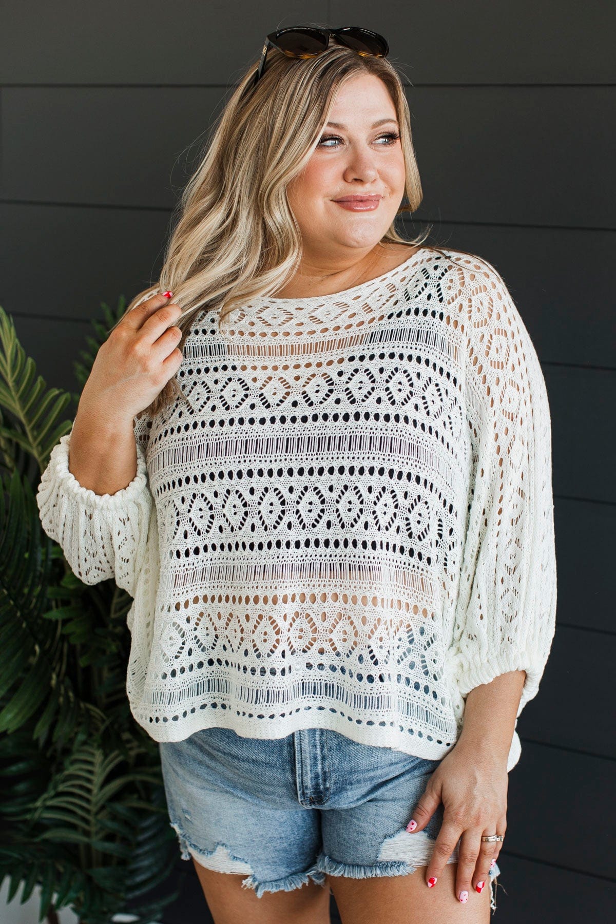 Need A Vacation Open Knit Top- Ivory
