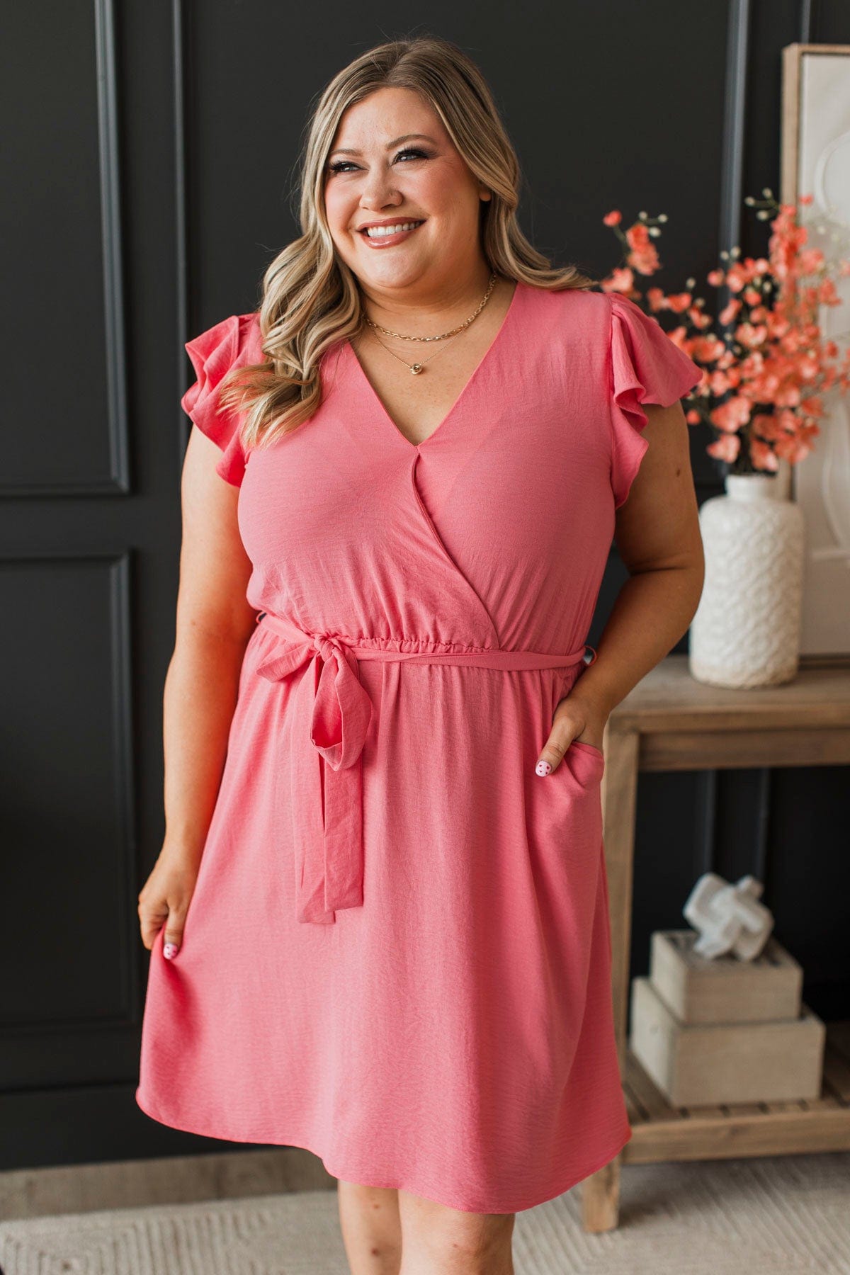 Never A Dull Moment Wrap Dress- Coral